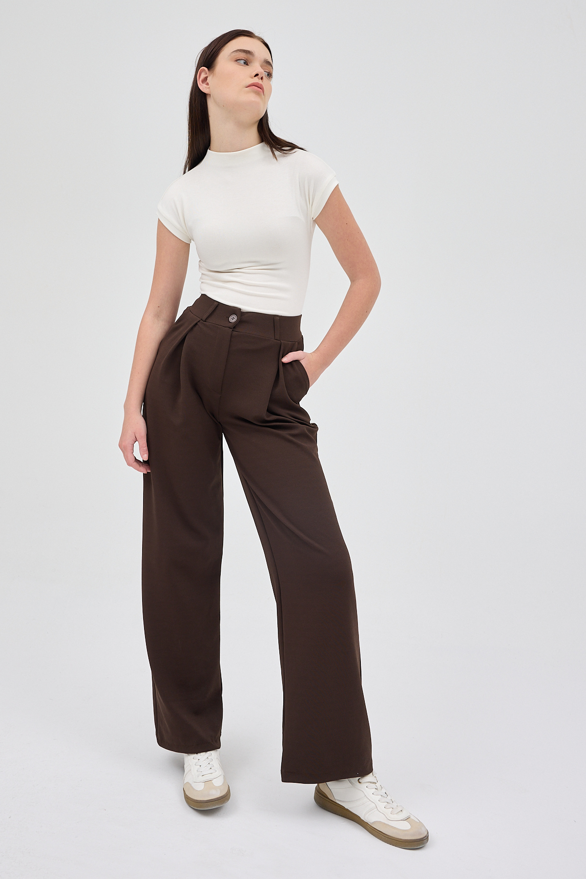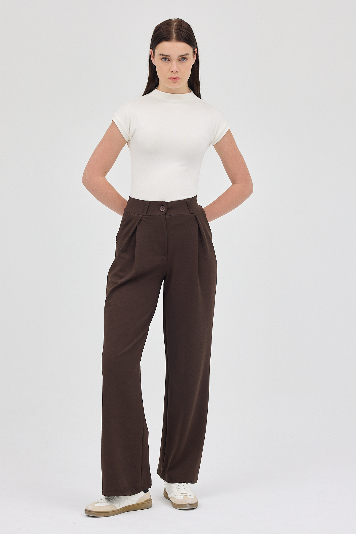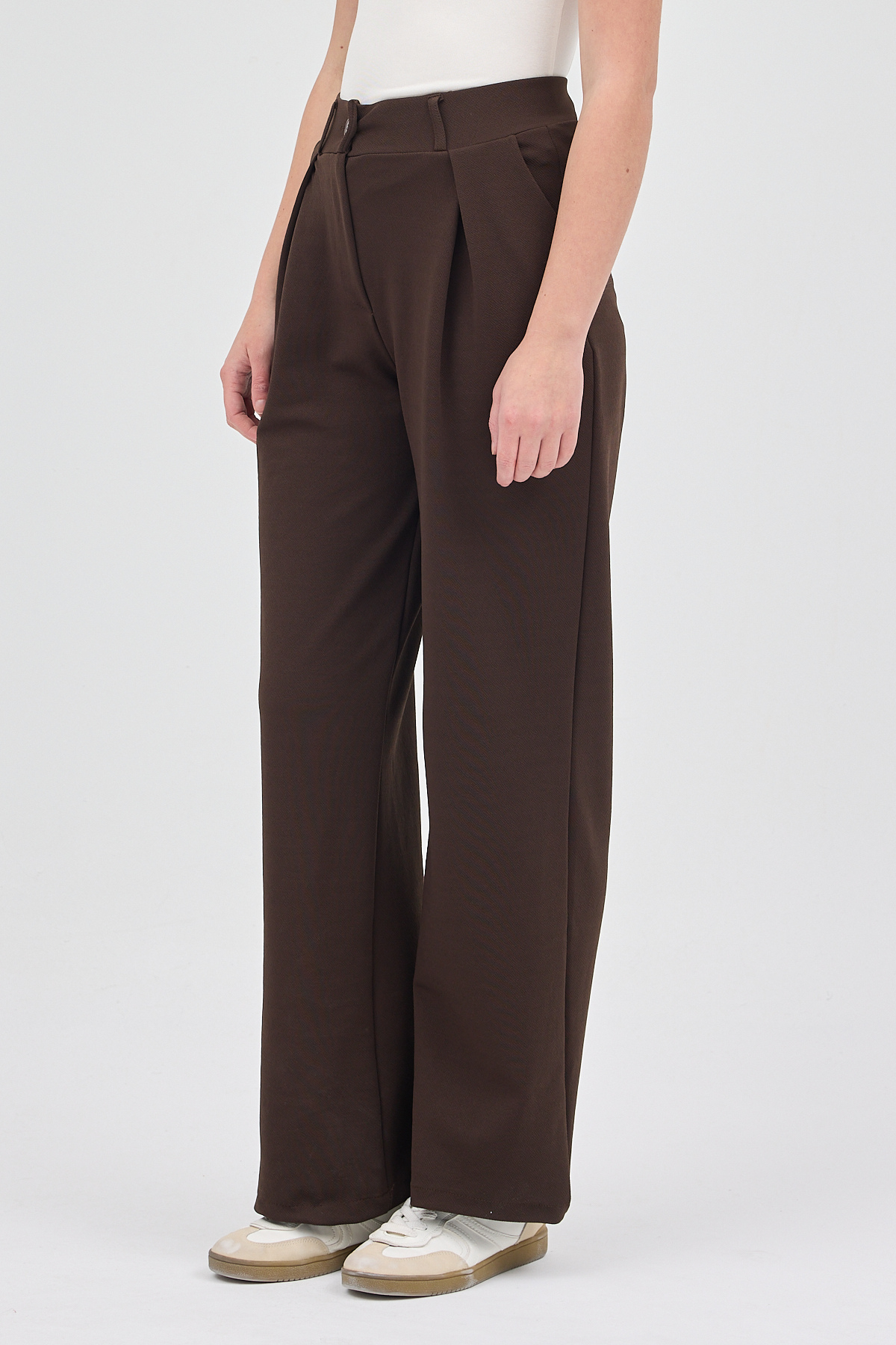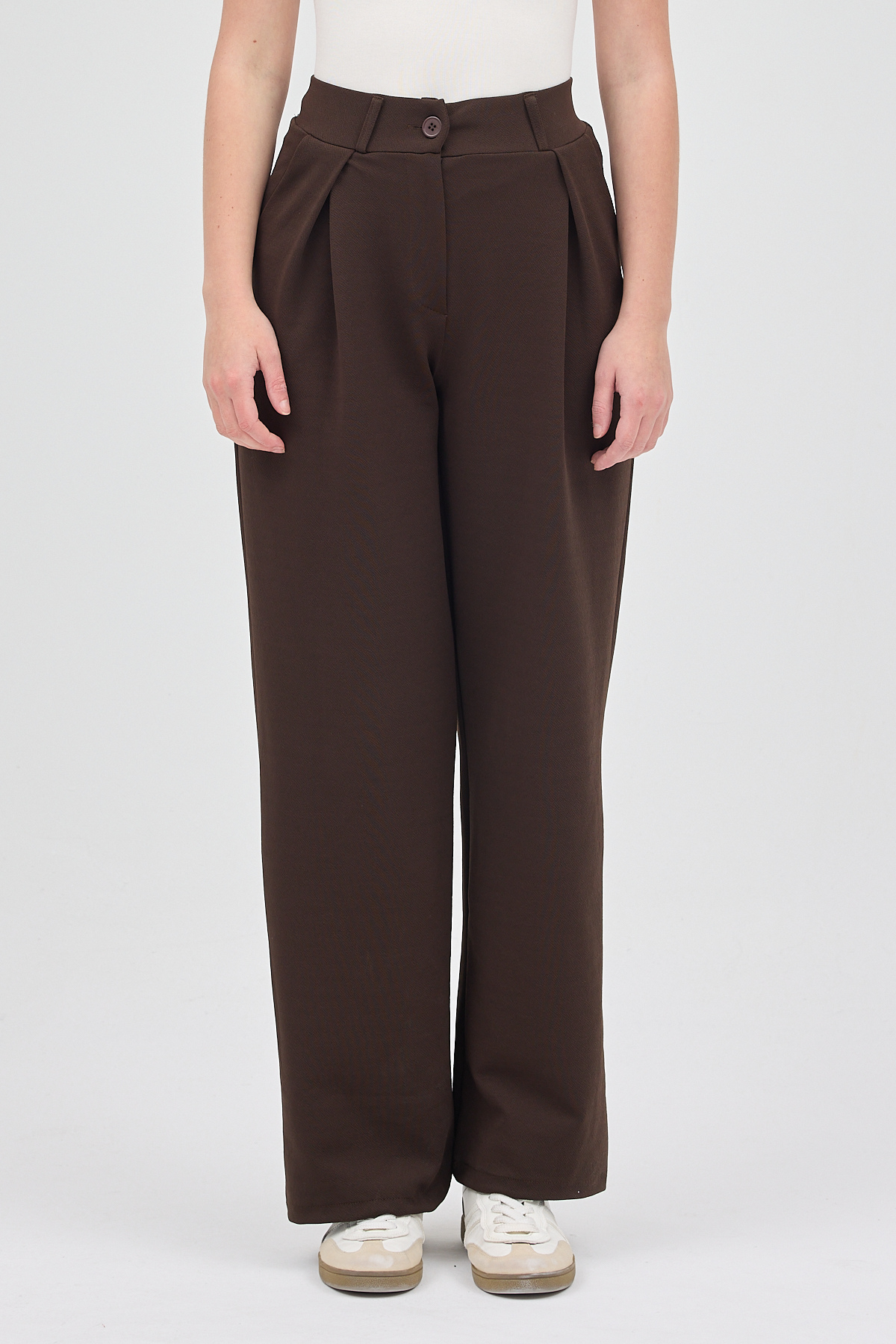 Kahve Tek Düğmeli Pensli Kadın Pantolon 5011