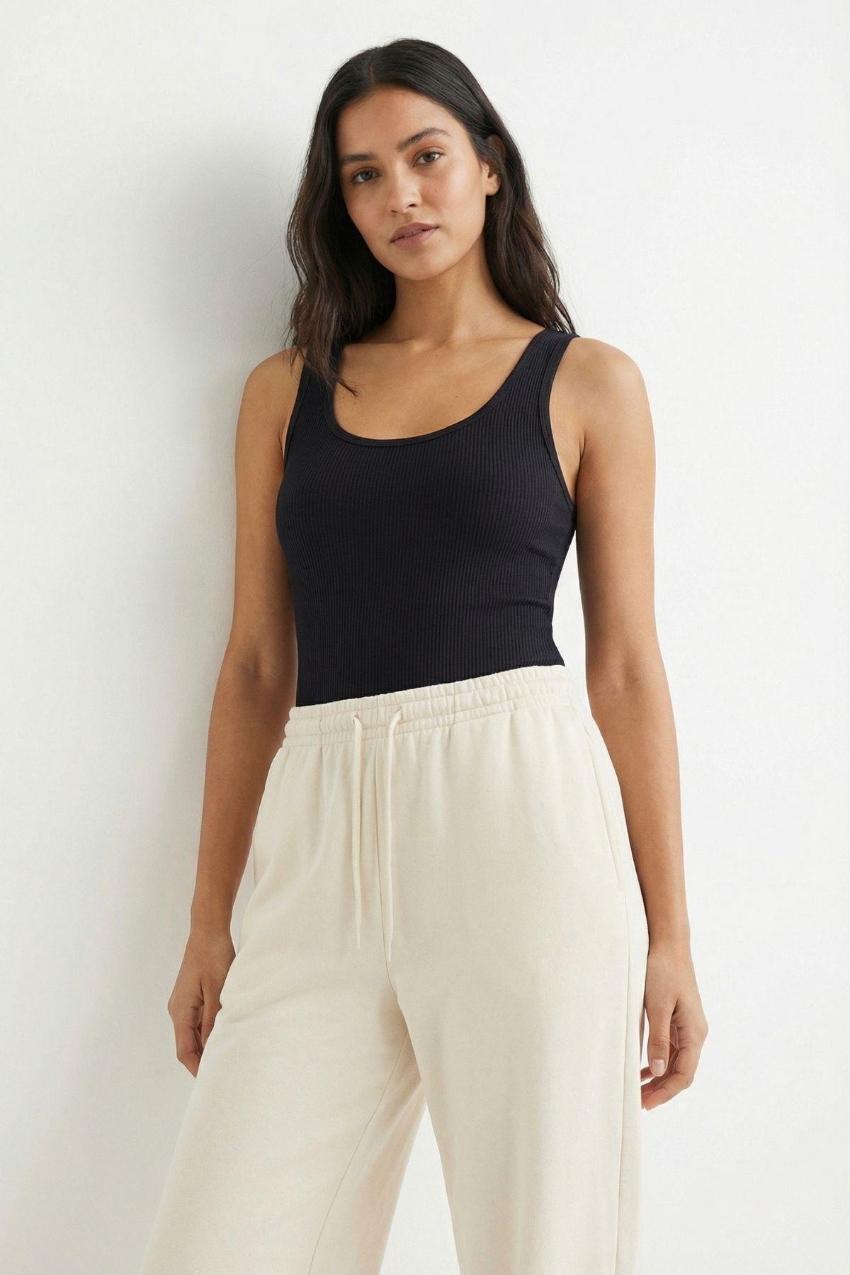 Sarı Yaka Ve Omuz Taş Detaylı Ribanalı Örme Atlet 1249