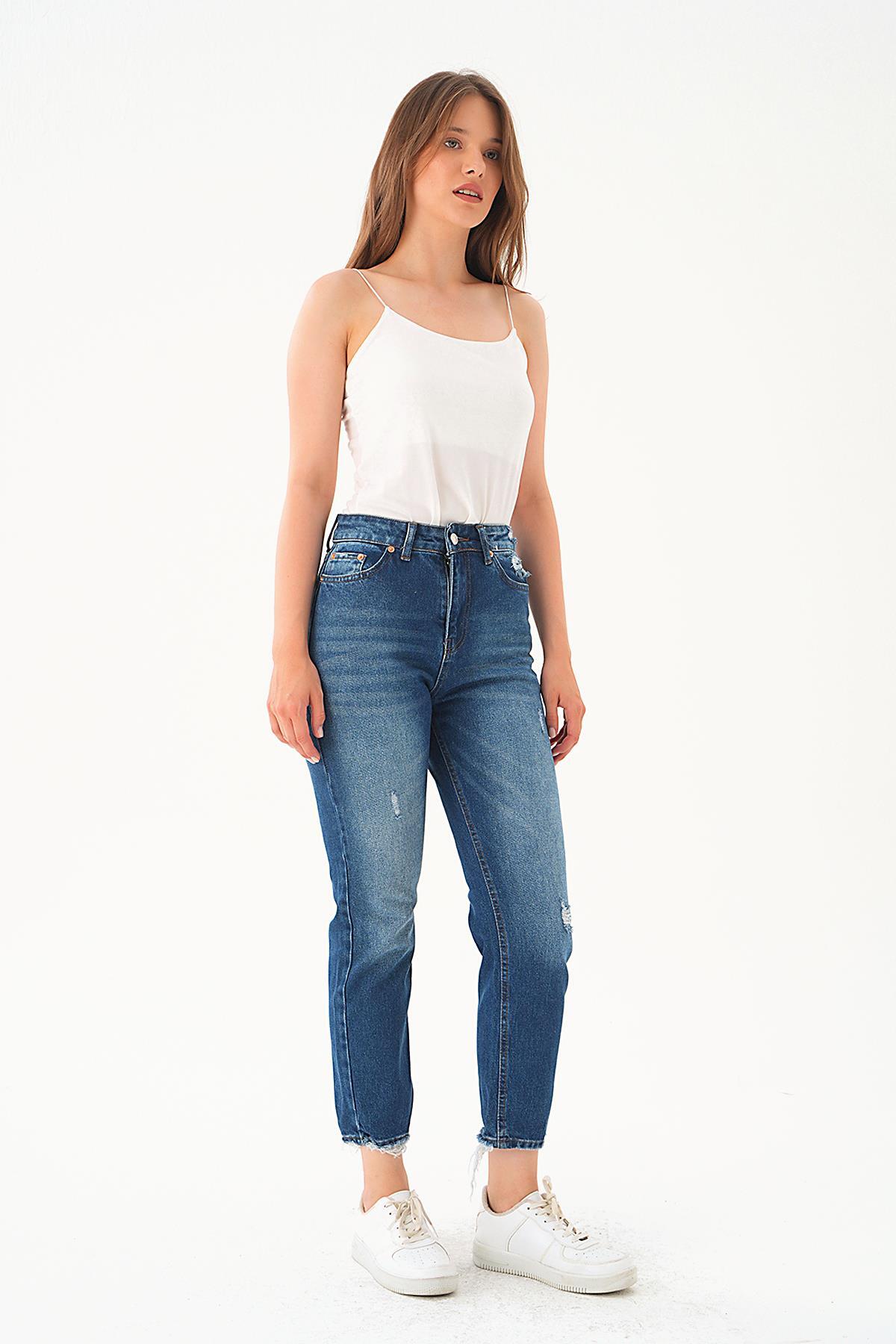Koyu Mavi Paça Yırtık Detay Pantolon 5131