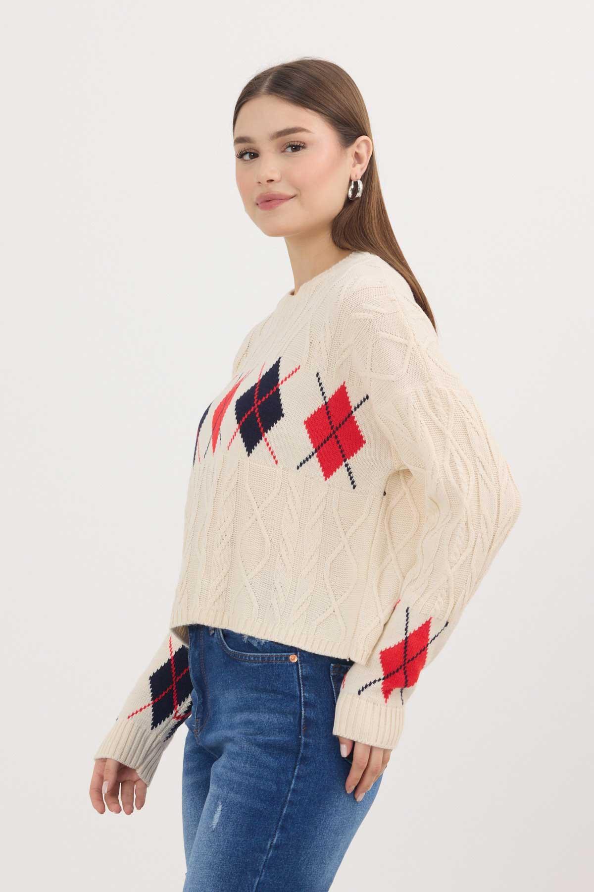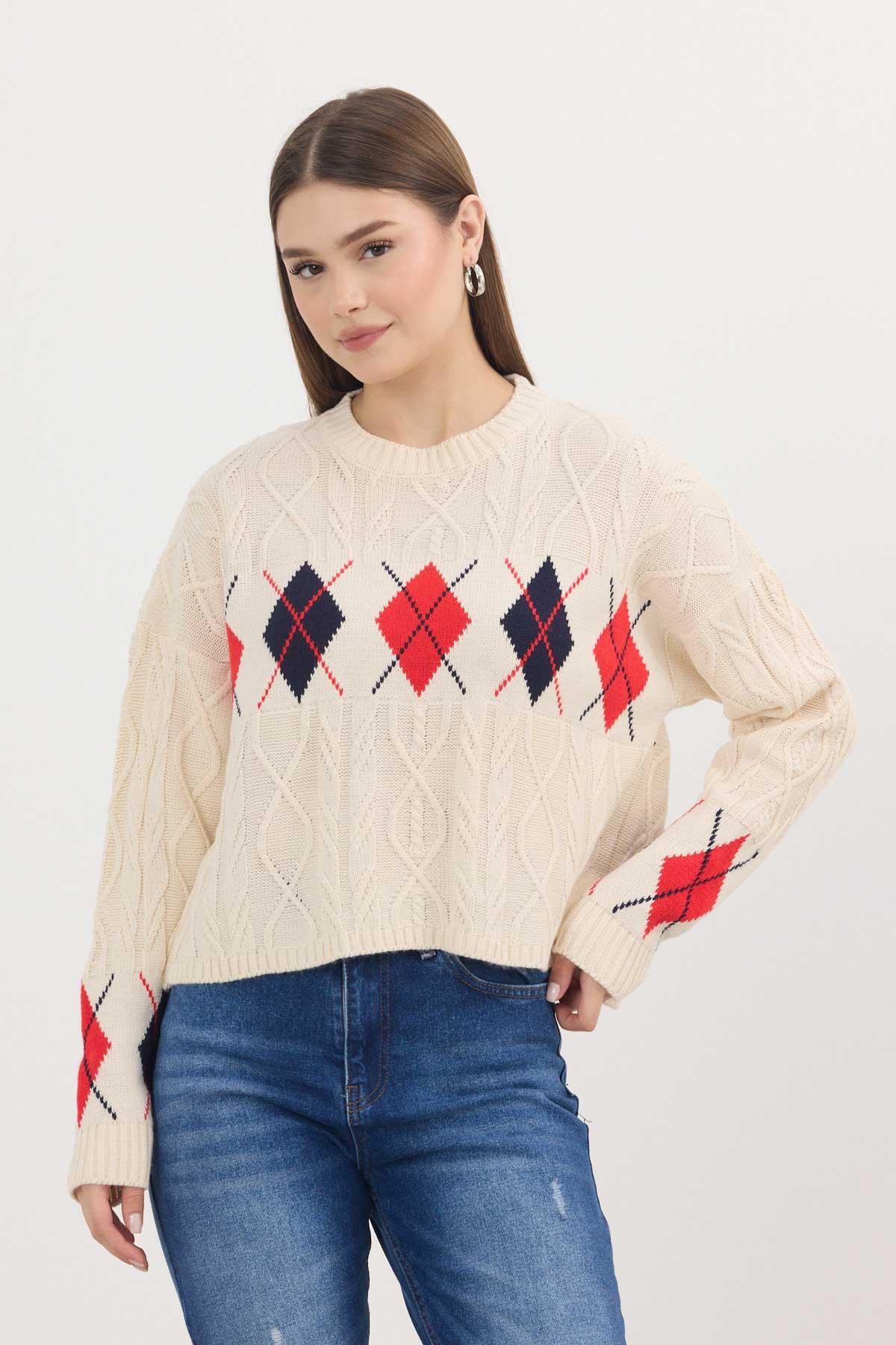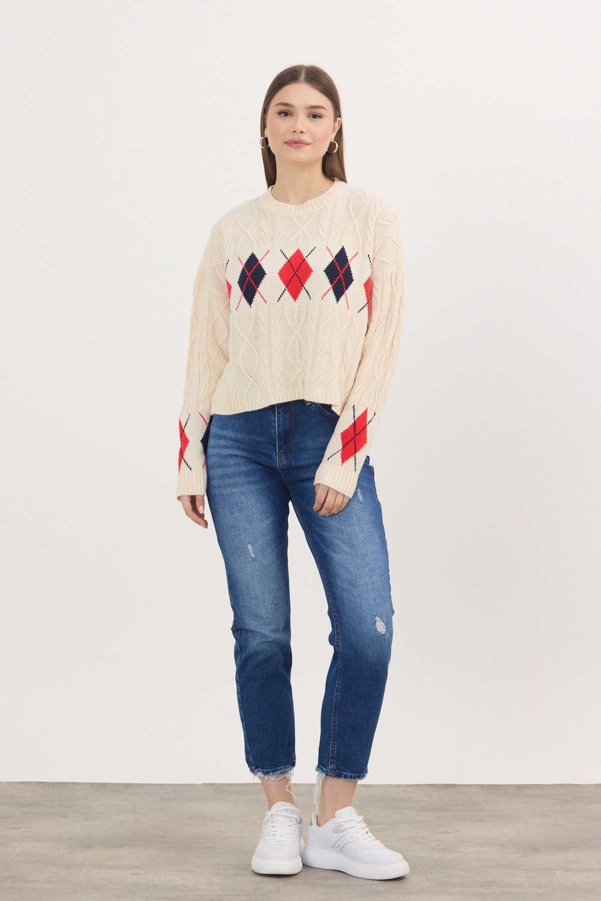 Gri - Ekru Yıldız Baskılı Oversize Kazak 2474 - RAYS Gri - Ekru Yıldız Baskılı Oversize Kazak 2474 - RAYS (1)
