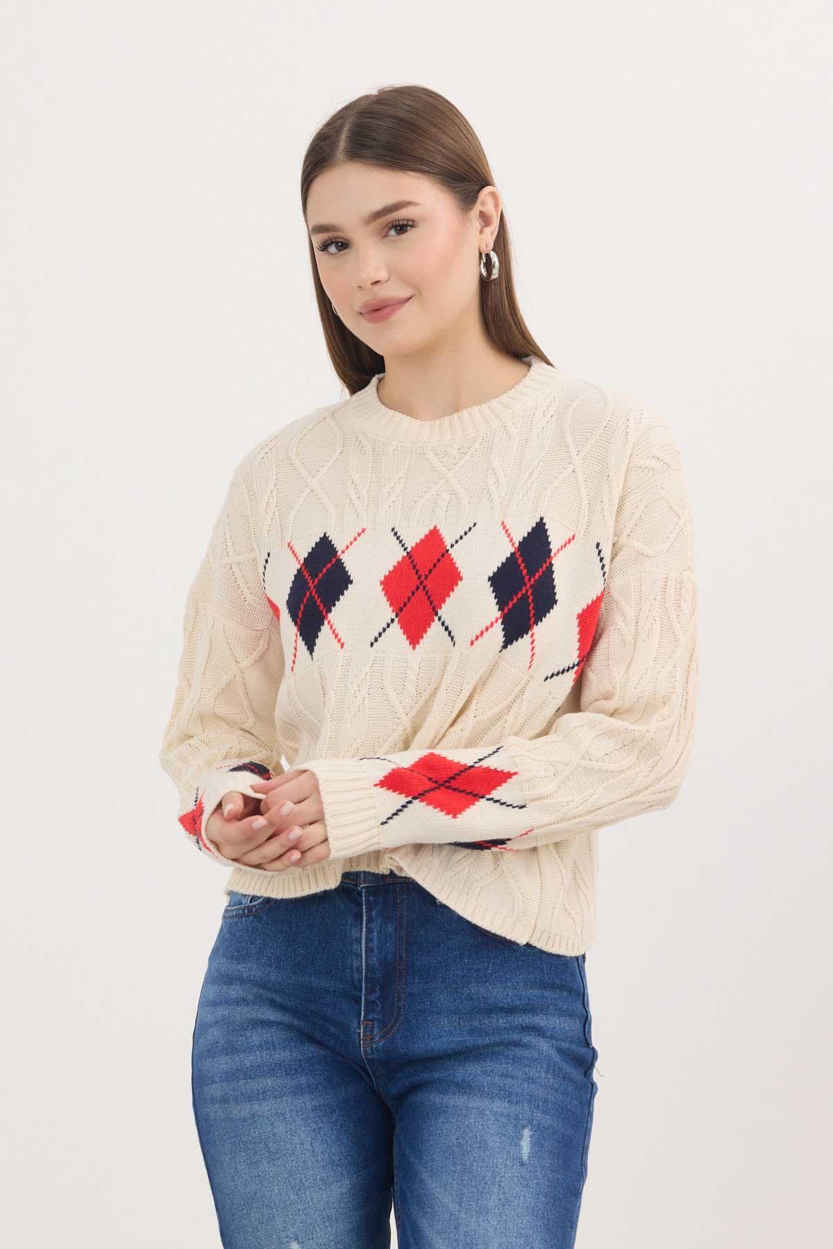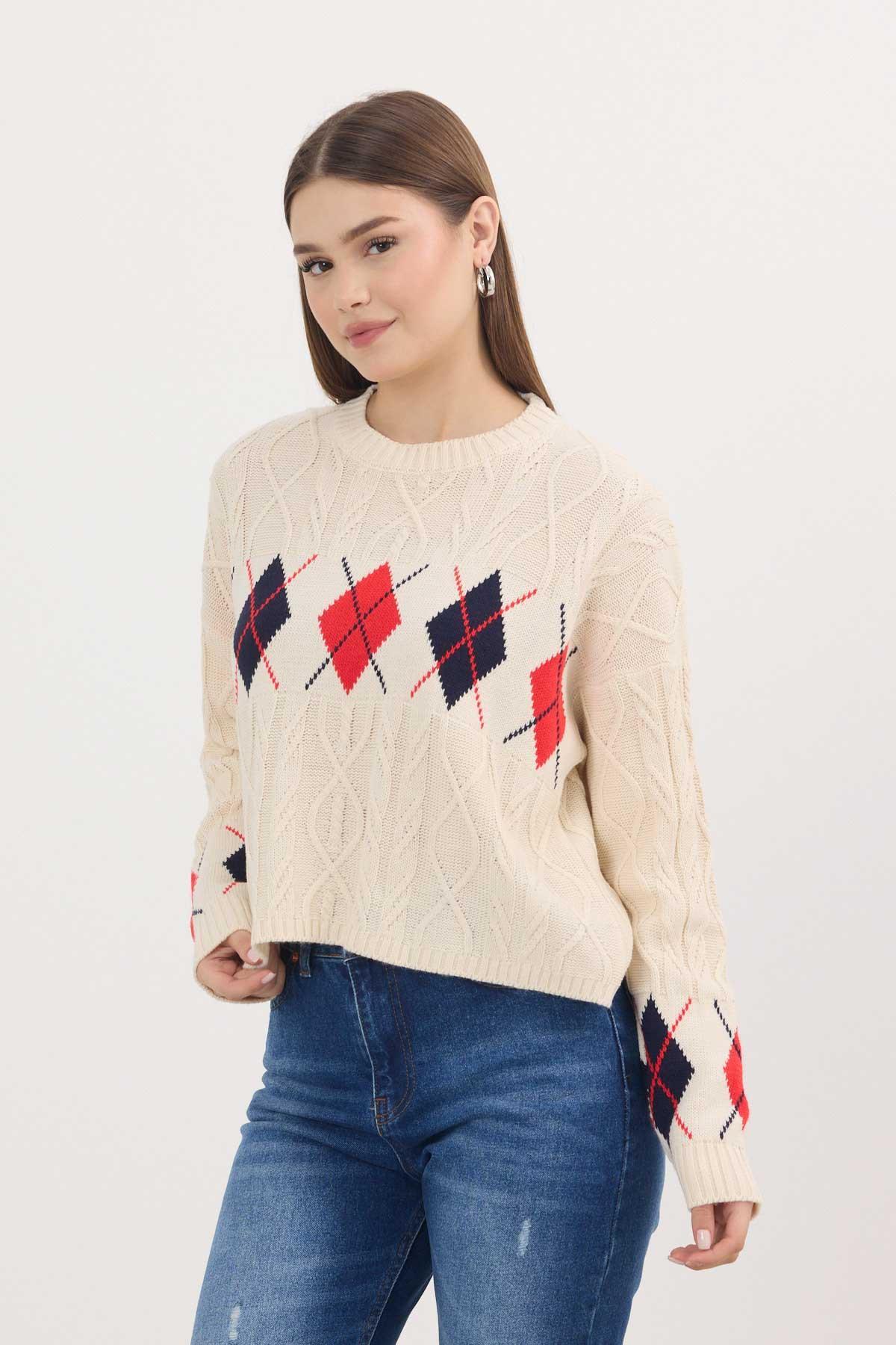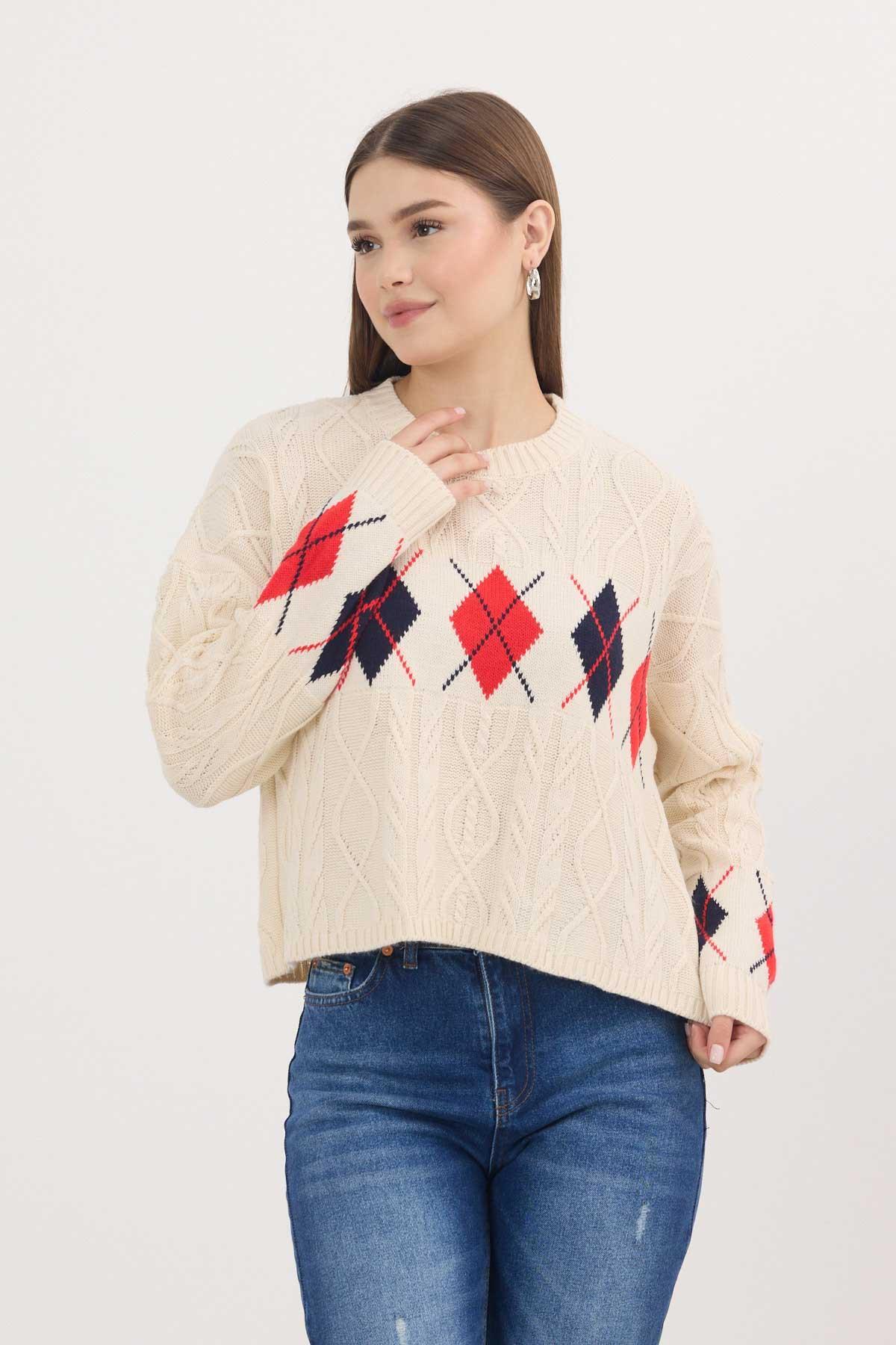 Gri - Ekru Yıldız Baskılı Oversize Kazak 2474 - RAYS Gri - Ekru Yıldız Baskılı Oversize Kazak 2474 - RAYS (1)