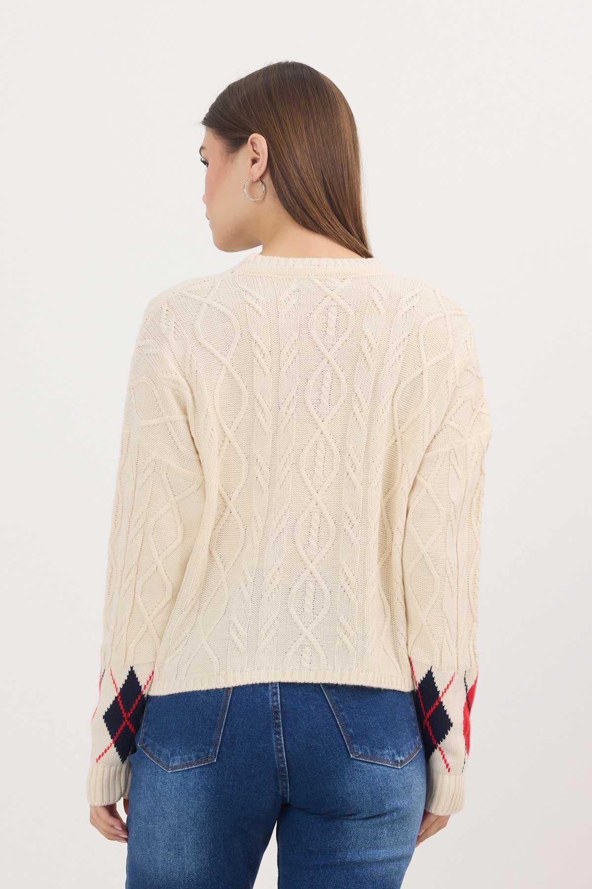 Bej Baklava Şerit Desen Kazak 1372