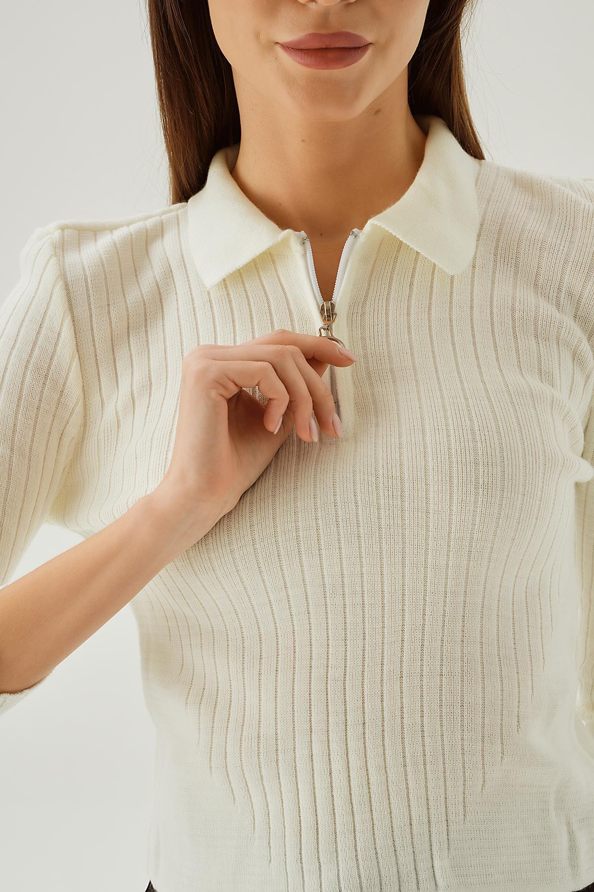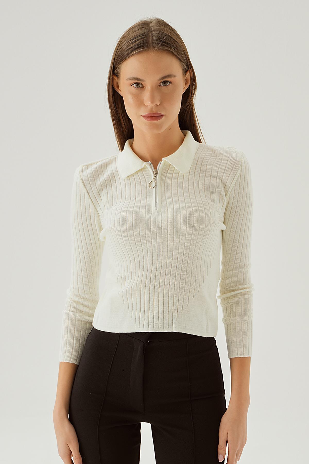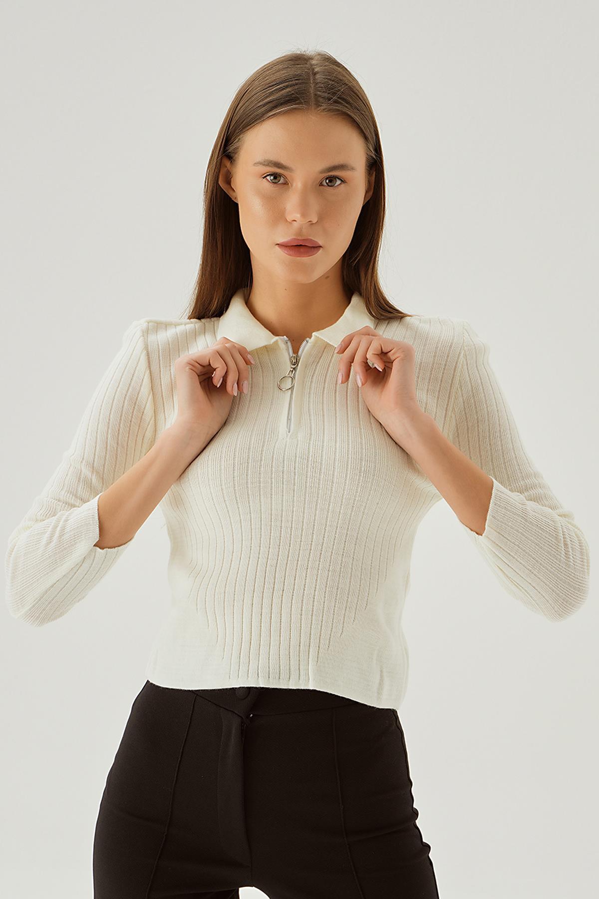 Kemik Polo Yaka Fermuarlı Kazak 5272