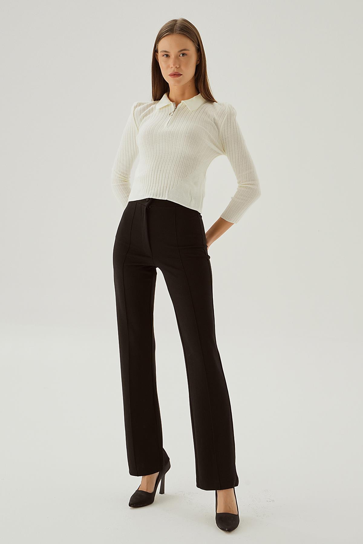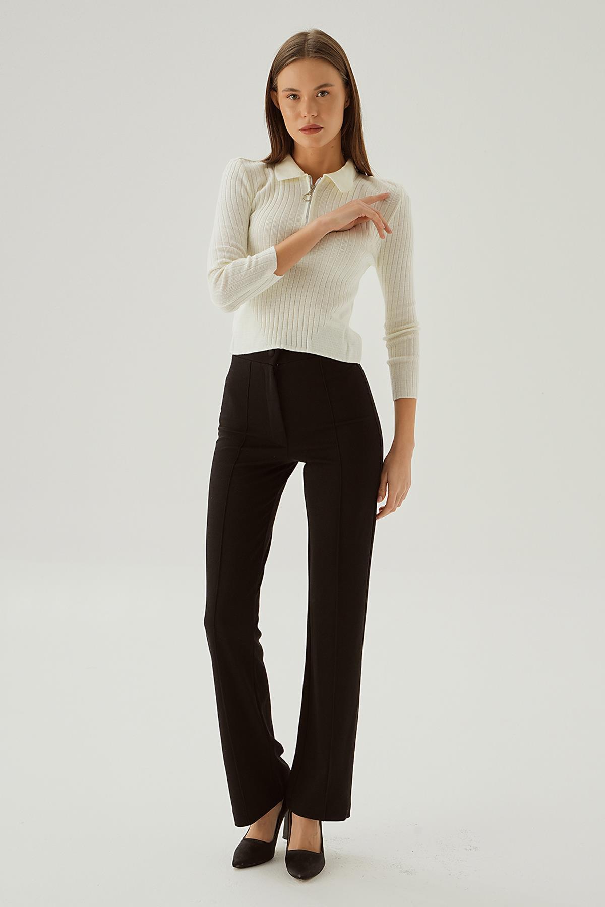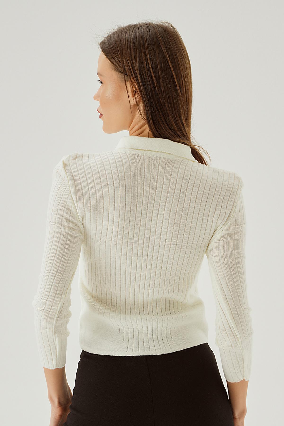 Kemik Polo Yaka Fermuarlı Kazak 5272
