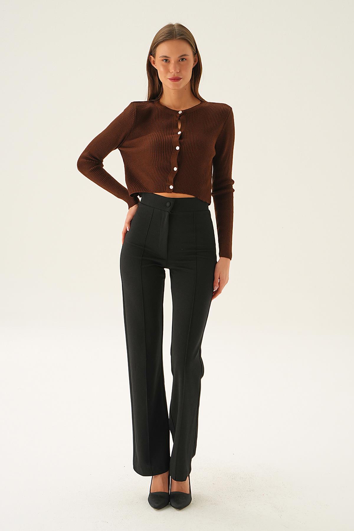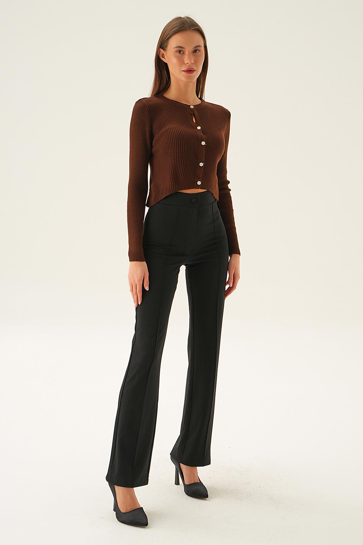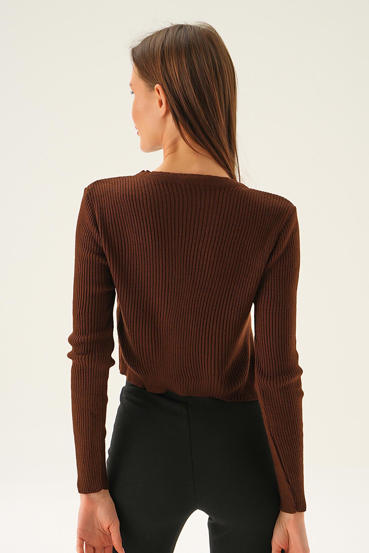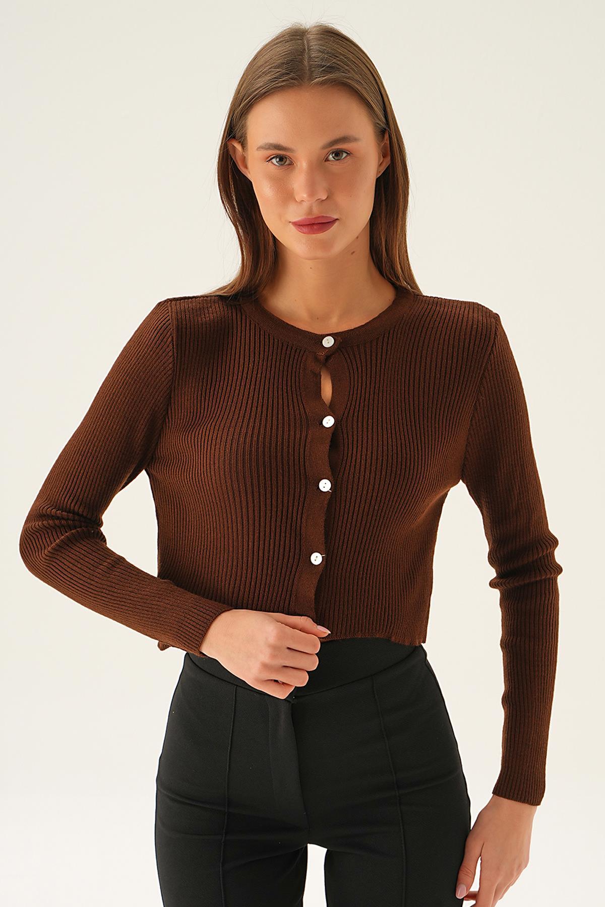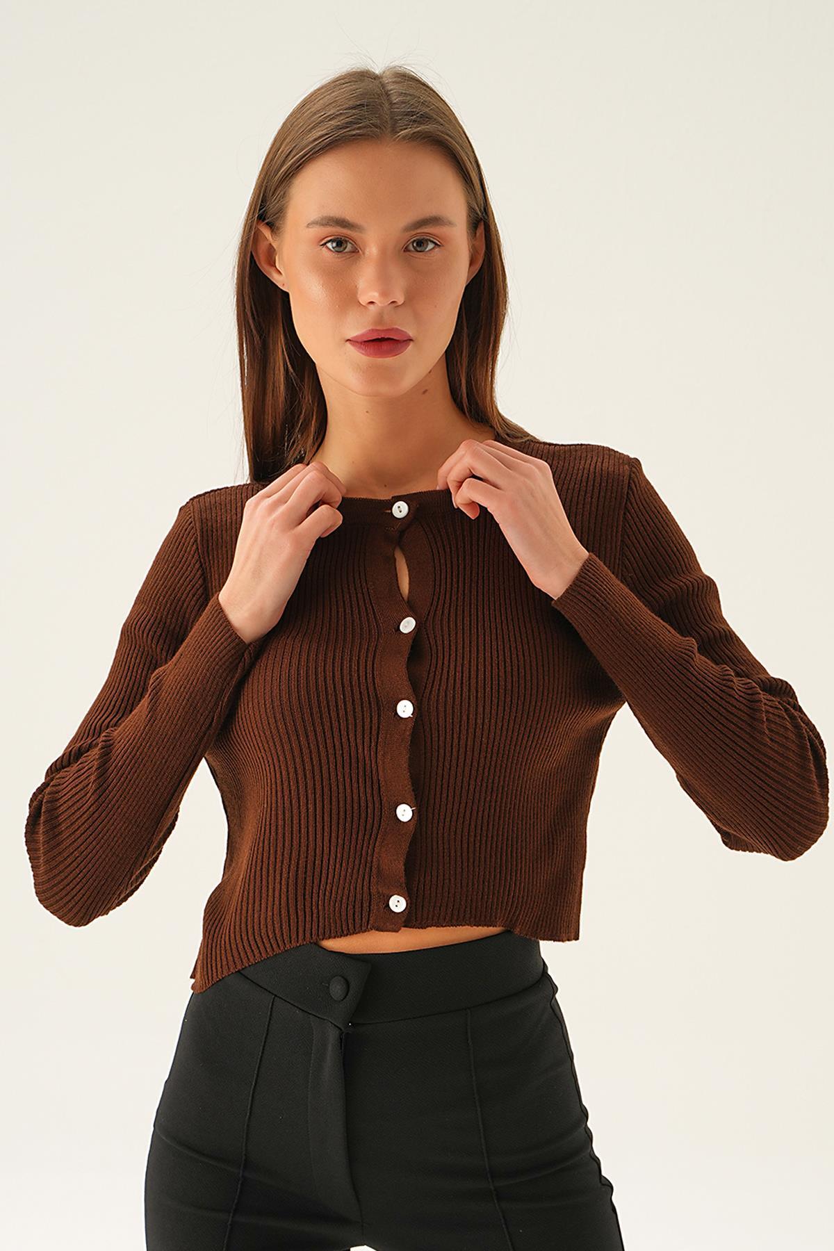 Acı Kahve Önü Düğmeli Bluz 5278