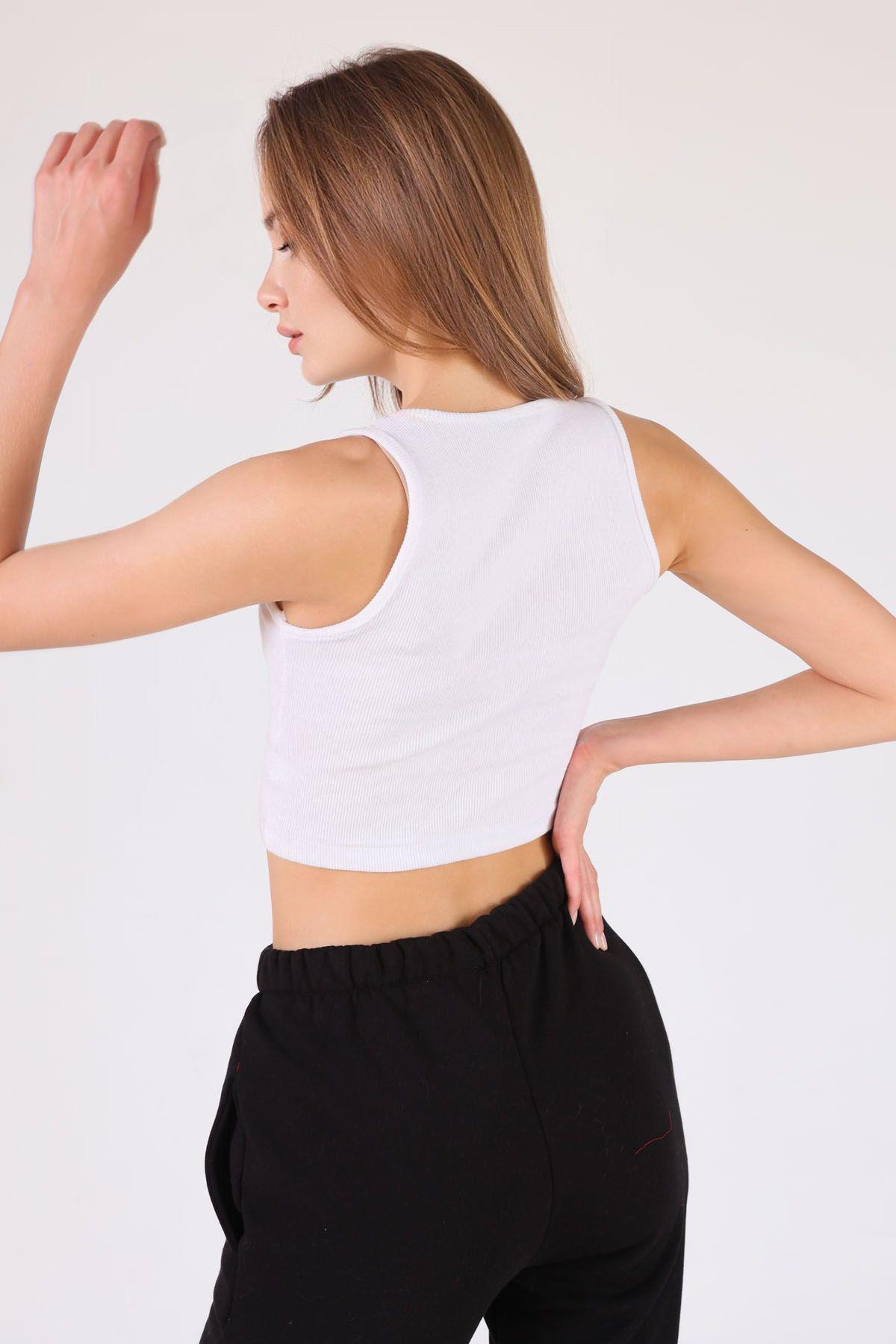 Beyaz Off Nakış Detay Atlet 5283