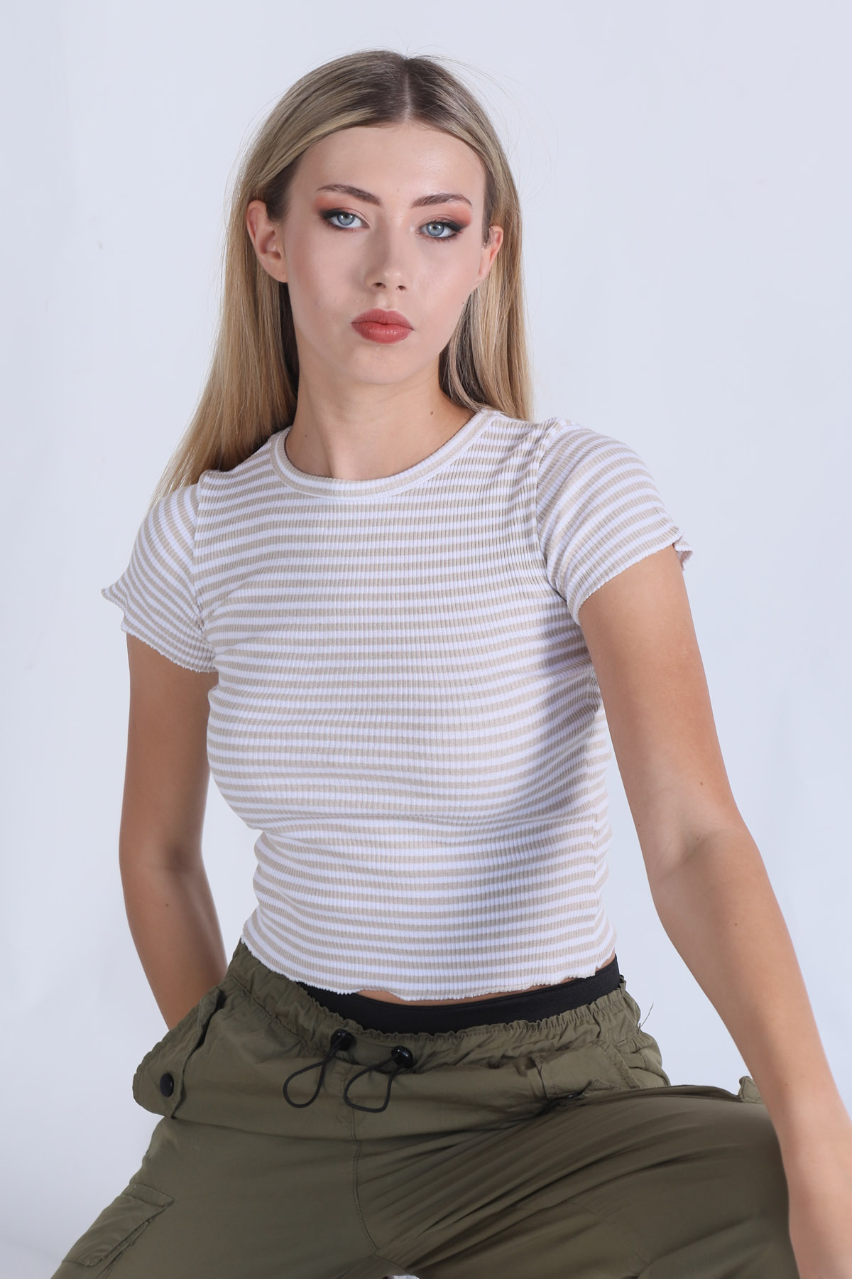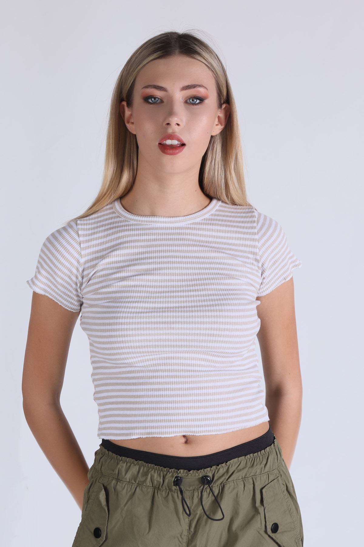 Bisküvi Çizgili Crop Bluz 5285