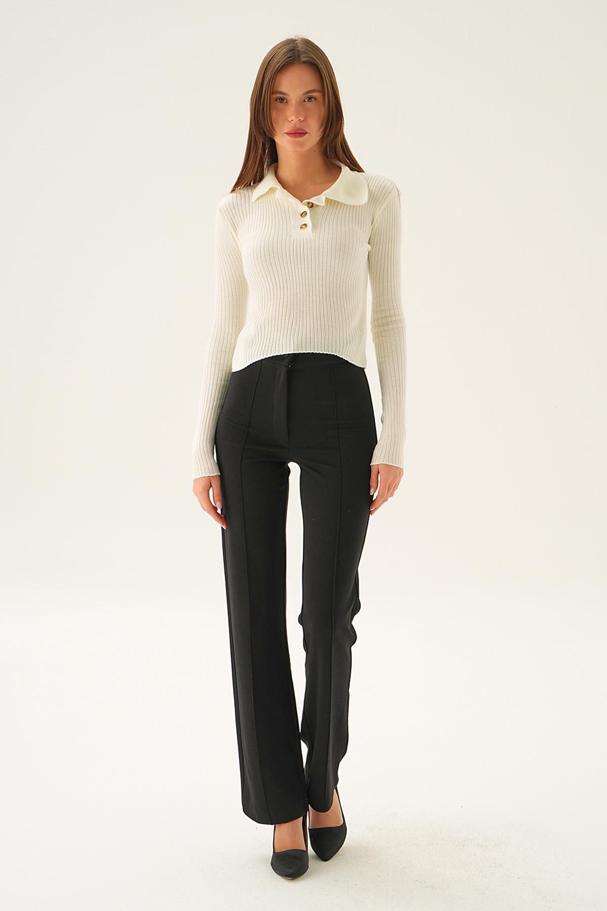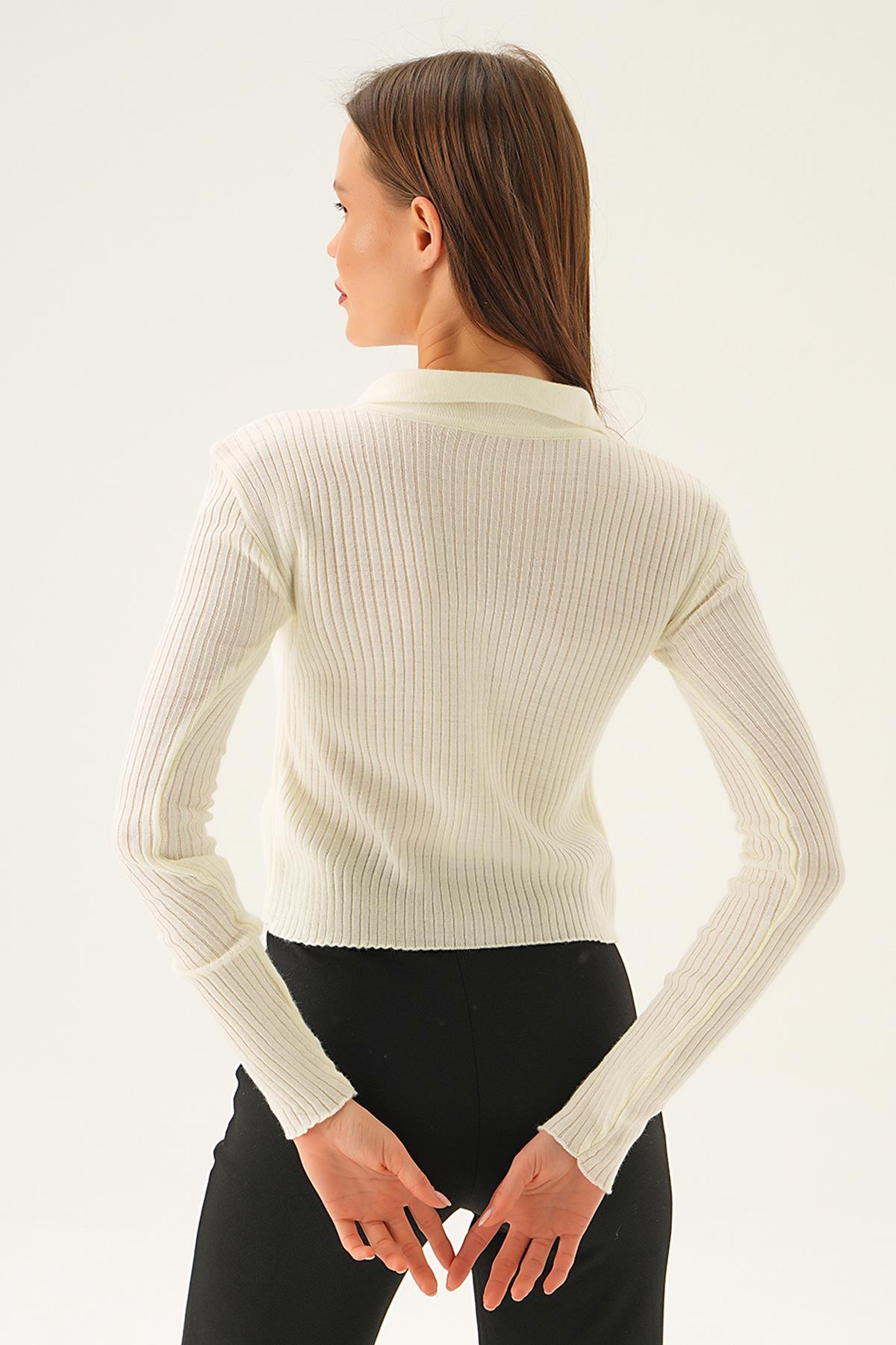 Kemik Polo Yaka Düğmeli Kazak 5287
