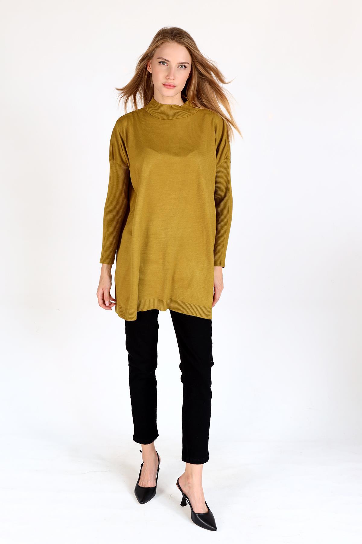 Yağ Yeşili Balıkçı Yaka Triko Tunik 5315