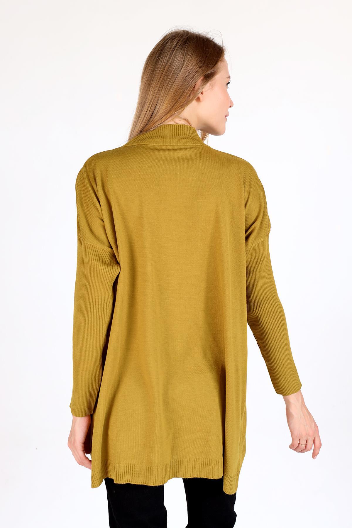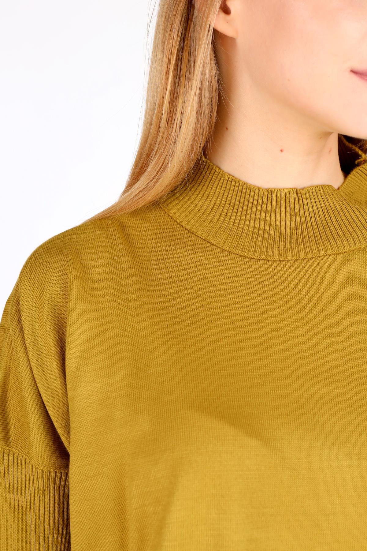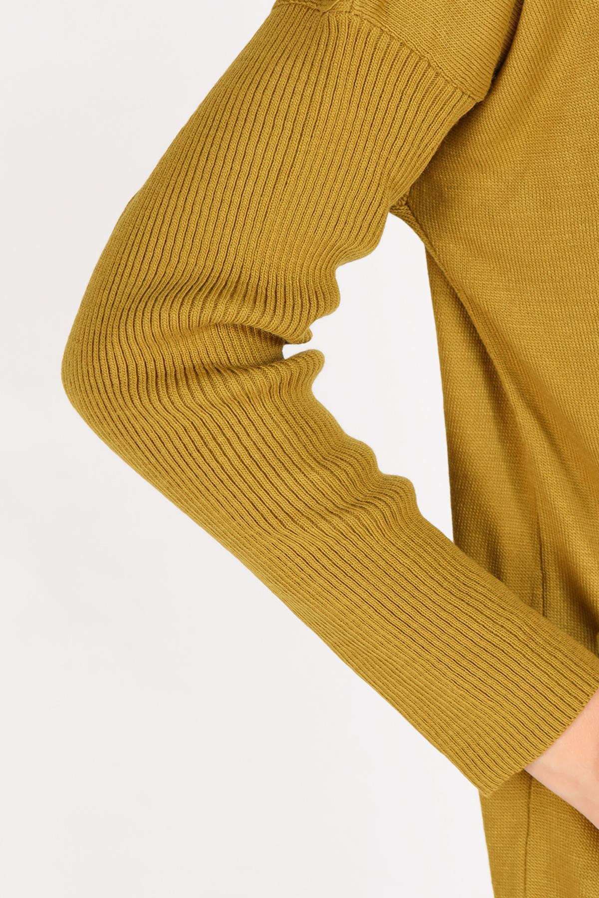 2359 Bisiklet Yaka Kurdele Detay Kazak Sarı