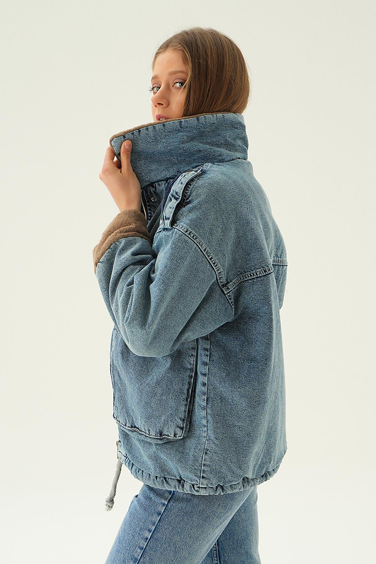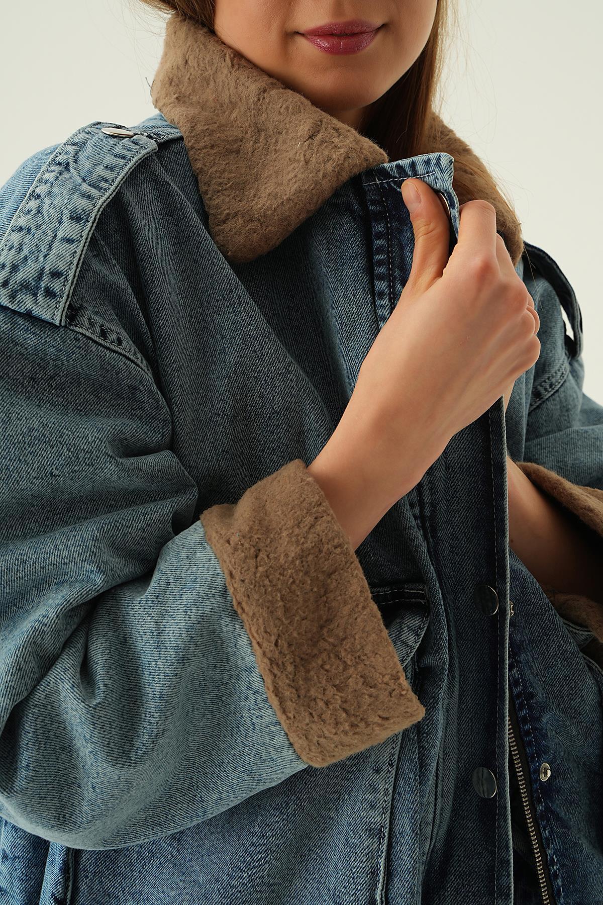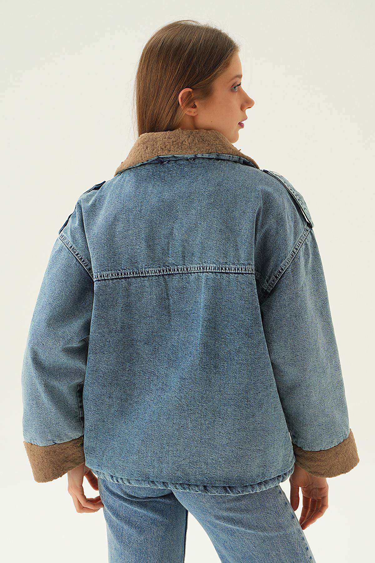 Koyu Kar Yıkama Kol Kürk Detay Jean Ceket 5320