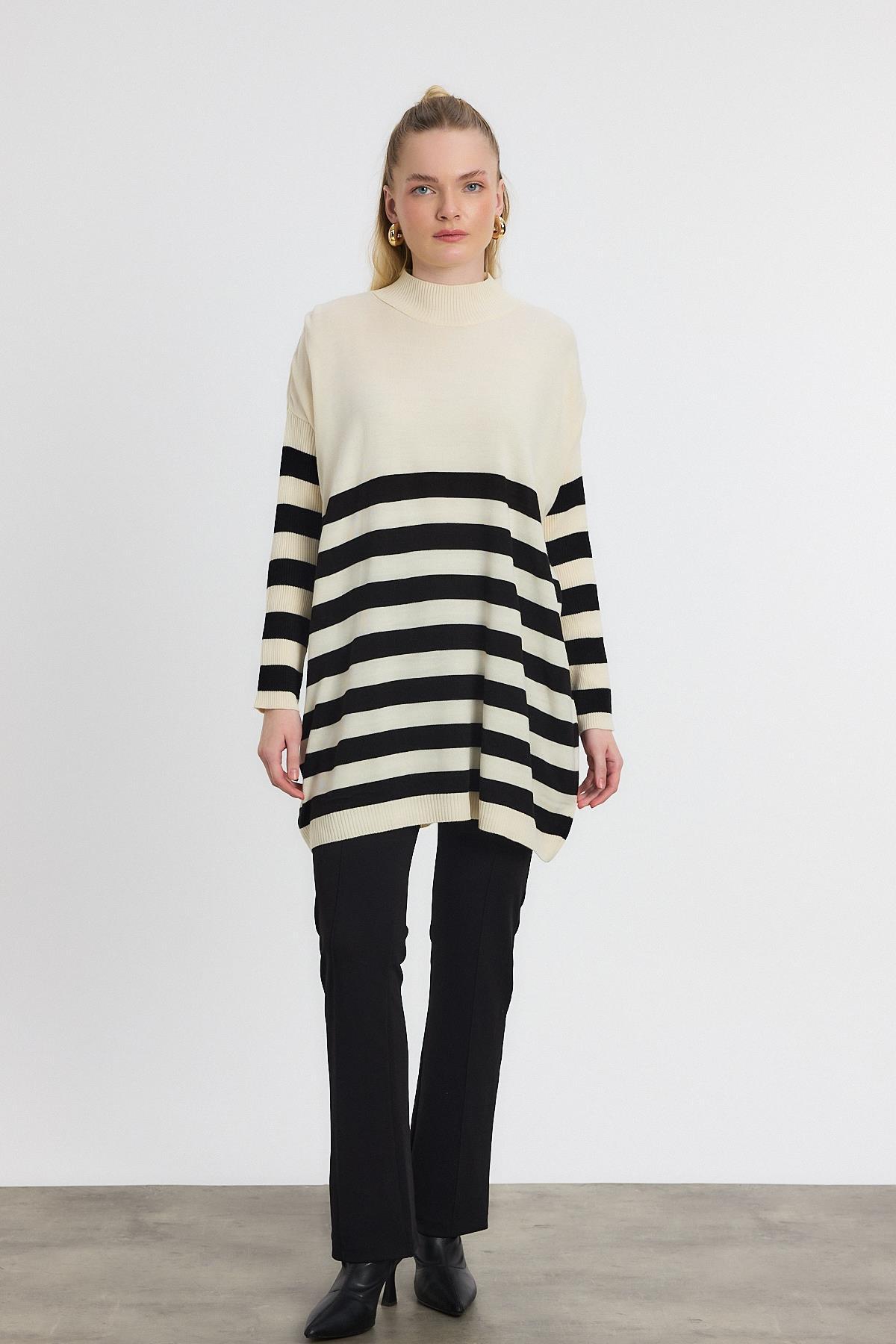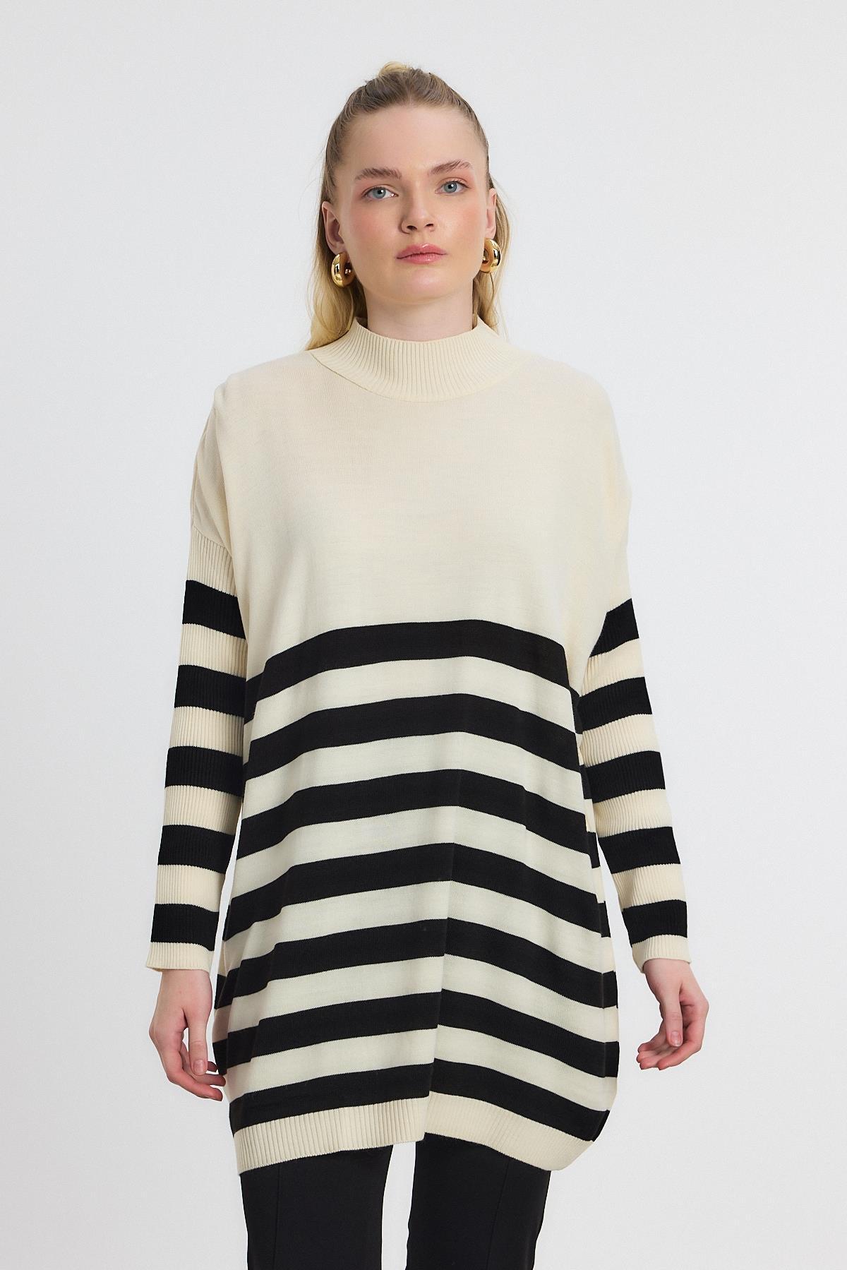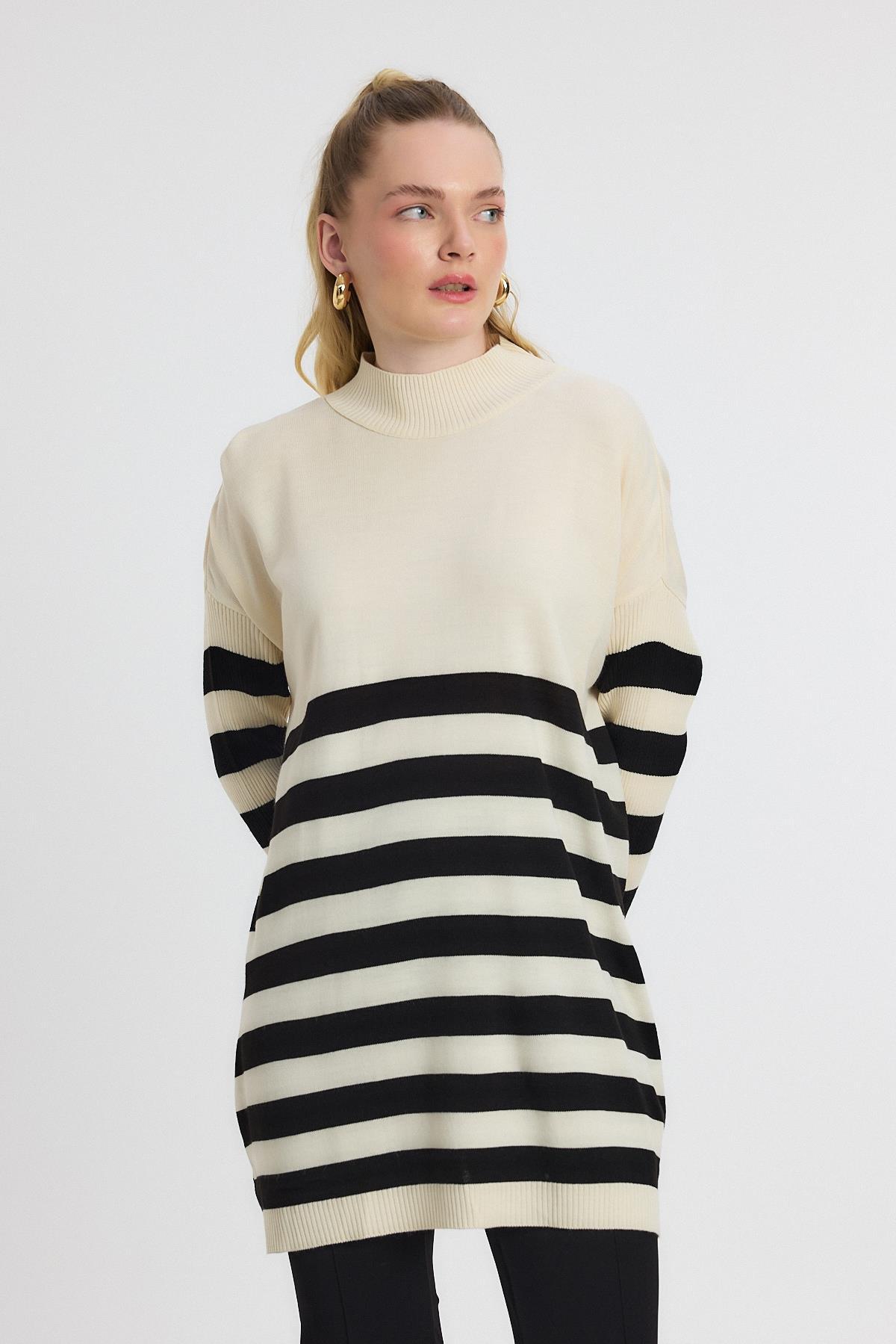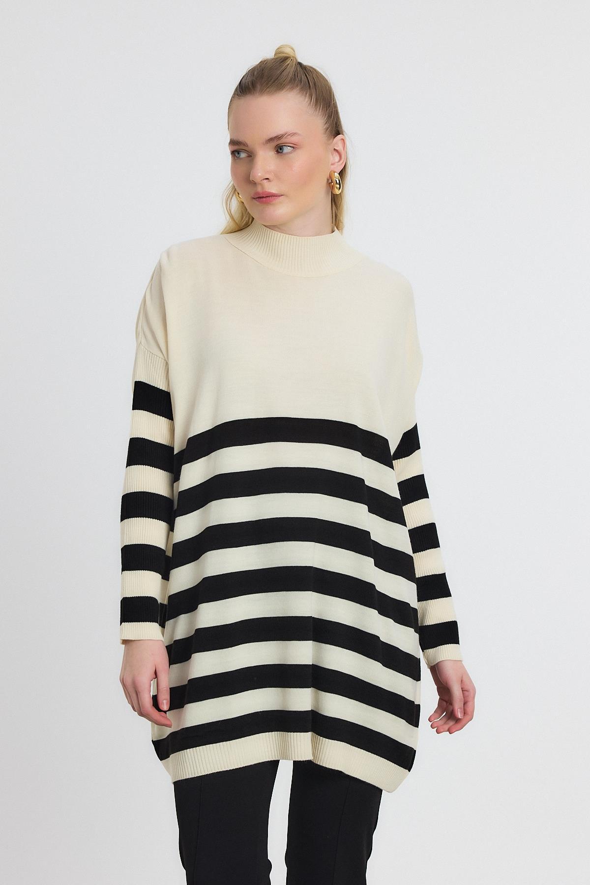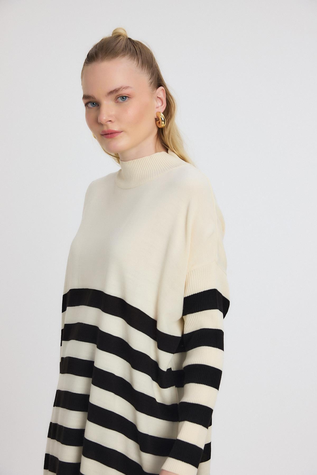 Gri - Ekru Yıldız Baskılı Oversize Kazak 2474 - RAYS Gri - Ekru Yıldız Baskılı Oversize Kazak 2474 - RAYS (1)