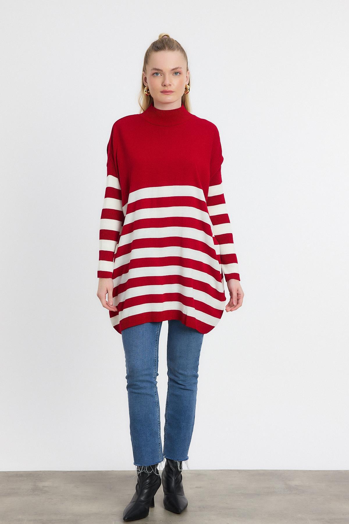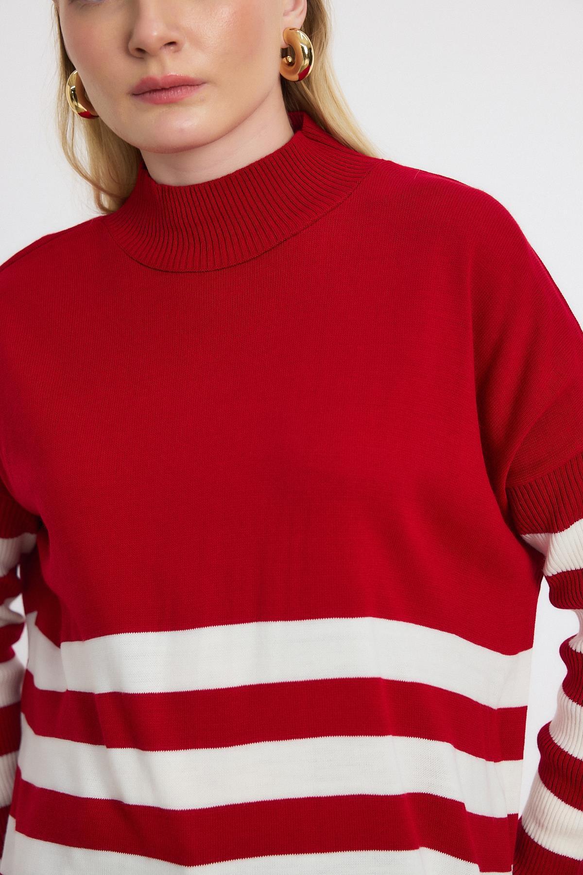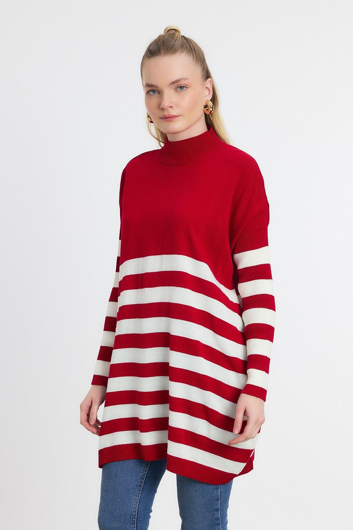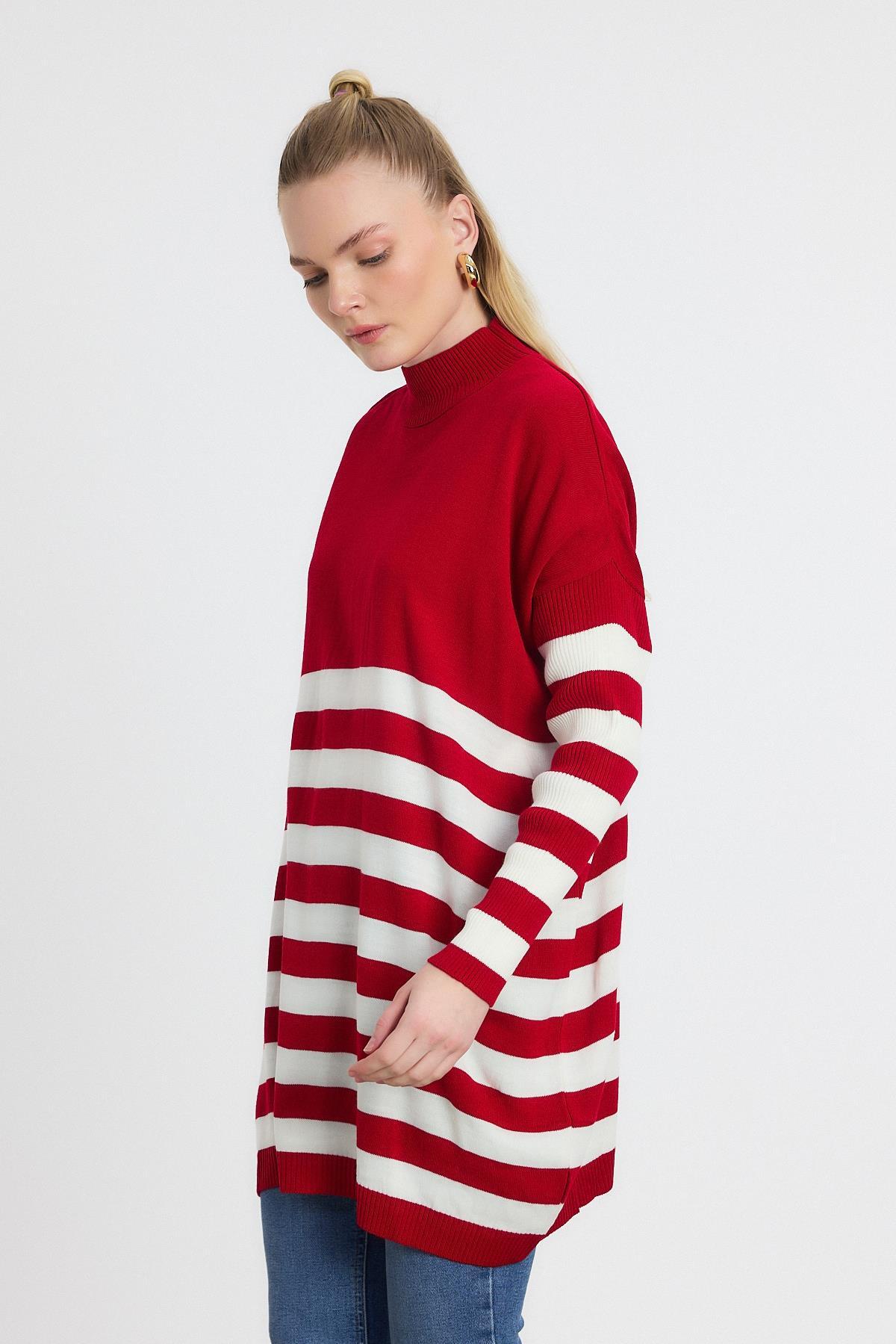 Kırmızı Kalın Çizgili Tunik 5325