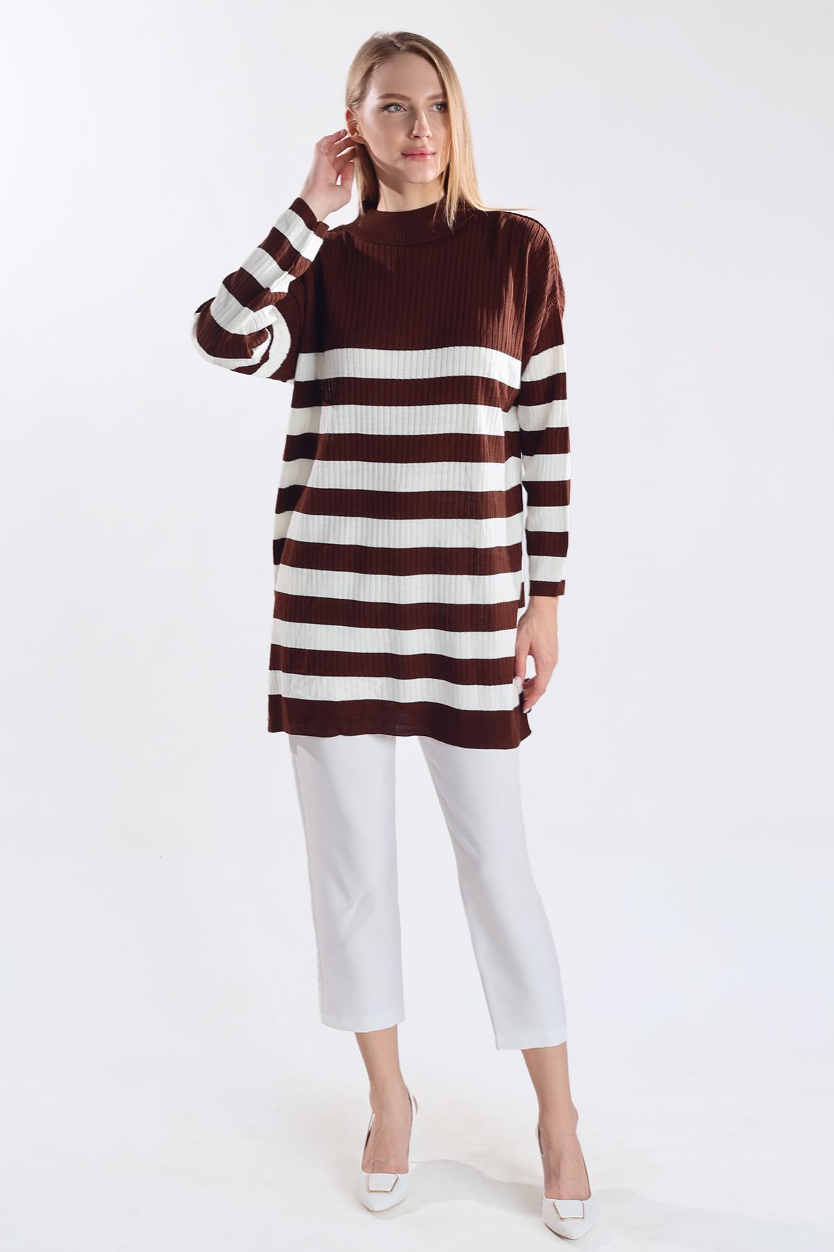 Kahve - Ekru Yıldız Baskılı Oversize Kazak 2474 - RAYS Kahve - Ekru Yıldız Baskılı Oversize Kazak 2474 - RAYS (1)