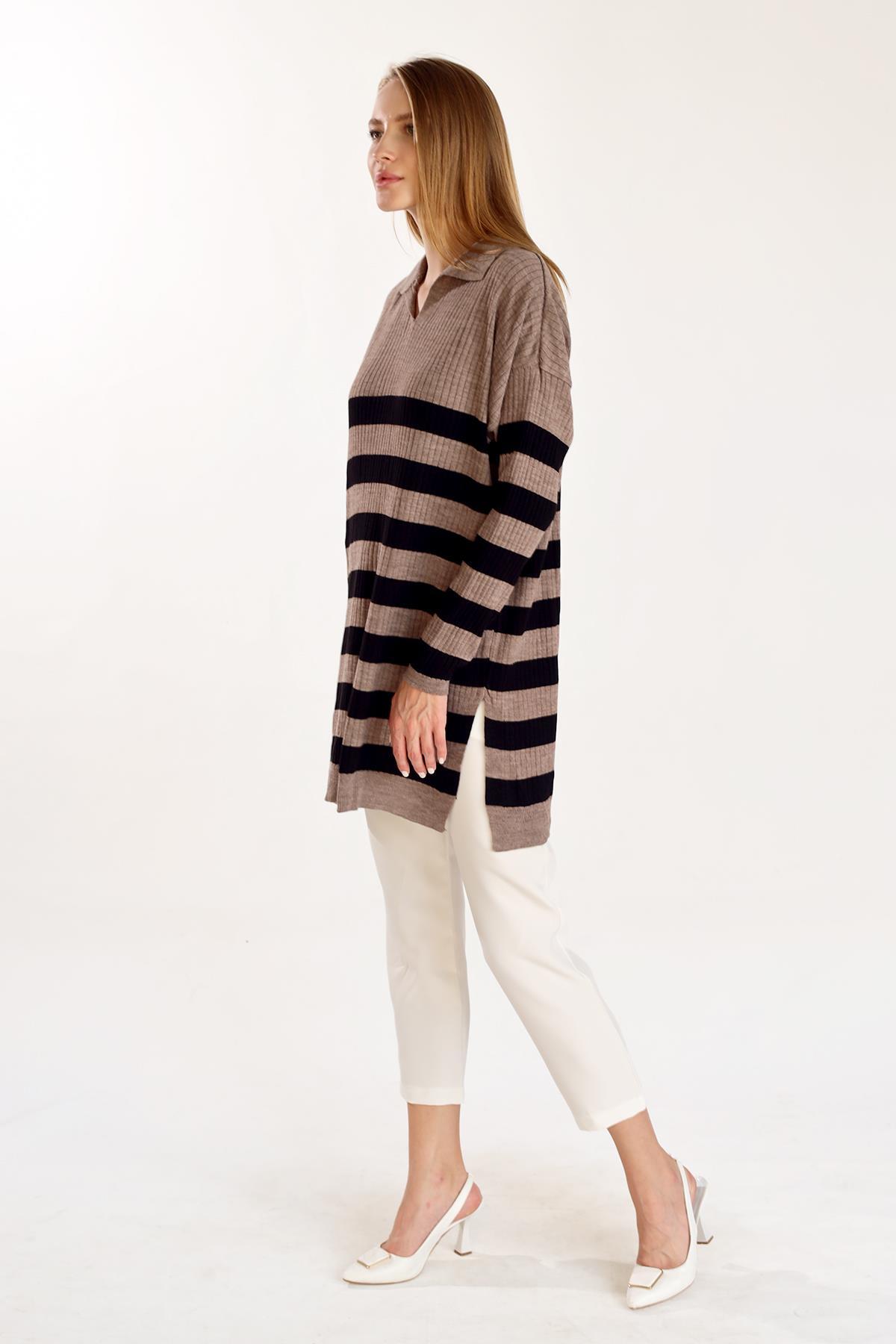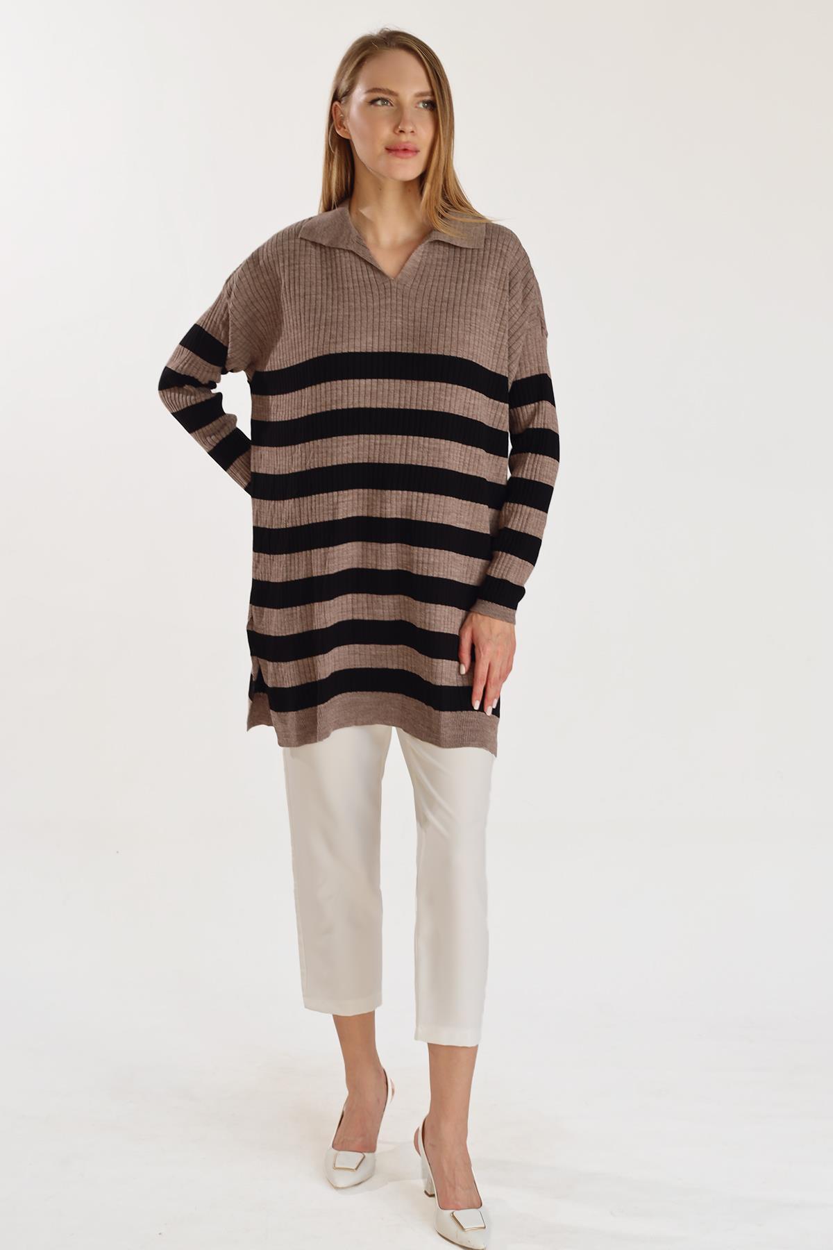 Vizon Çizgili Fitilli Triko Tunik 5335