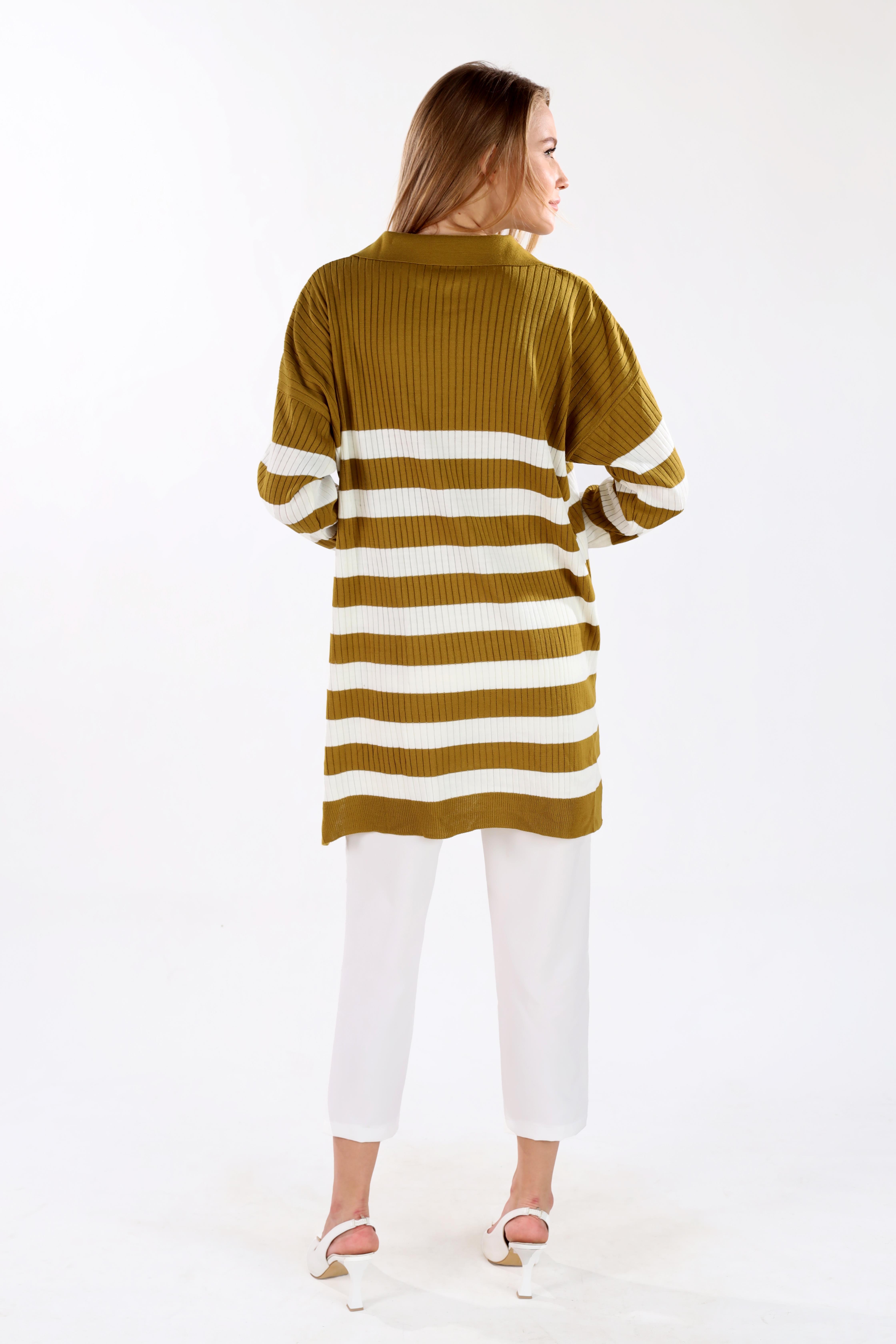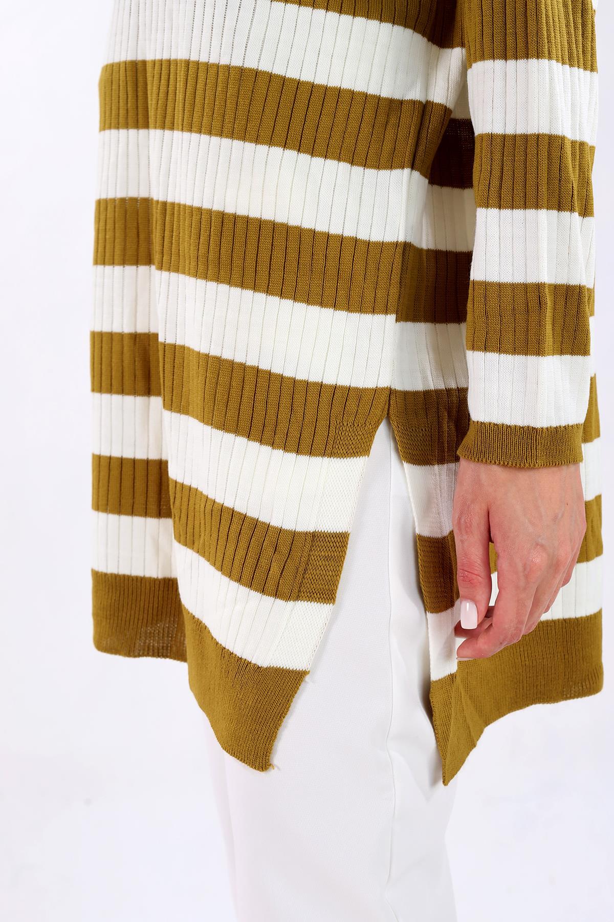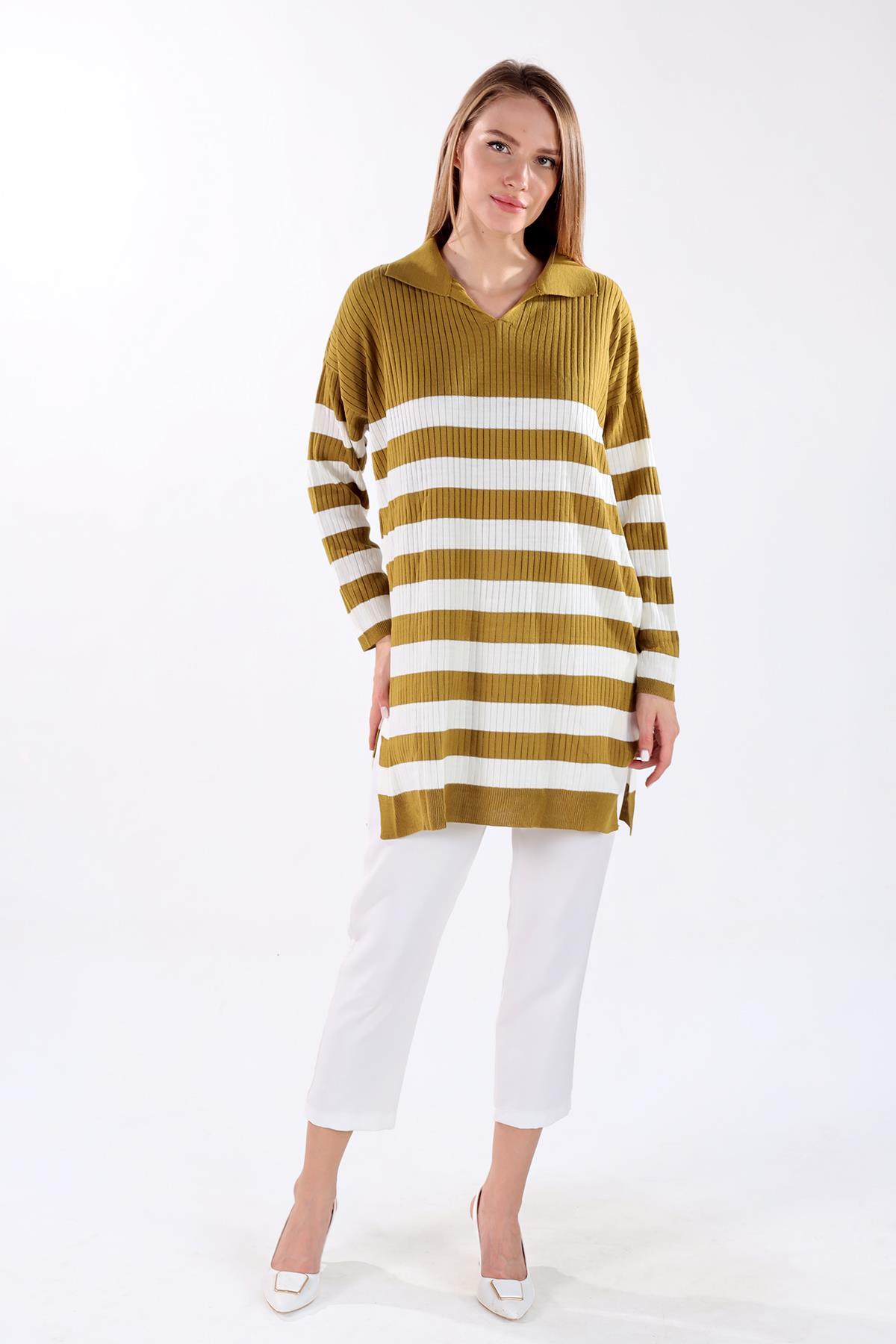 Yağ Yeşili Çizgili Fitilli Triko Tunik 5335