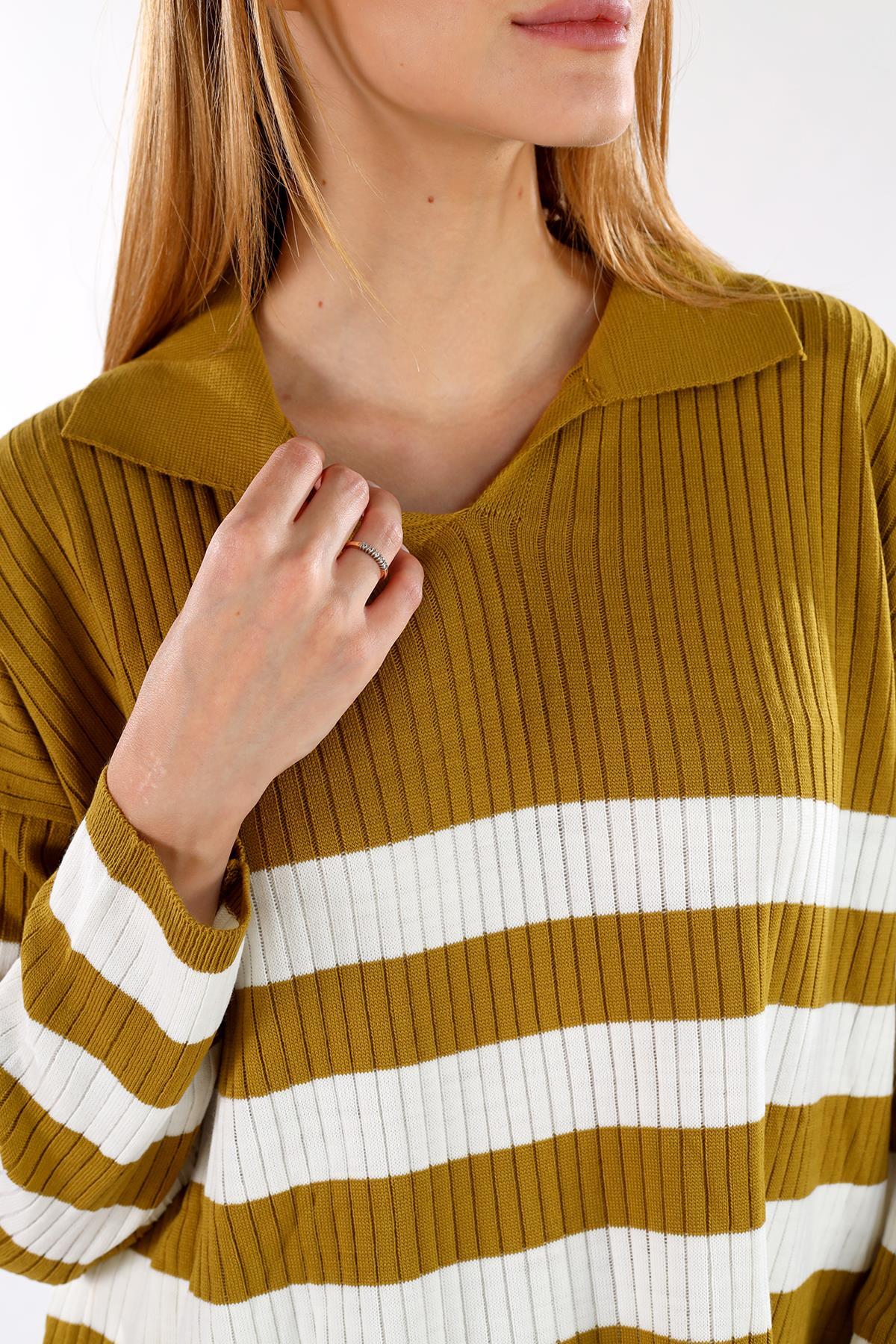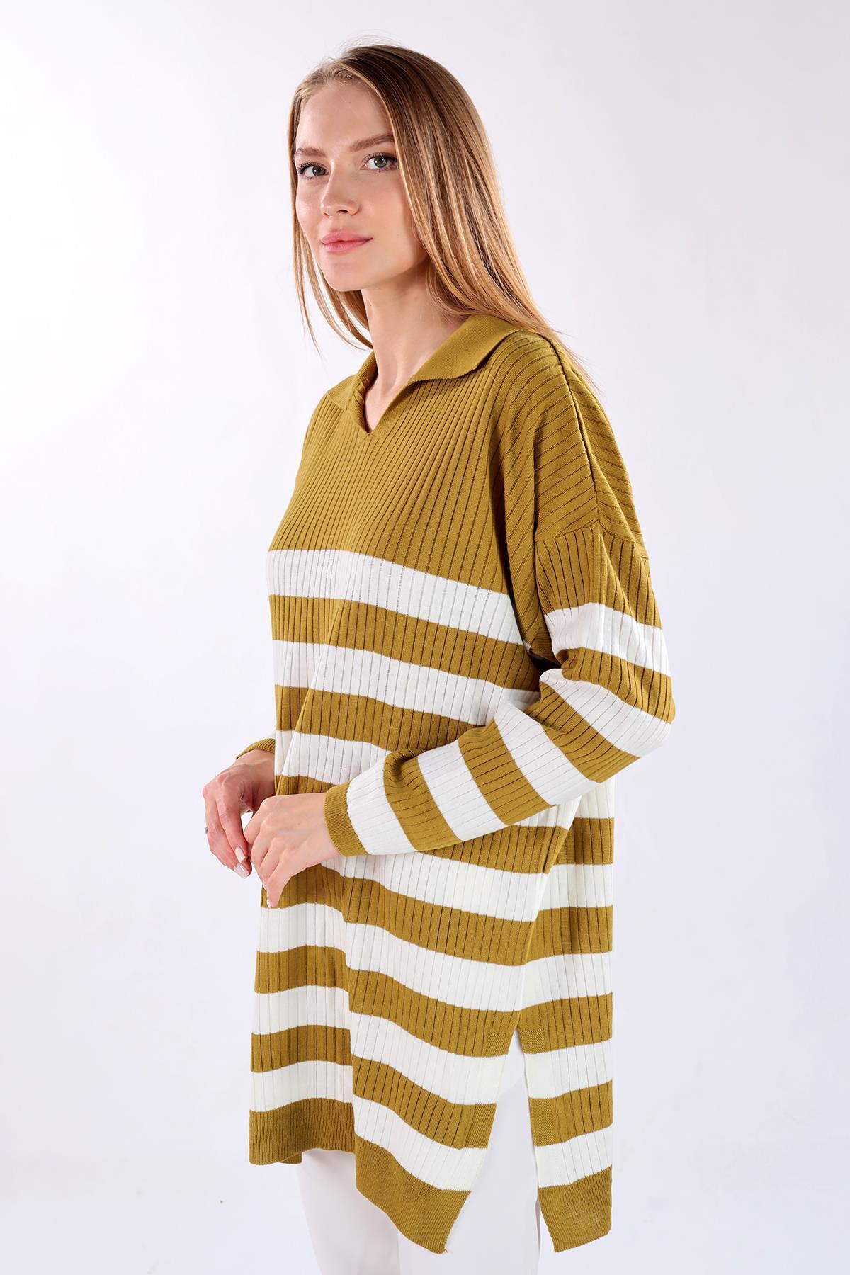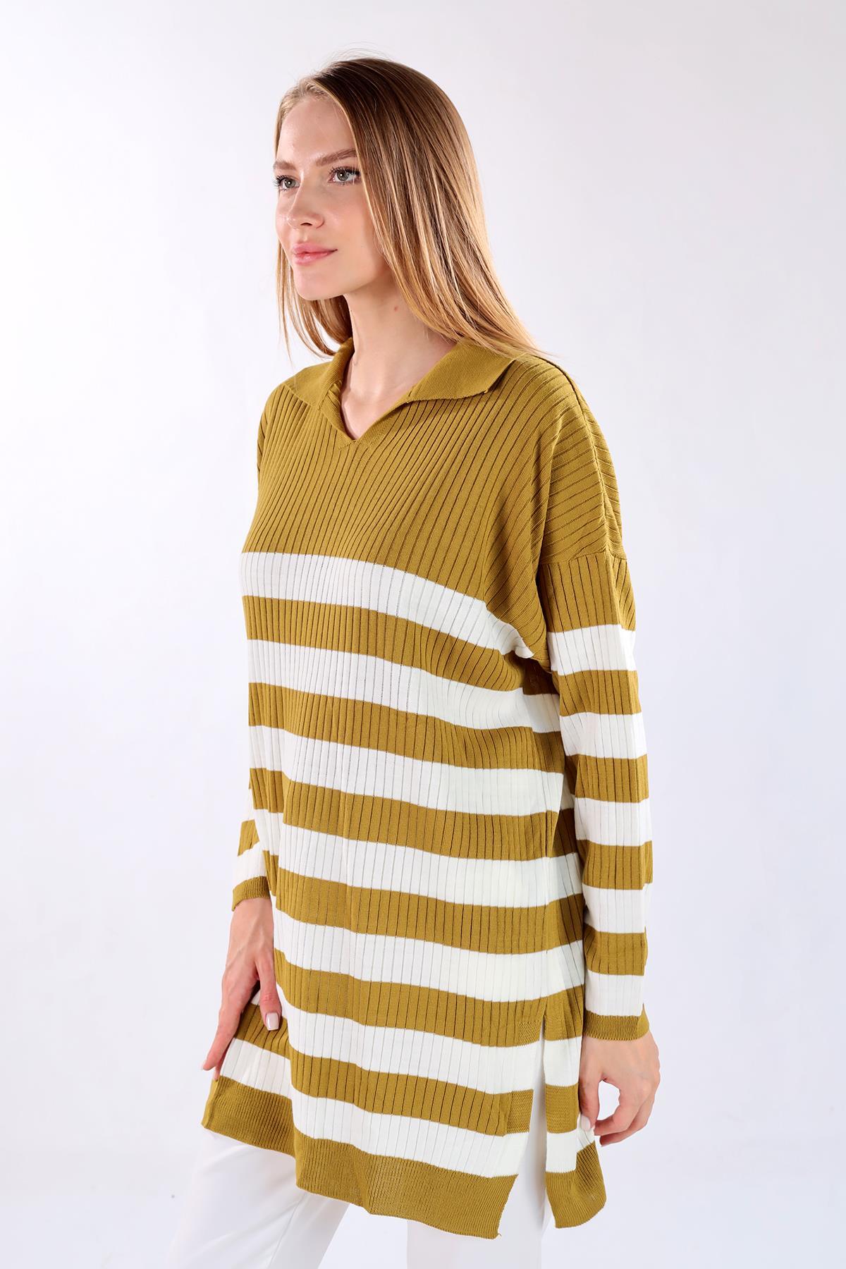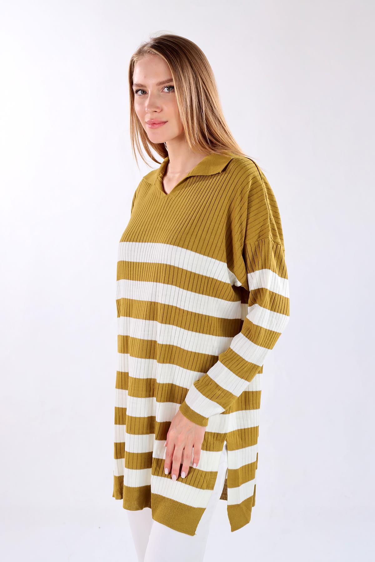 Yağ Yeşili Çizgili Fitilli Triko Tunik 5335