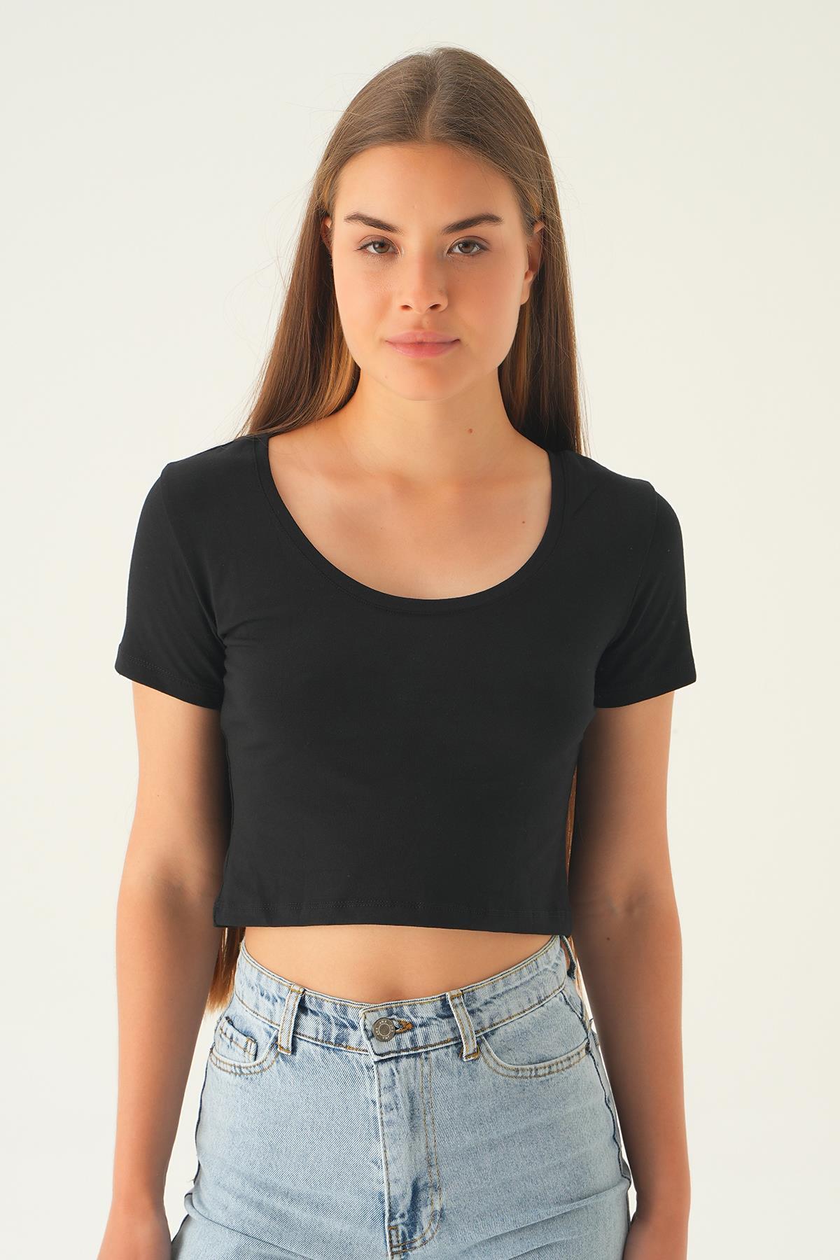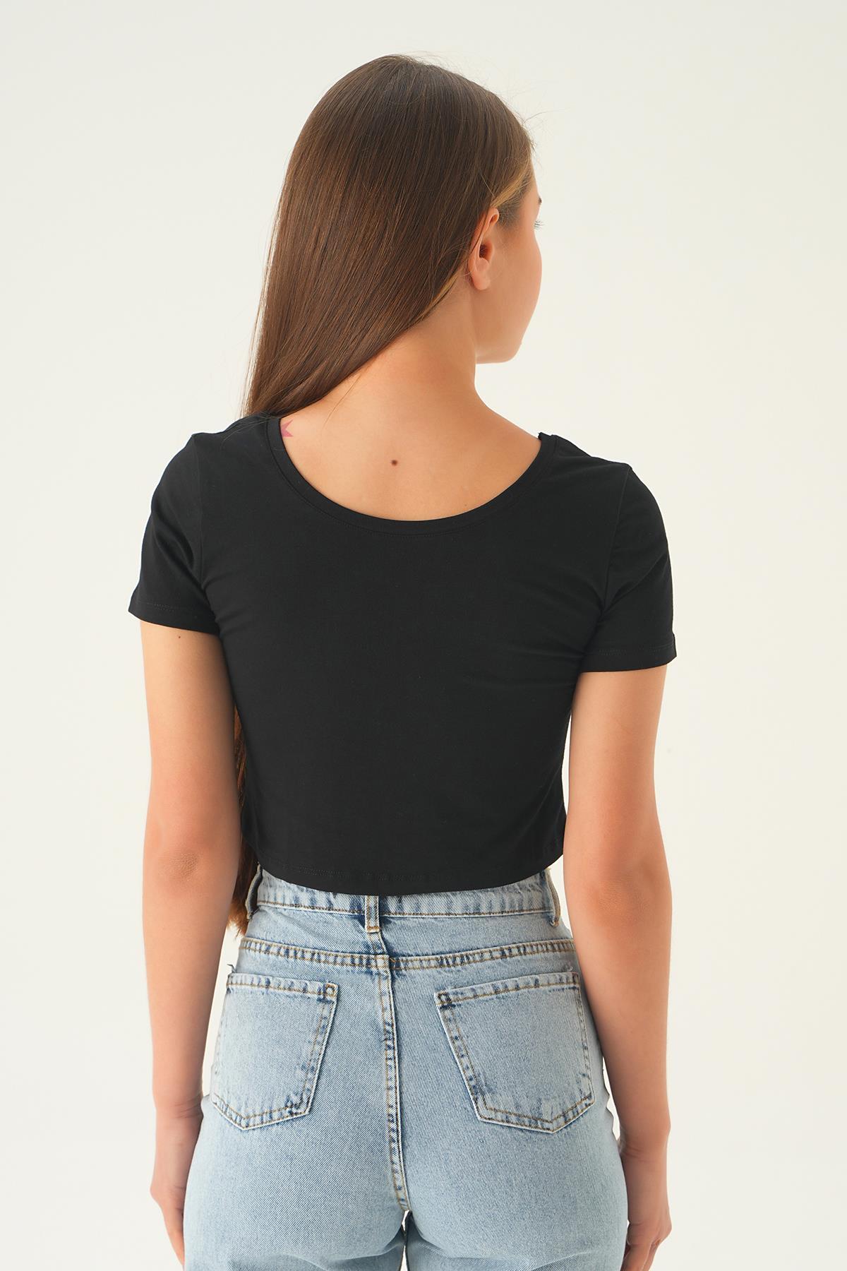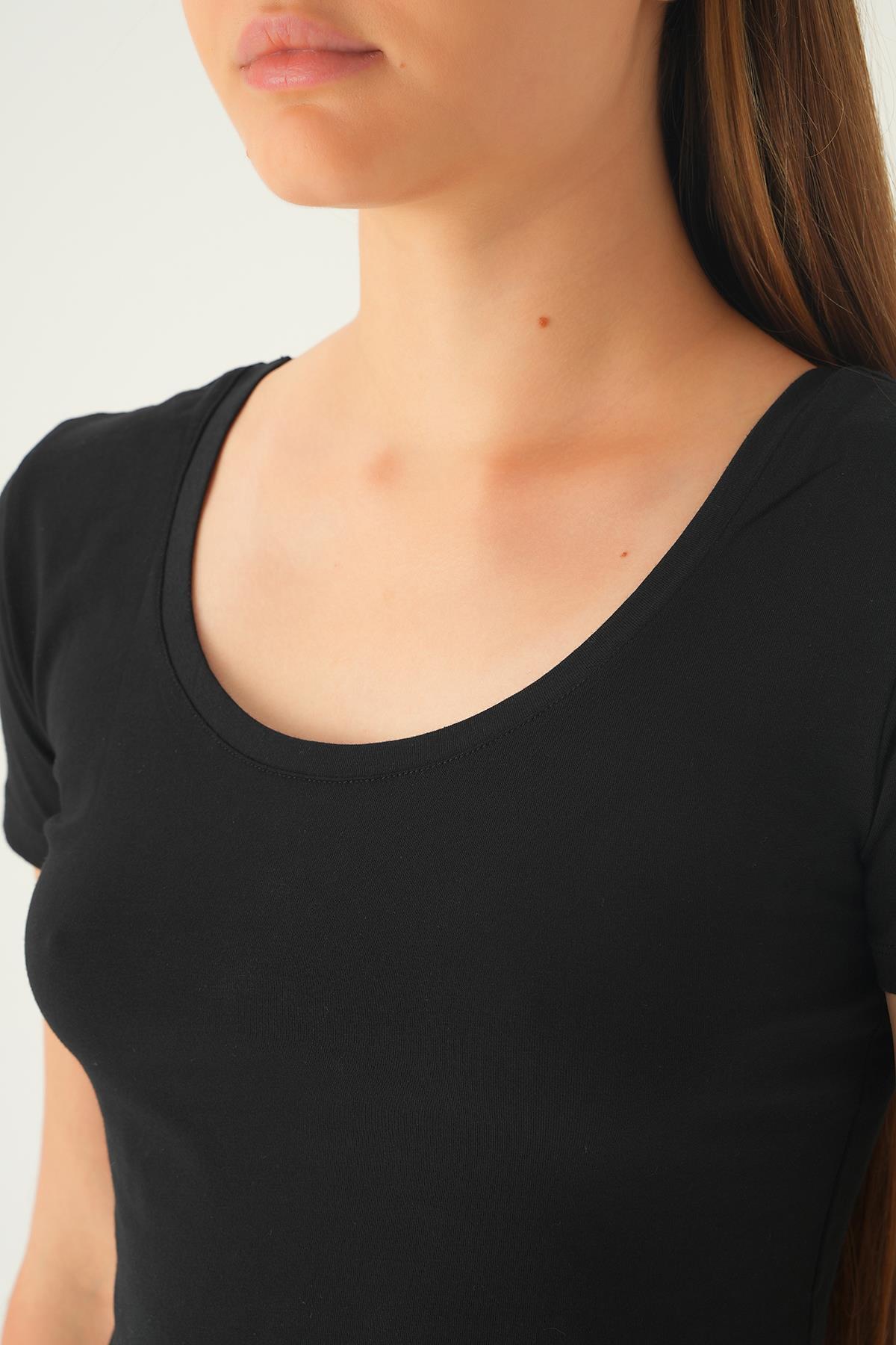 Siyah Ön Arka U Yaka Kısa Tişört 537