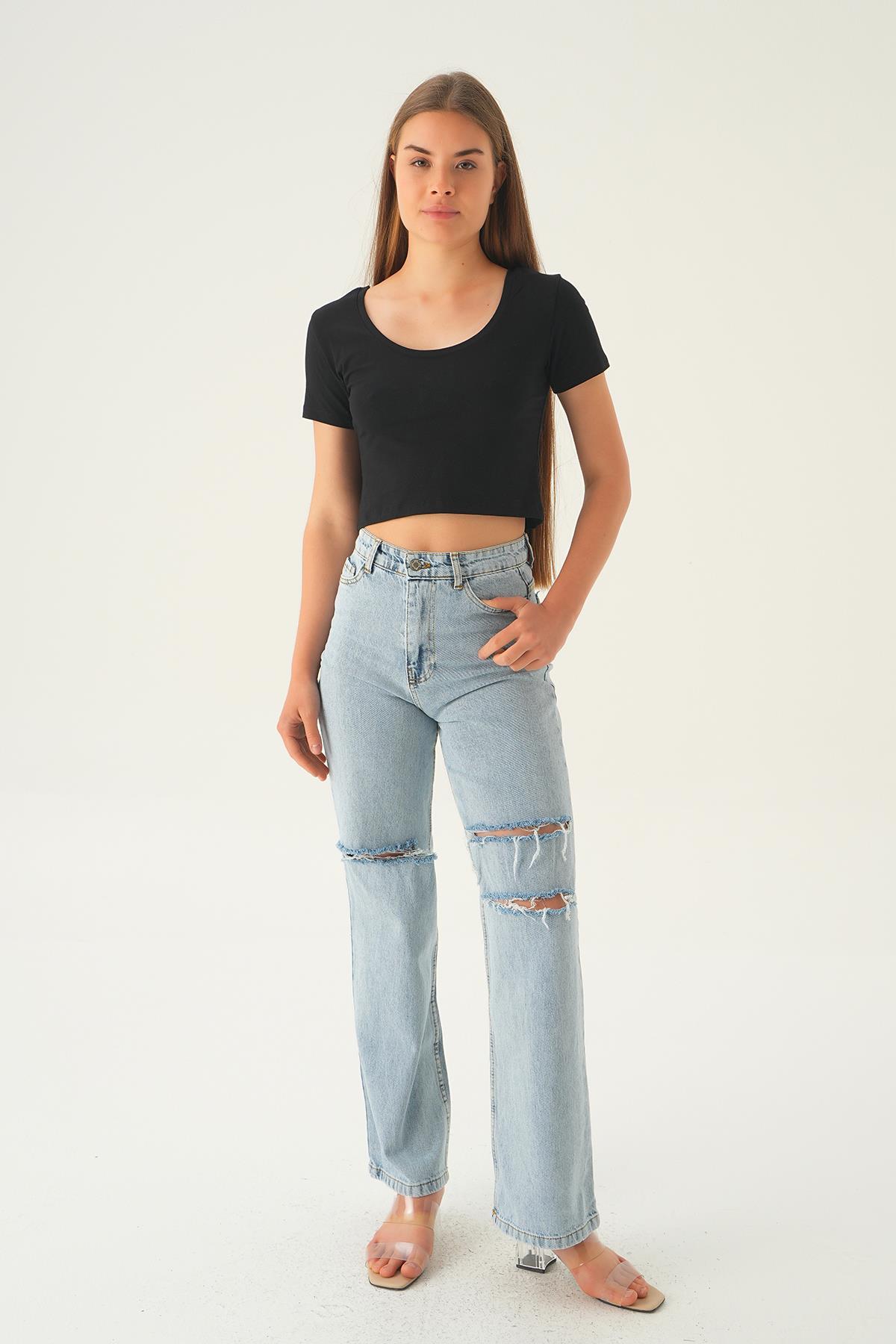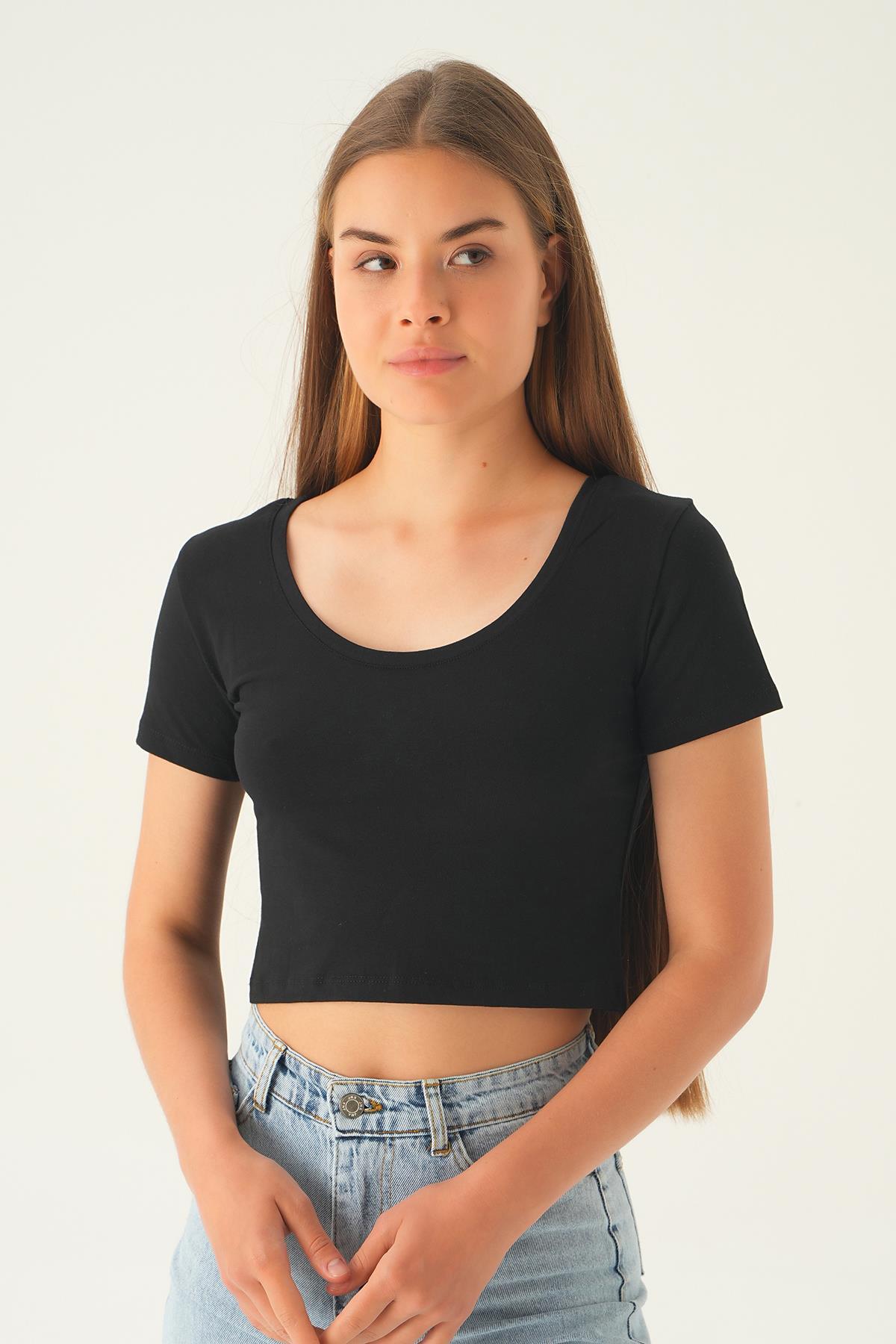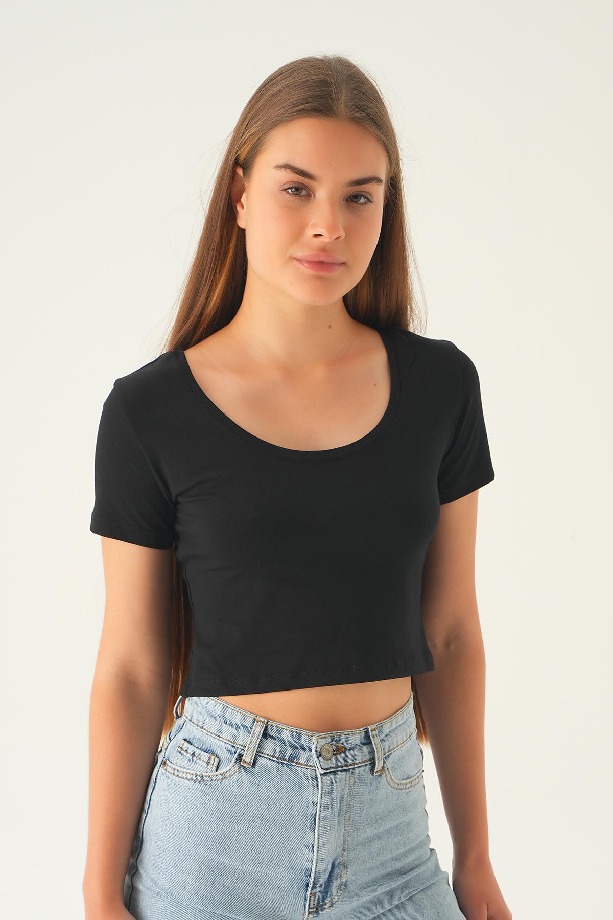 Siyah Ön Arka U Yaka Kısa Tişört 537