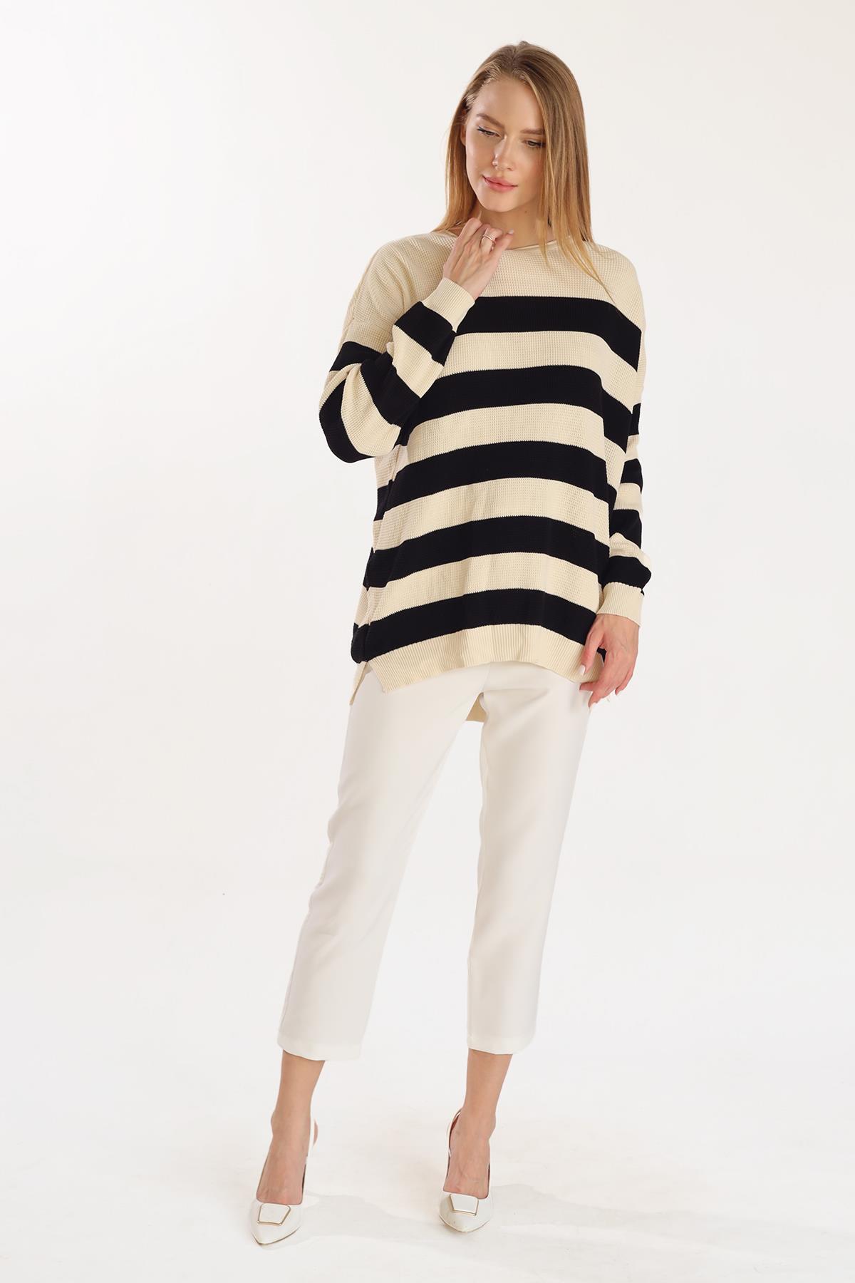 Ekru Bisiklet Yaka Çizgili Tunik 5380