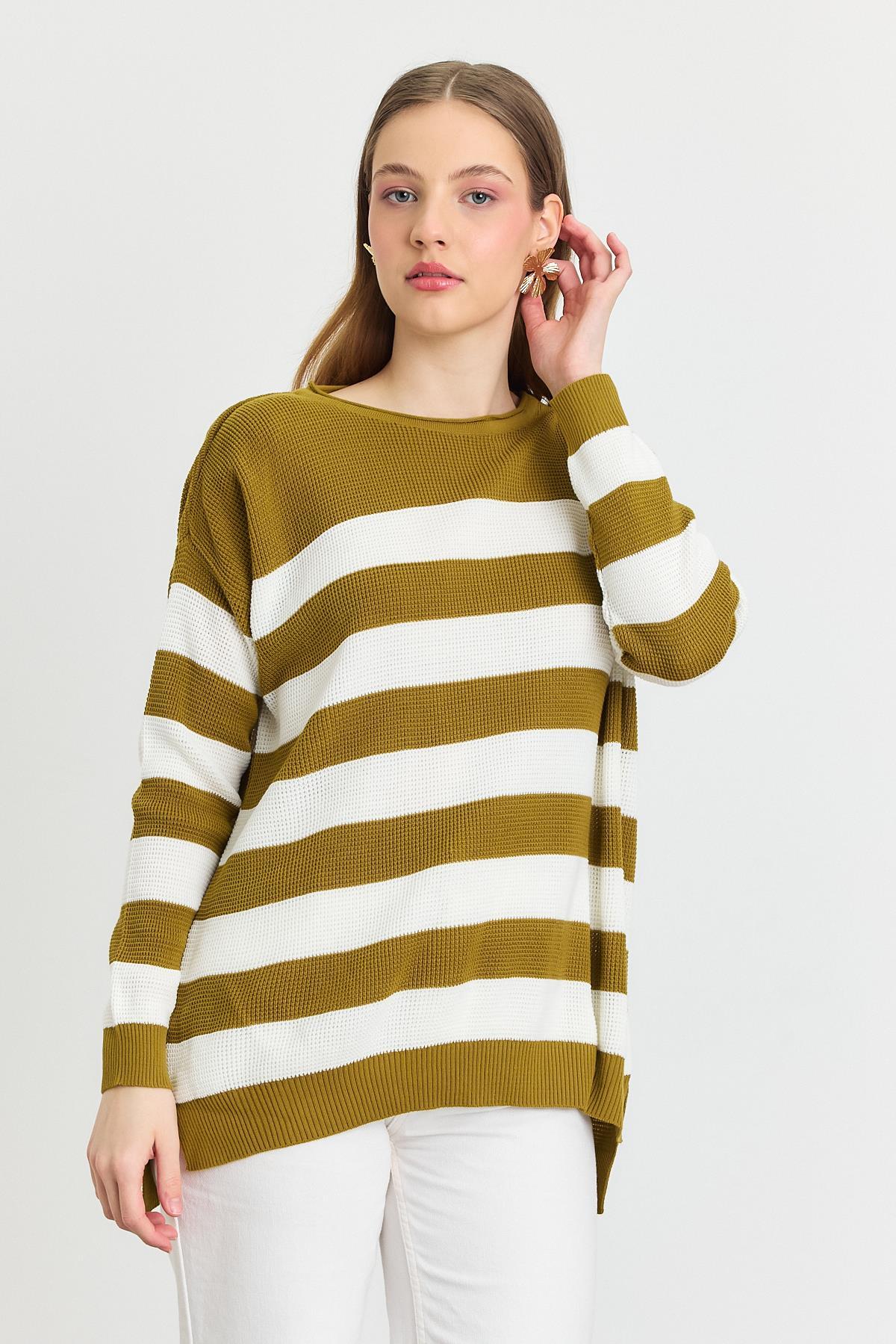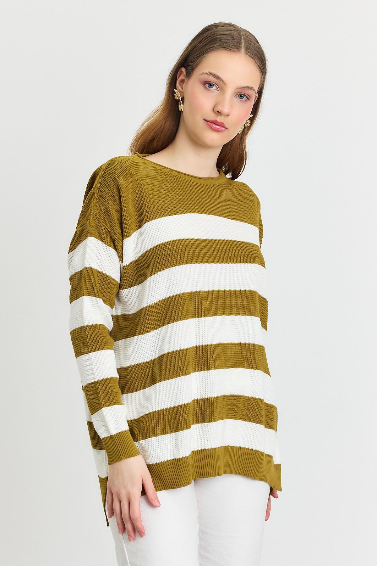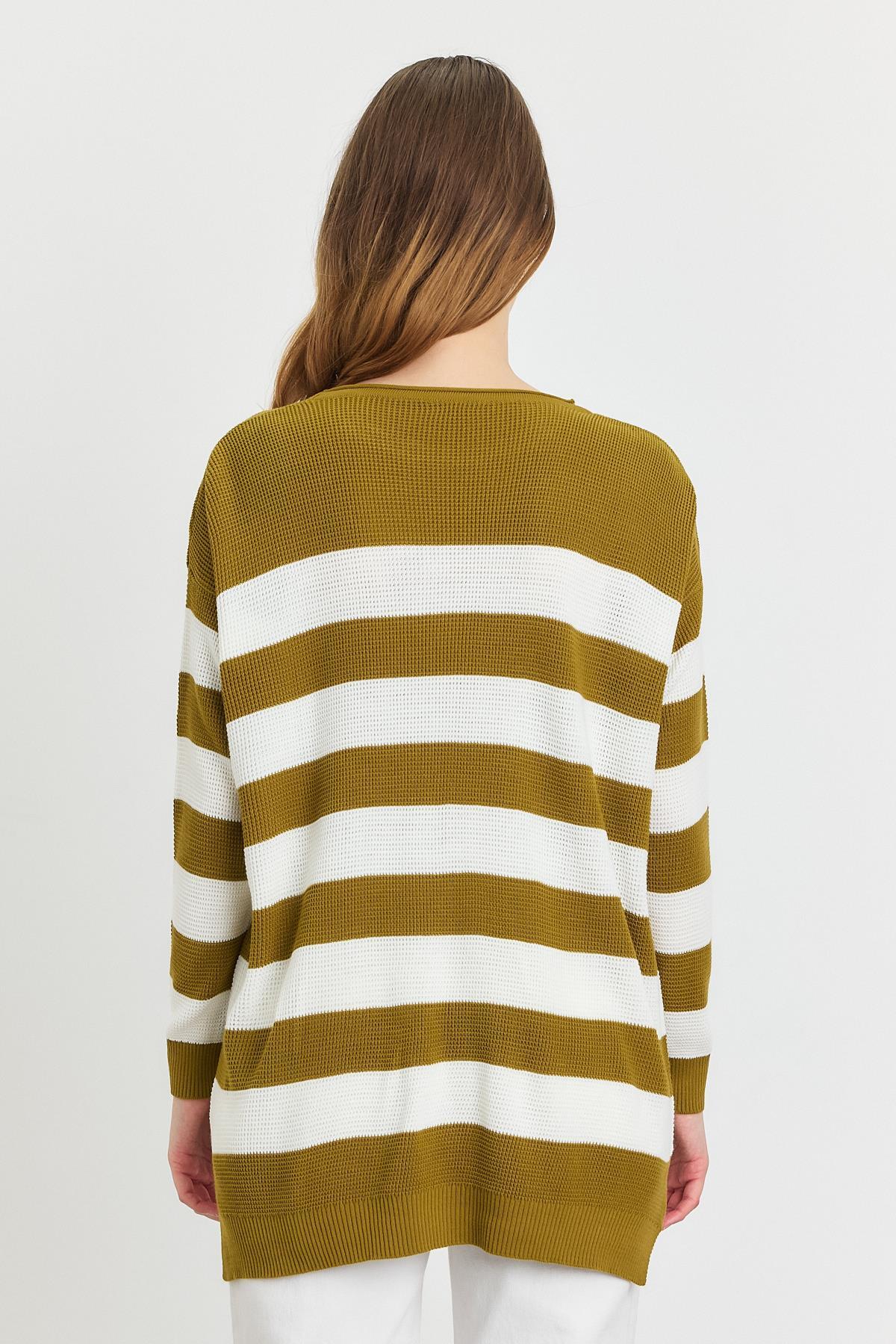 Yağ Yeşili Bisiklet Yaka Çizgili Tunik 5380