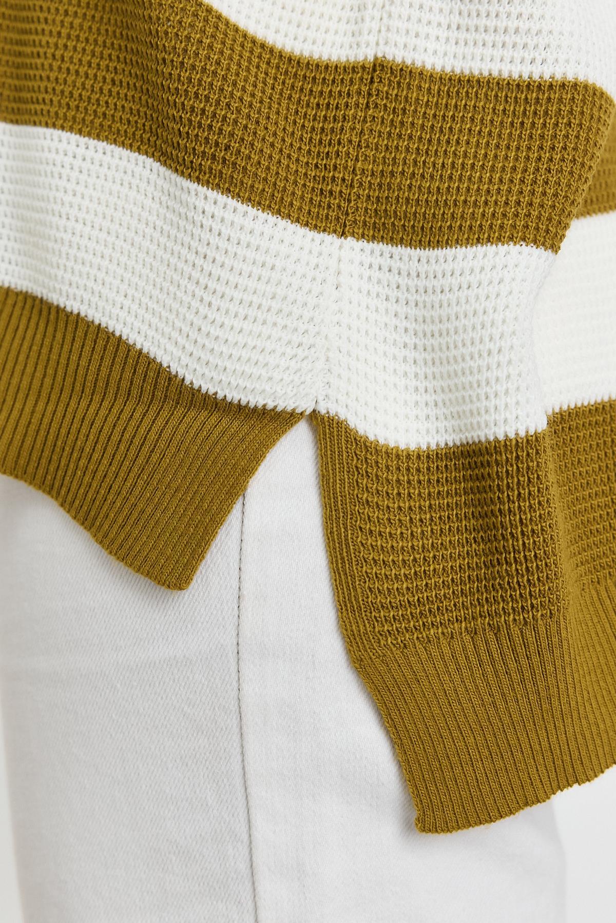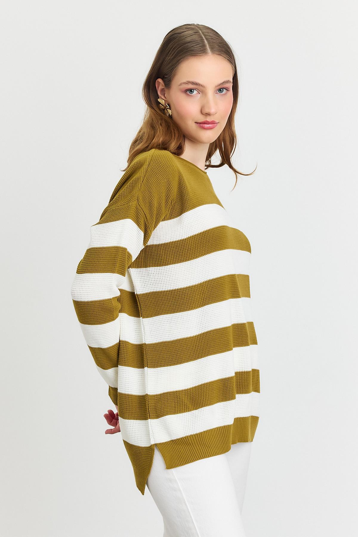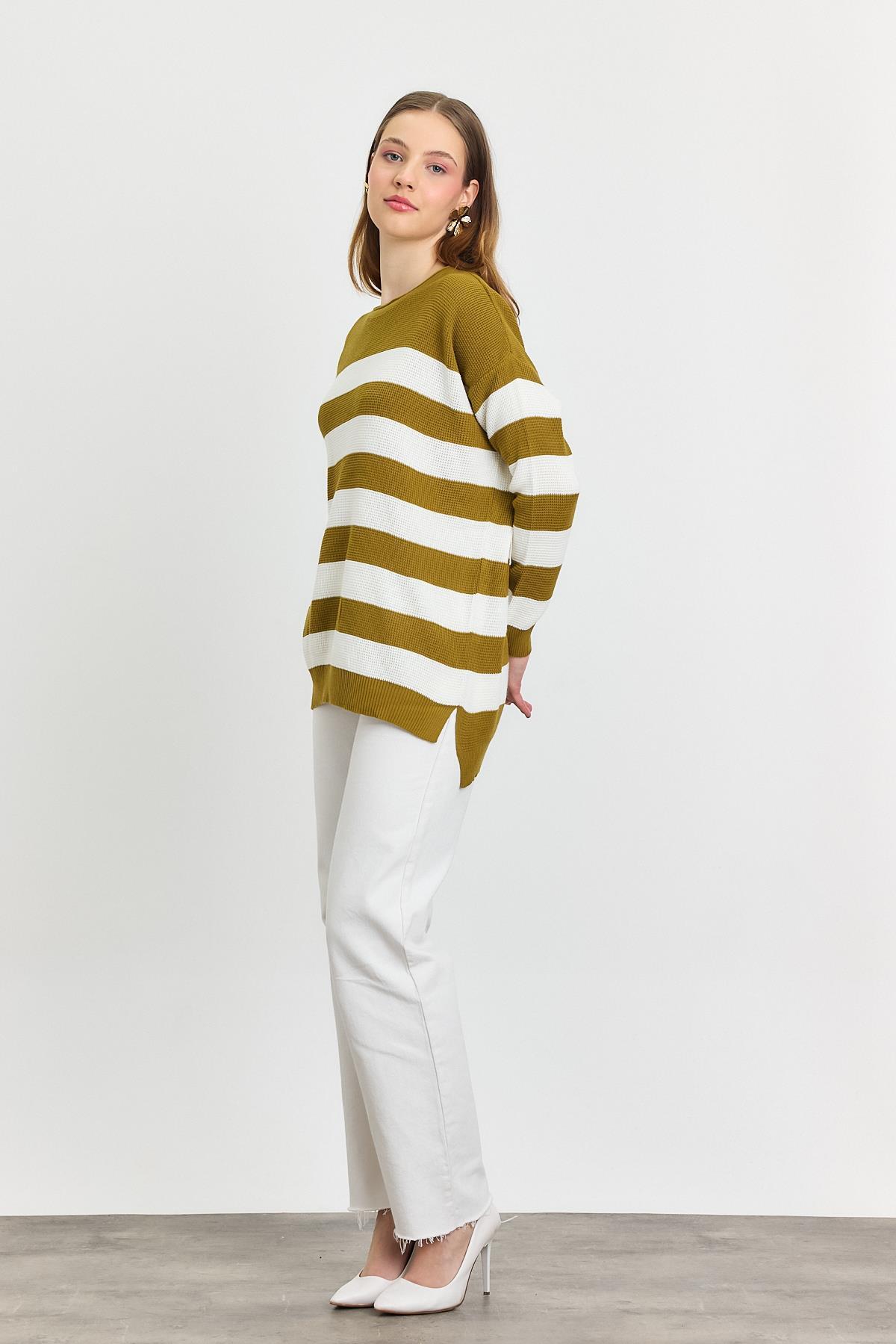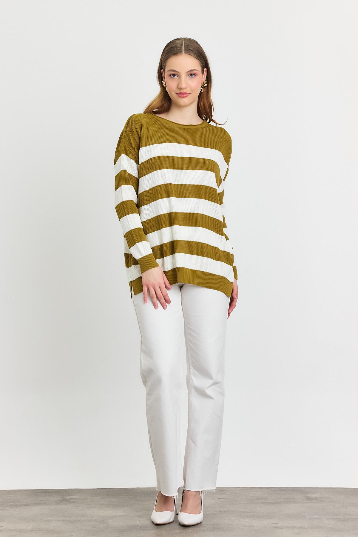 Yağ Yeşili Bisiklet Yaka Çizgili Tunik 5380
