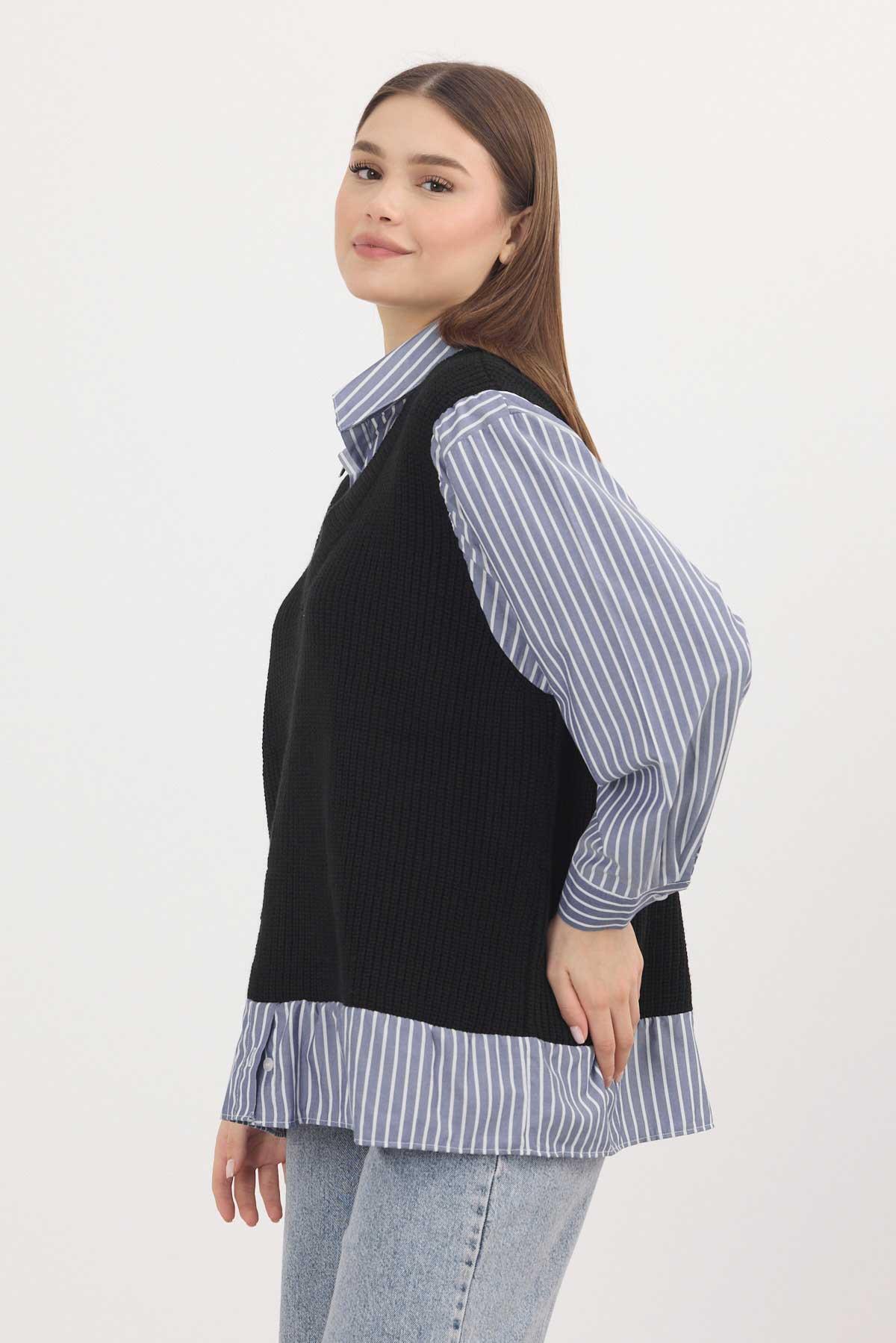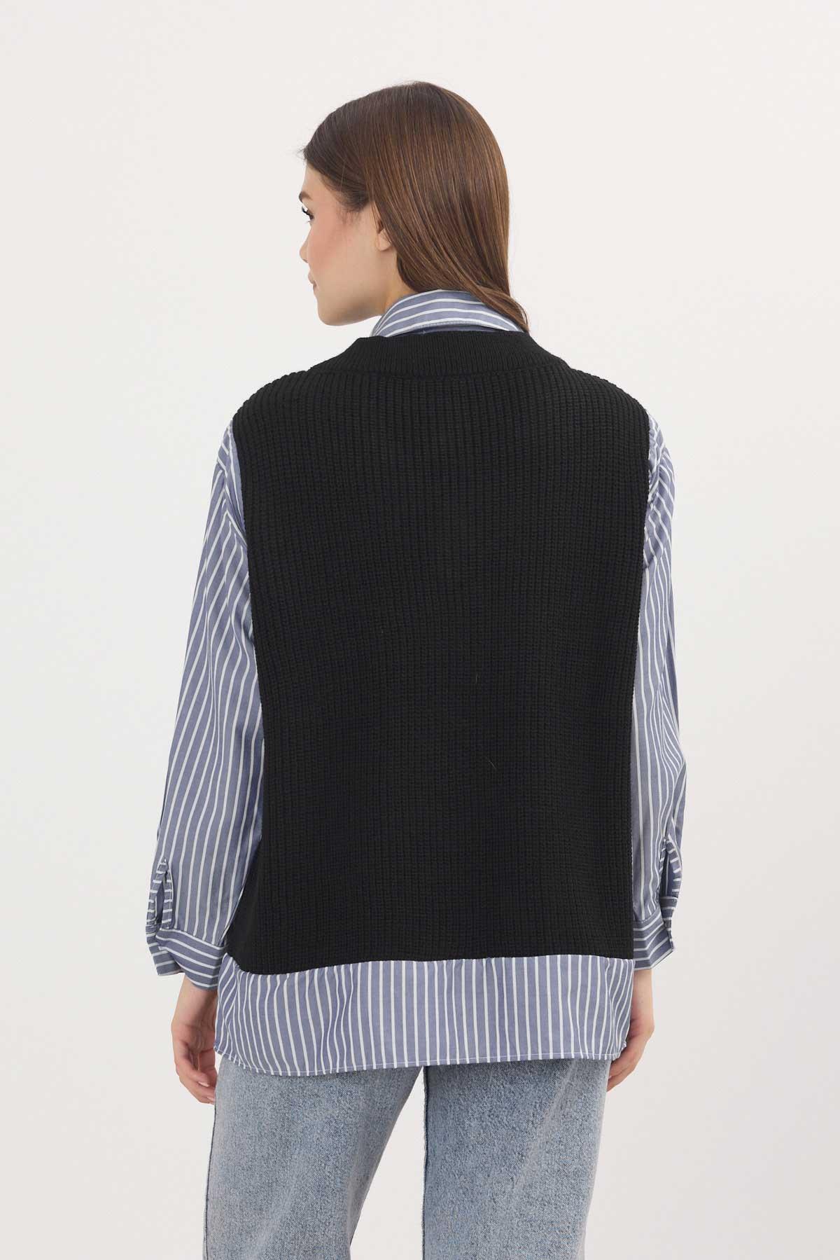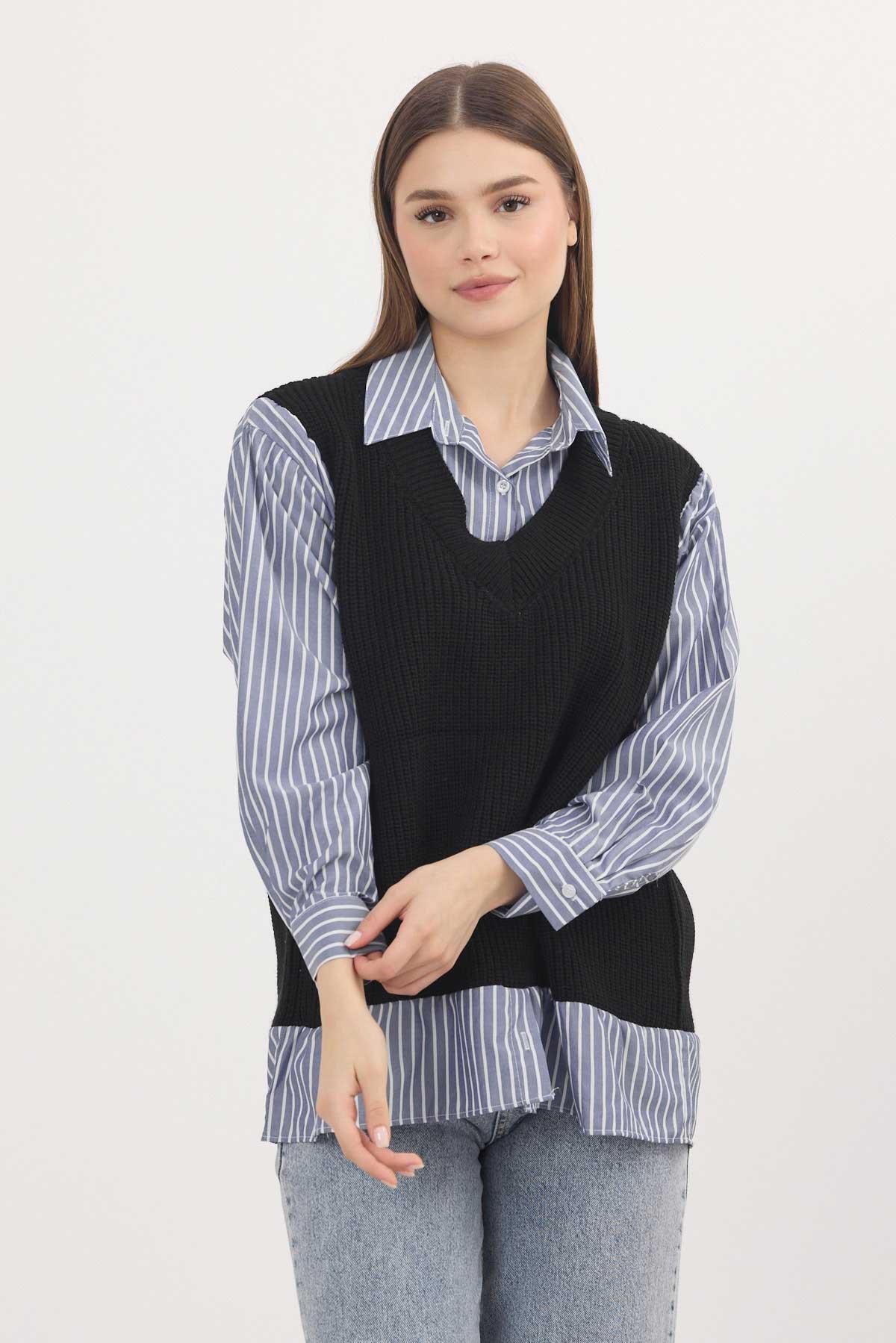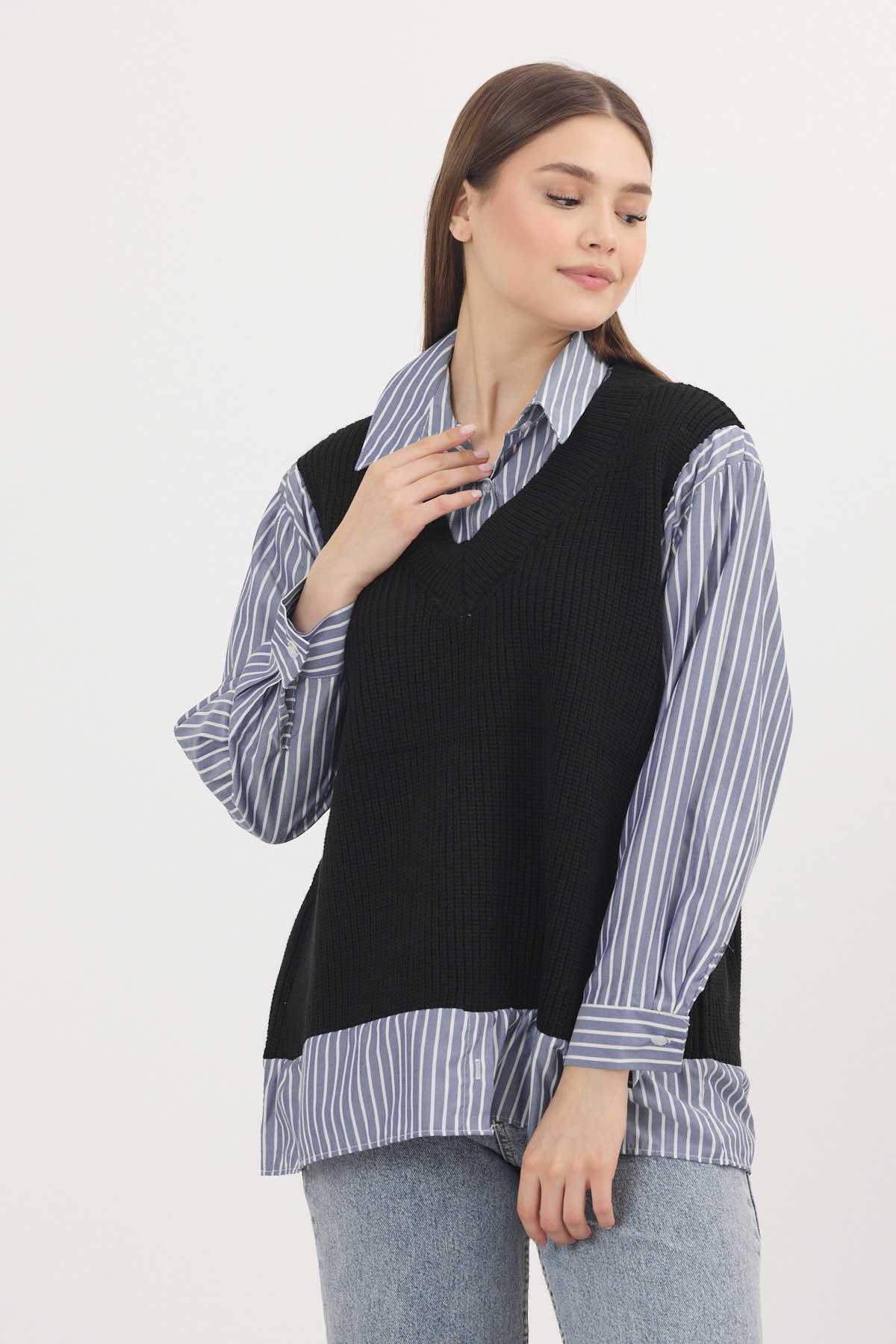 Siyah-Saks Gömlek Detay Kazak 5395