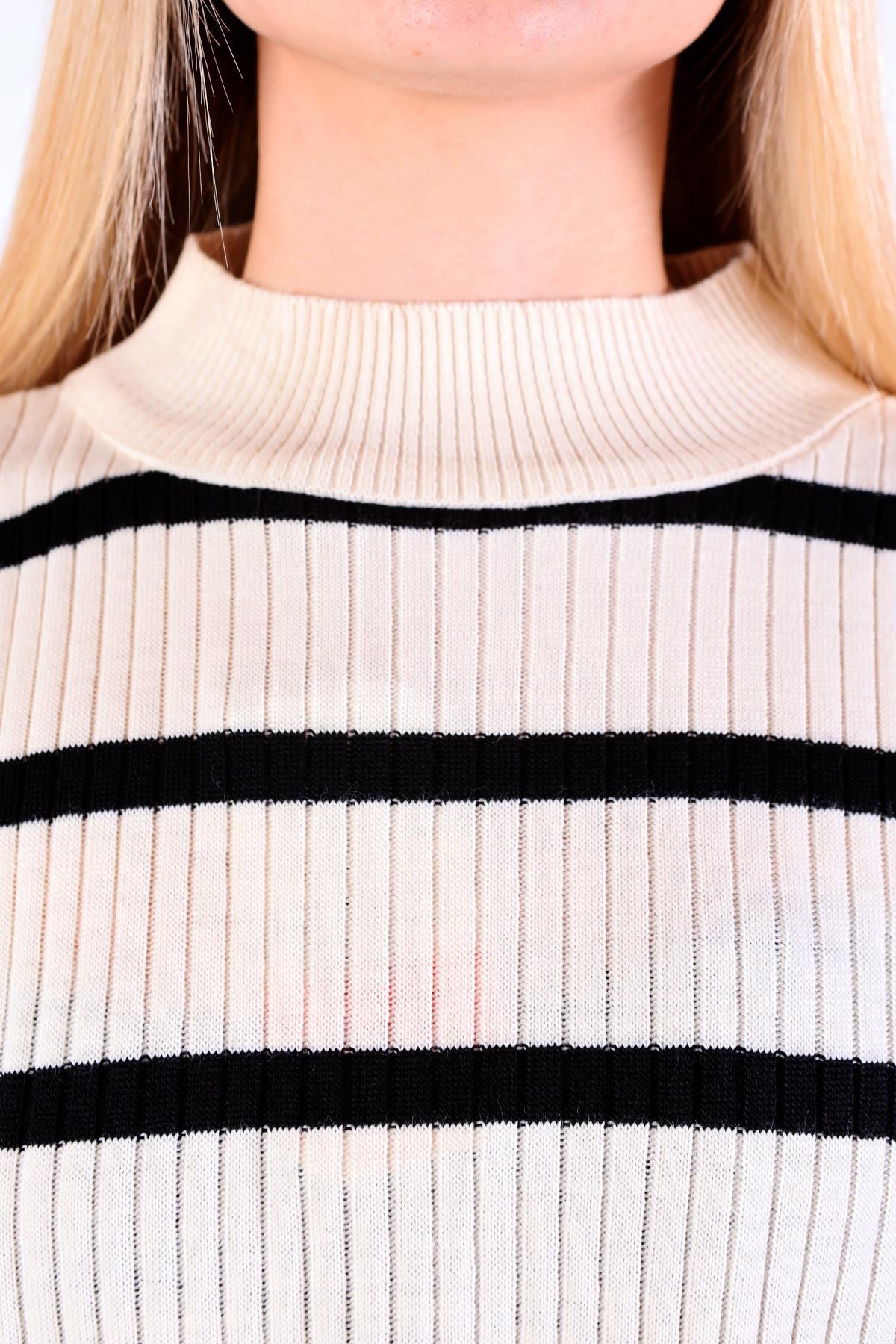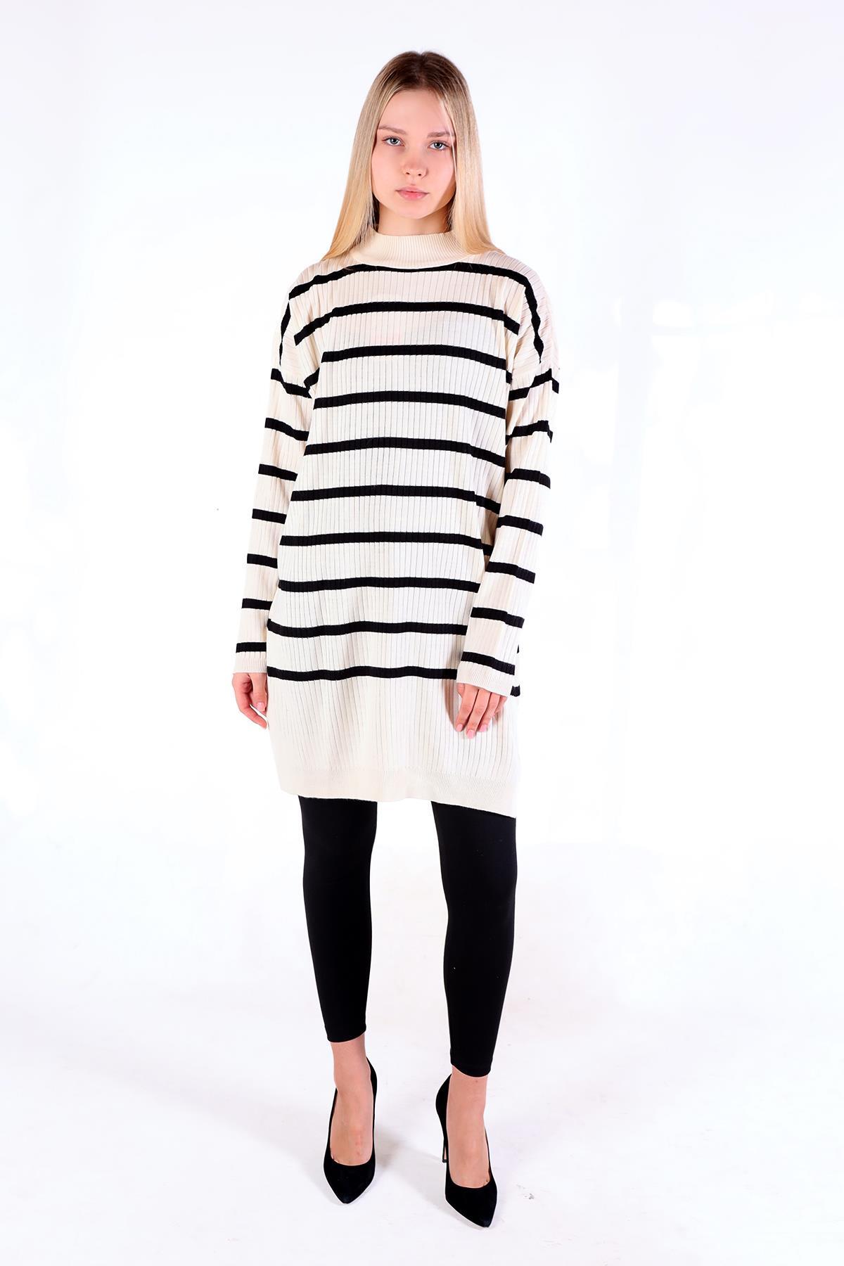 Ekru Çizgili Balıkçı Yaka Tunik 5415