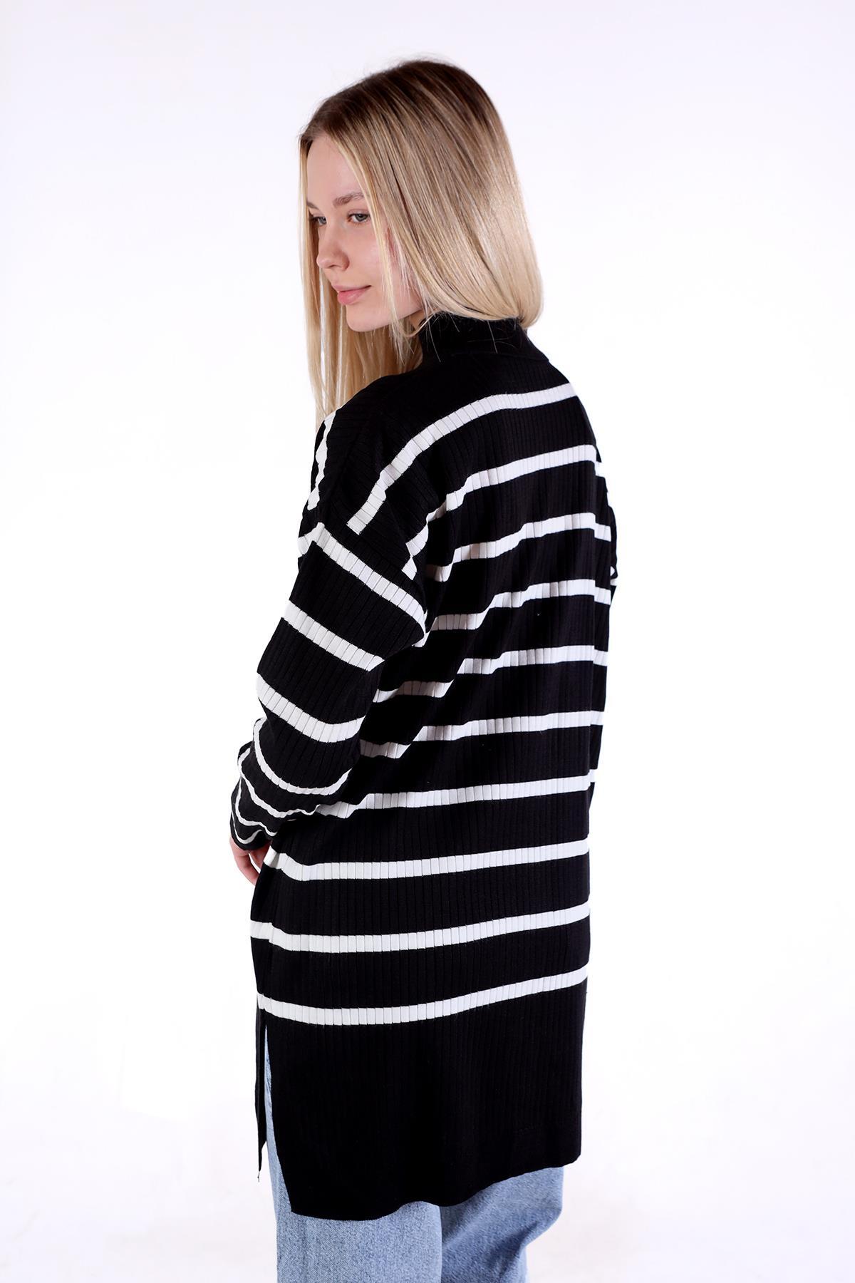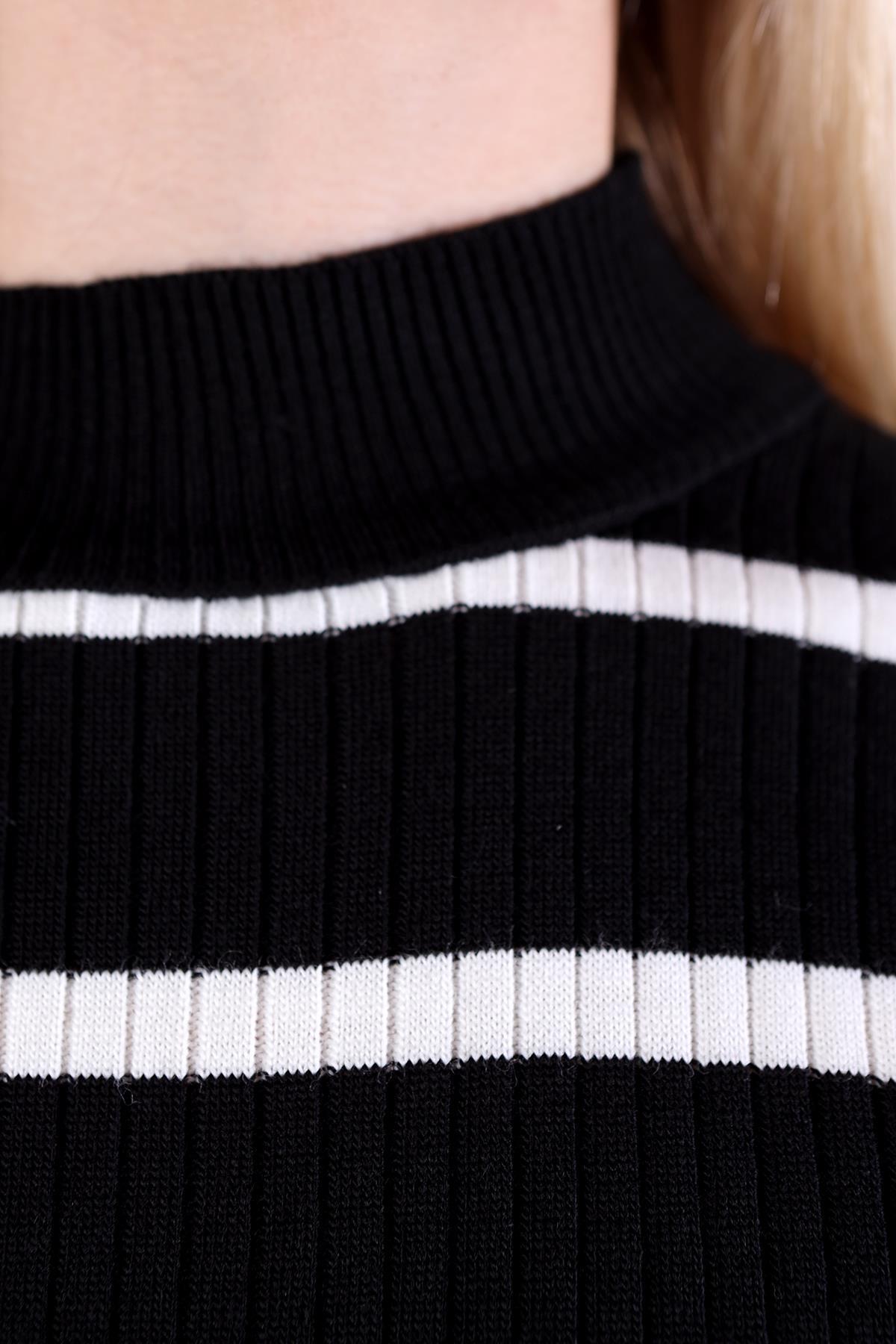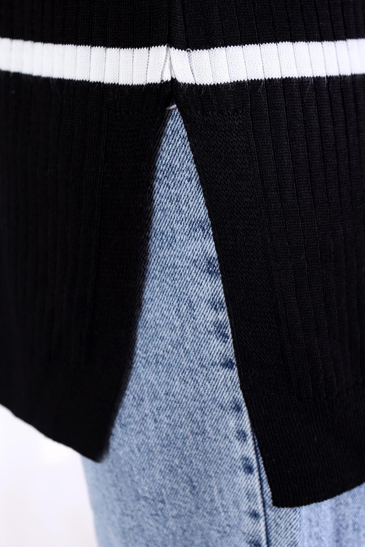 5415 Çizgili Balıkçı Yaka Tunik Siyah