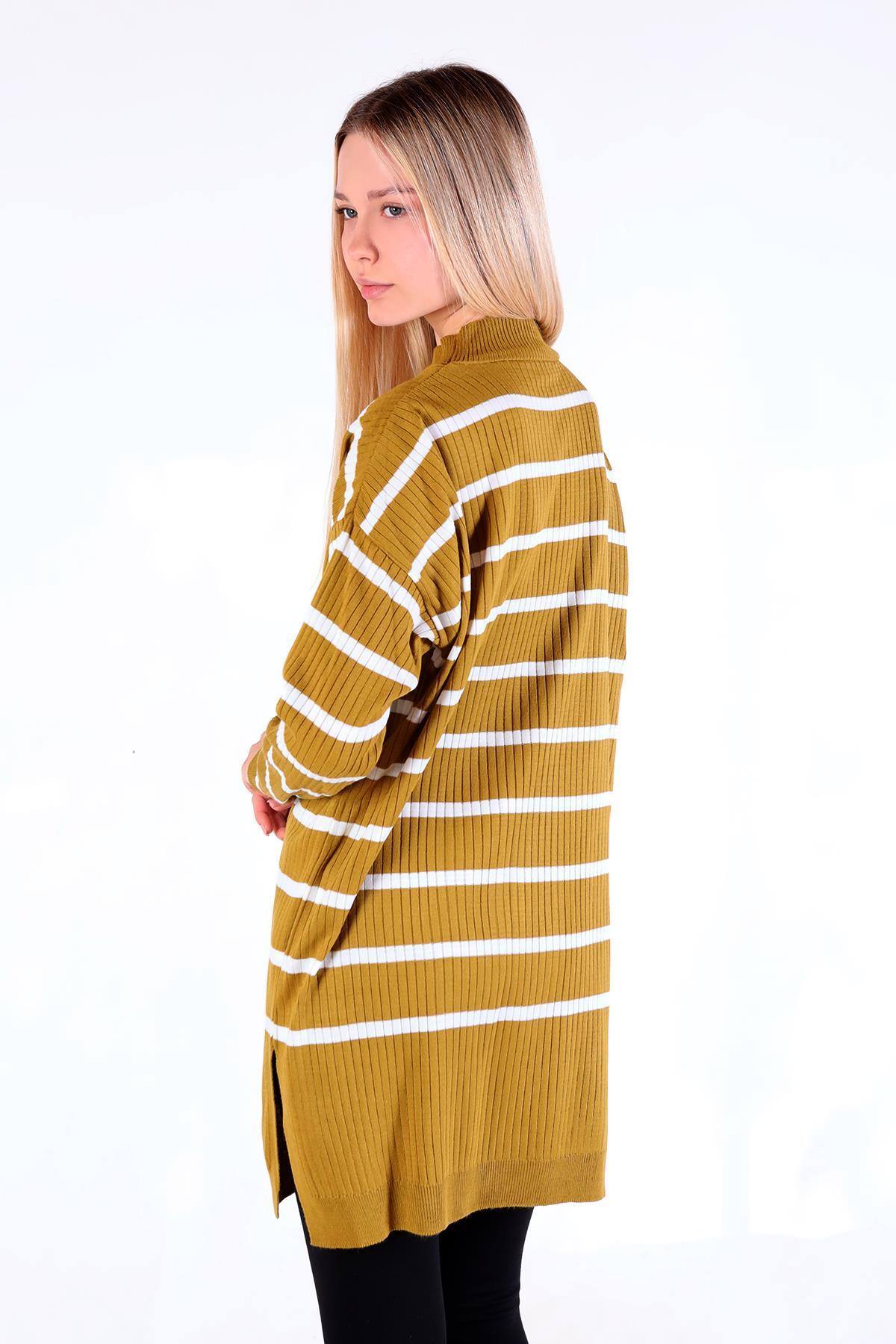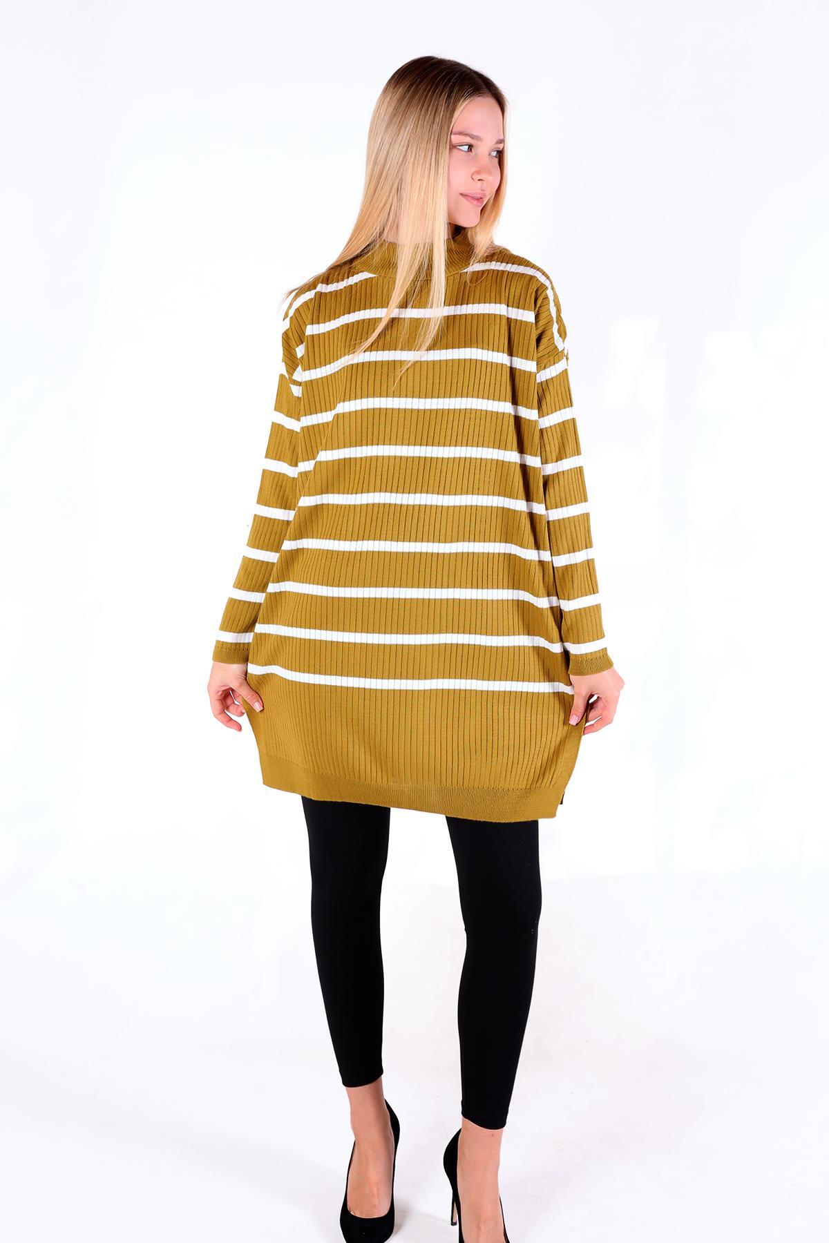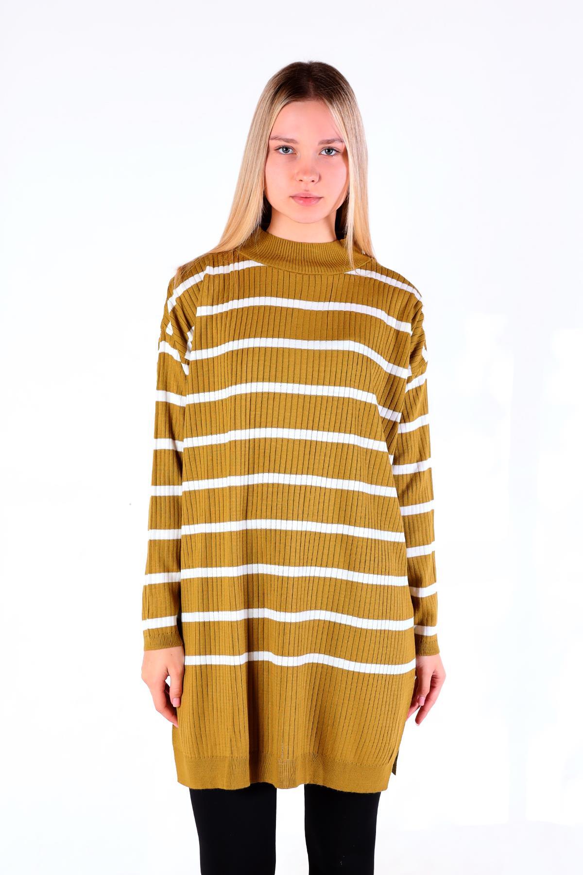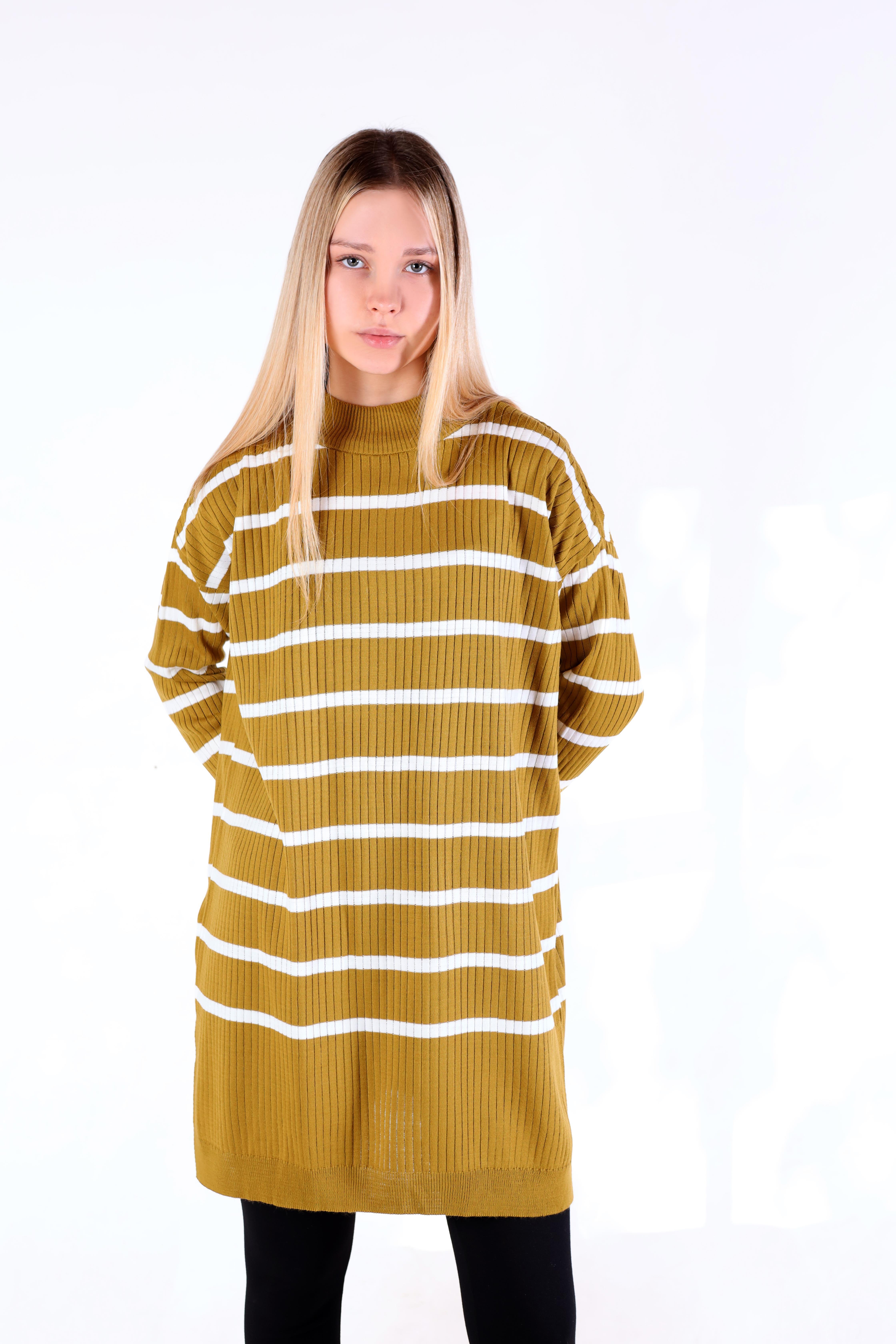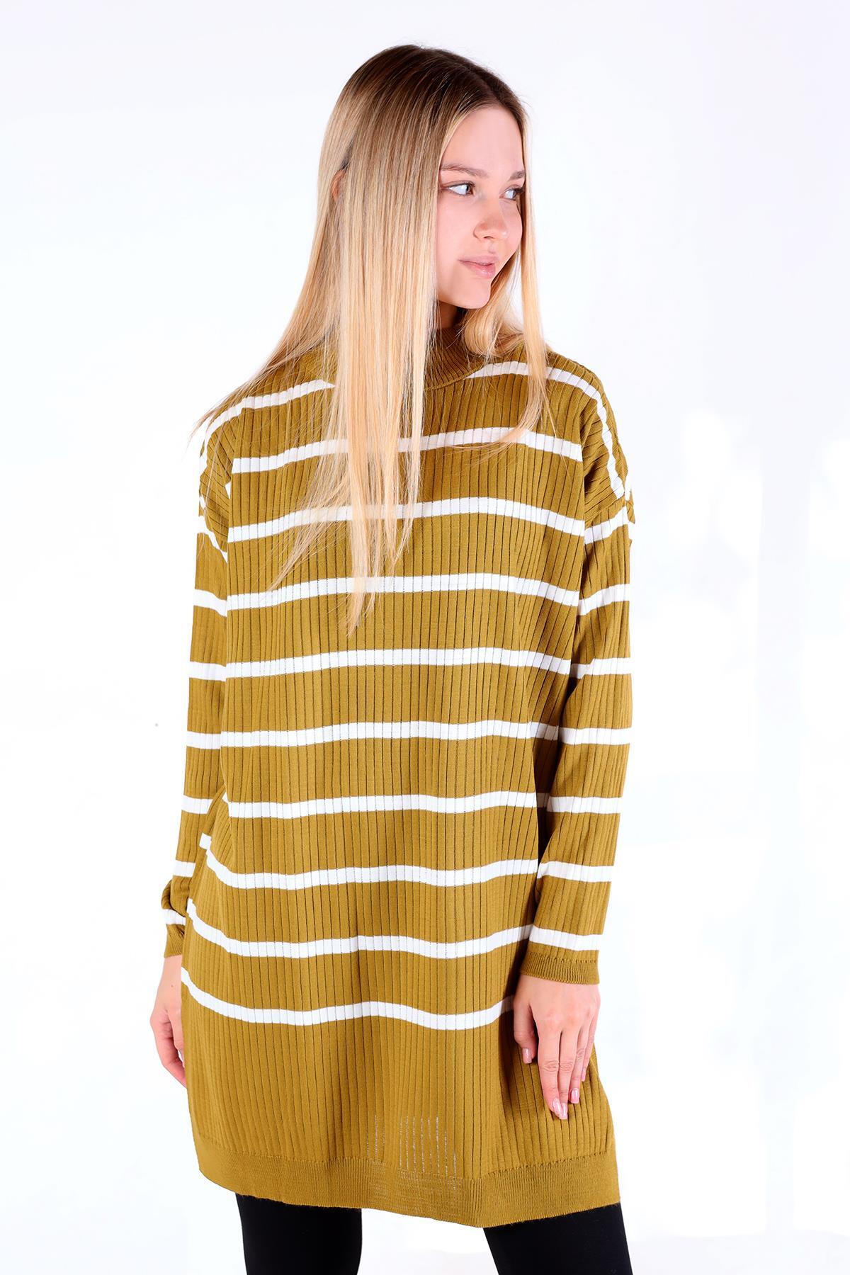 Yağ Yeşili Çizgili Balıkçı Yaka Tunik 5415