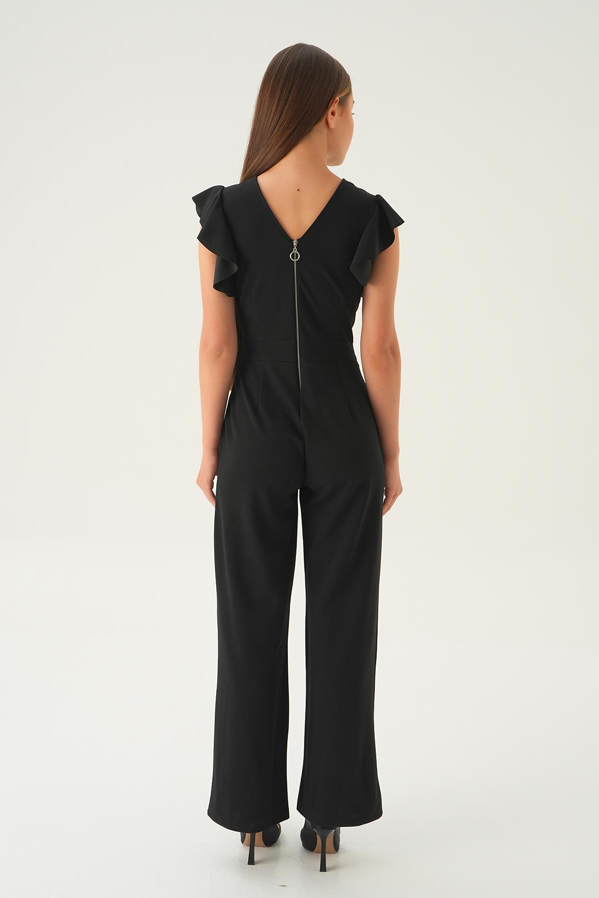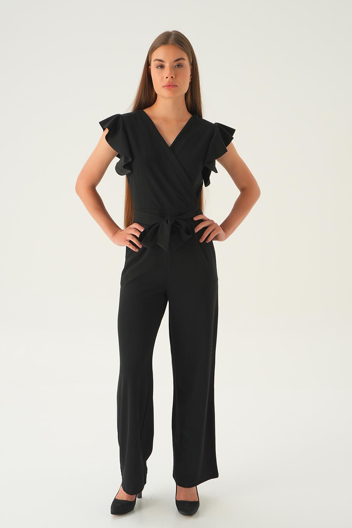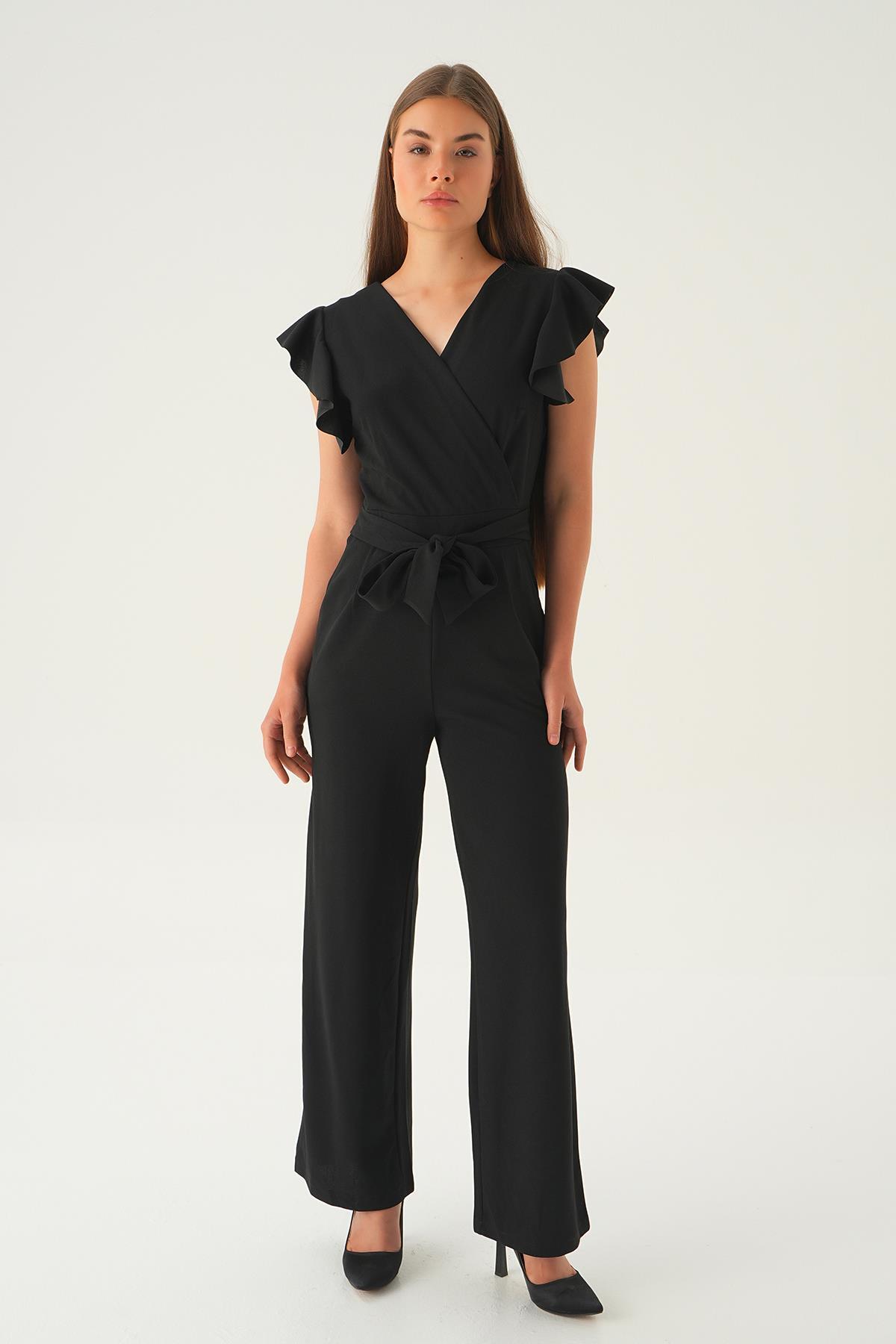 Siyah Çiçek Desen Sıfır Kol Tulum 6718A