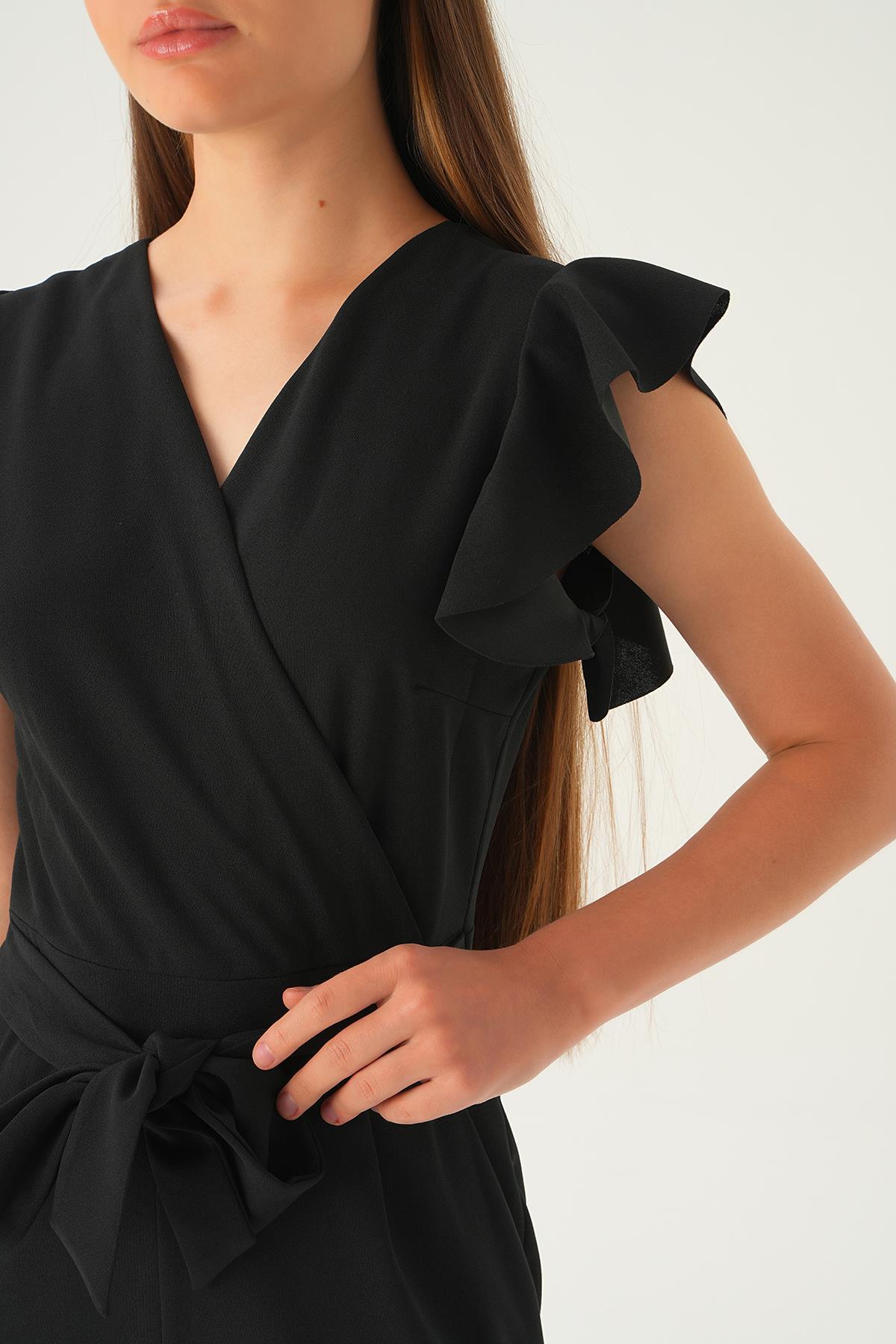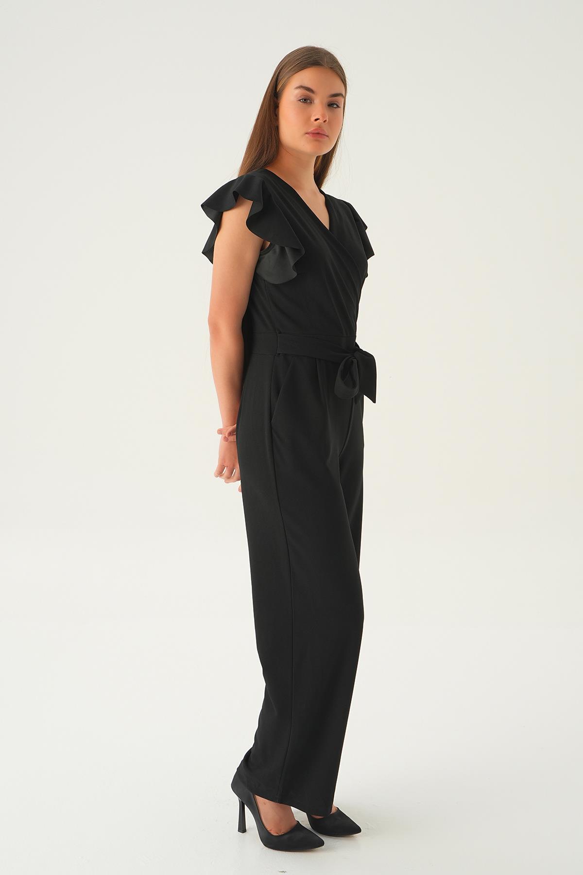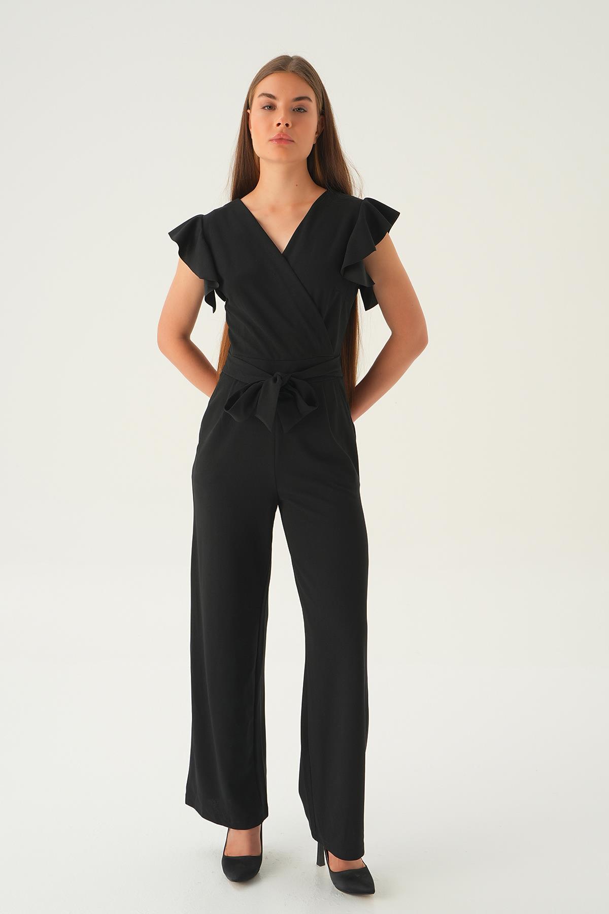Siyah Çiçek Desen Sıfır Kol Tulum 6718A