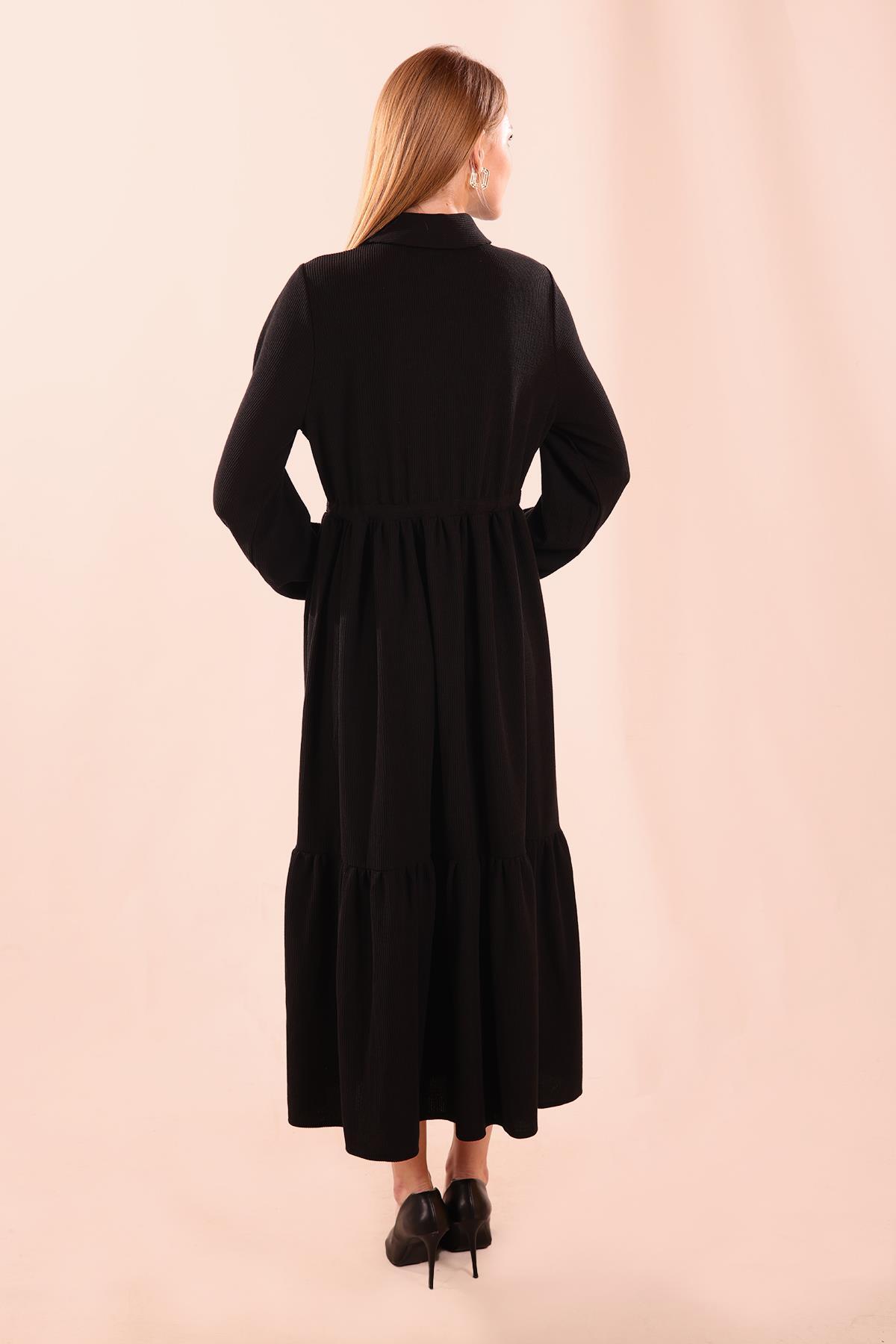 Siyah Düğmeli Kat Kat Elbise 2817