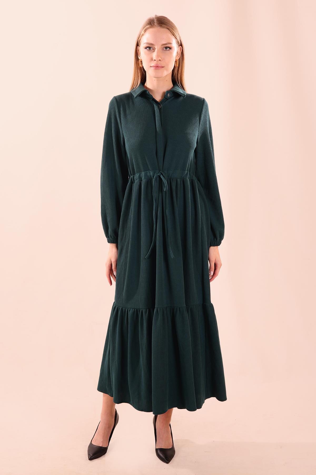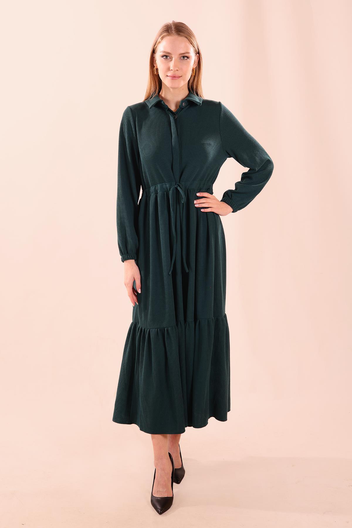 Zümrüt Bel Bağlamalı Düğmeli Elbise 5464