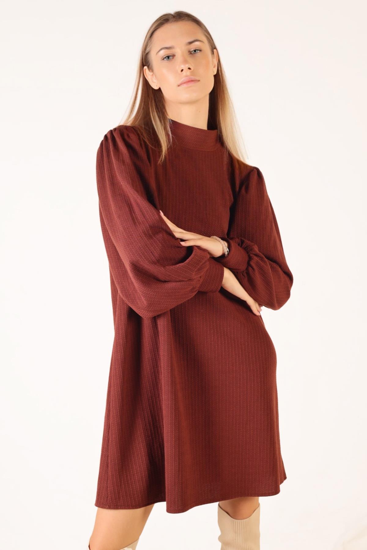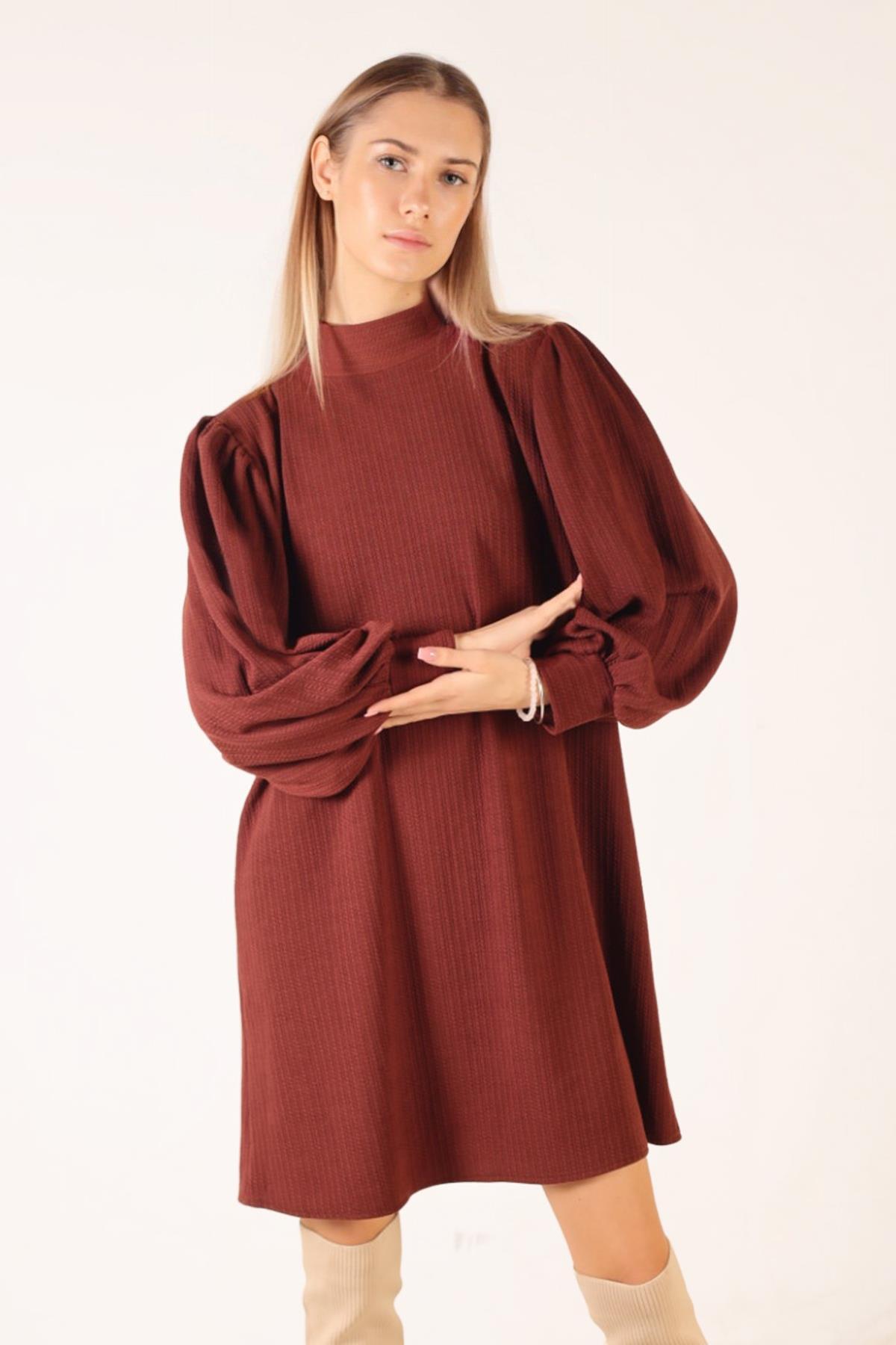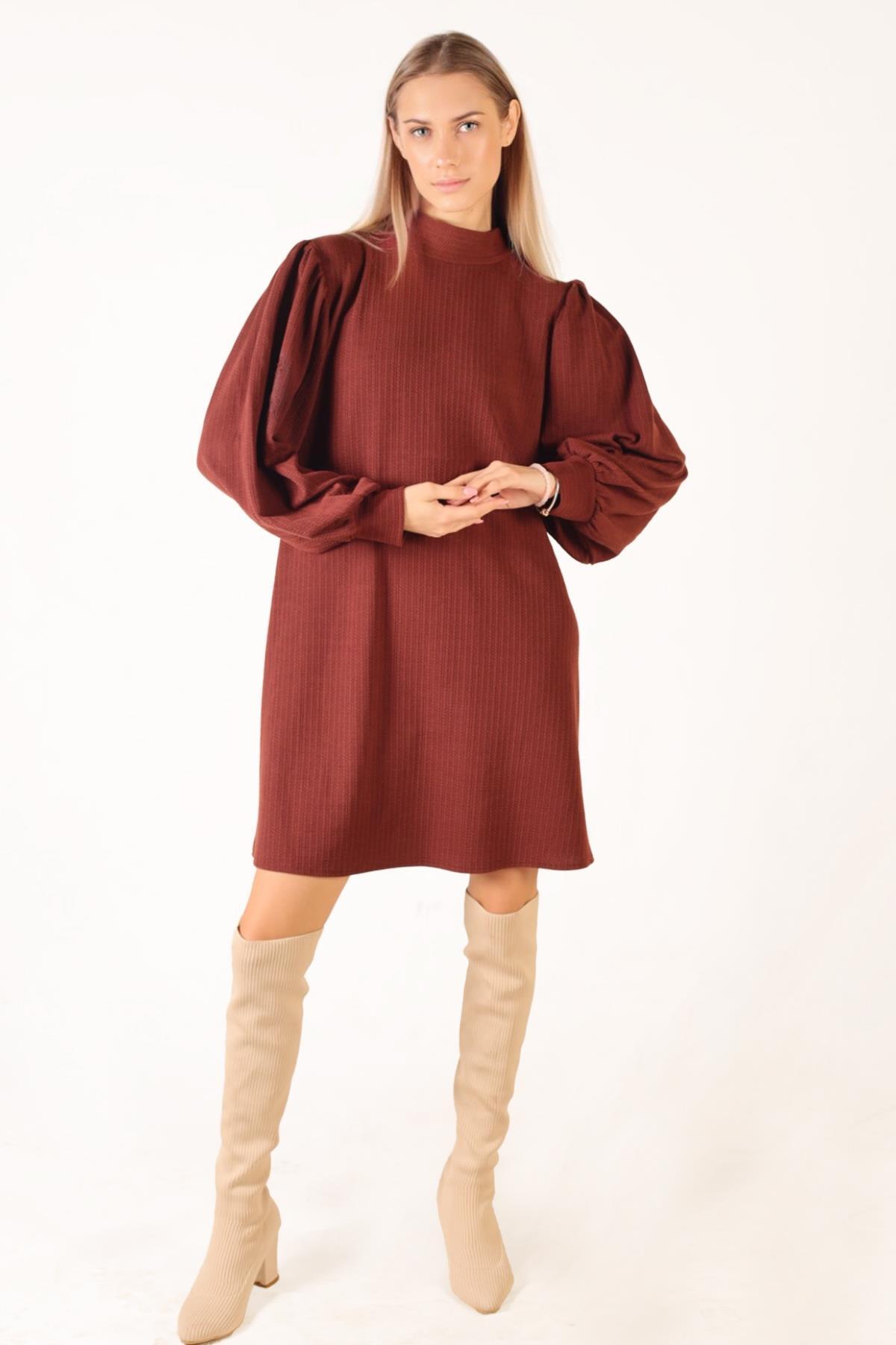 Kahve Kol Büzgü Detay Kemerli Tunik 5468