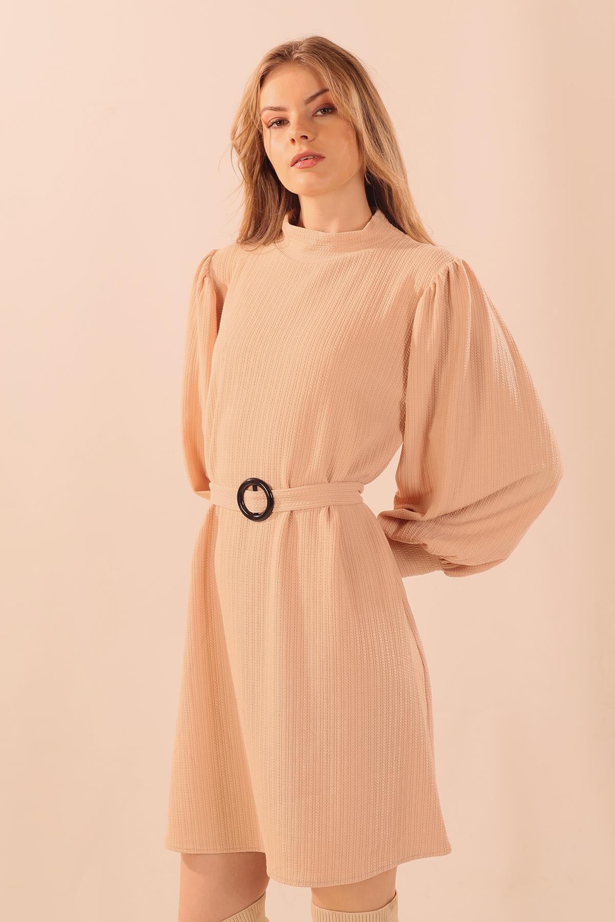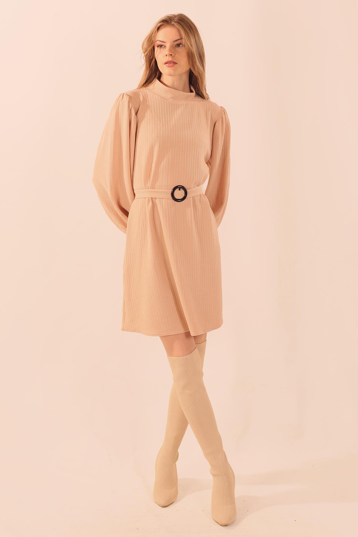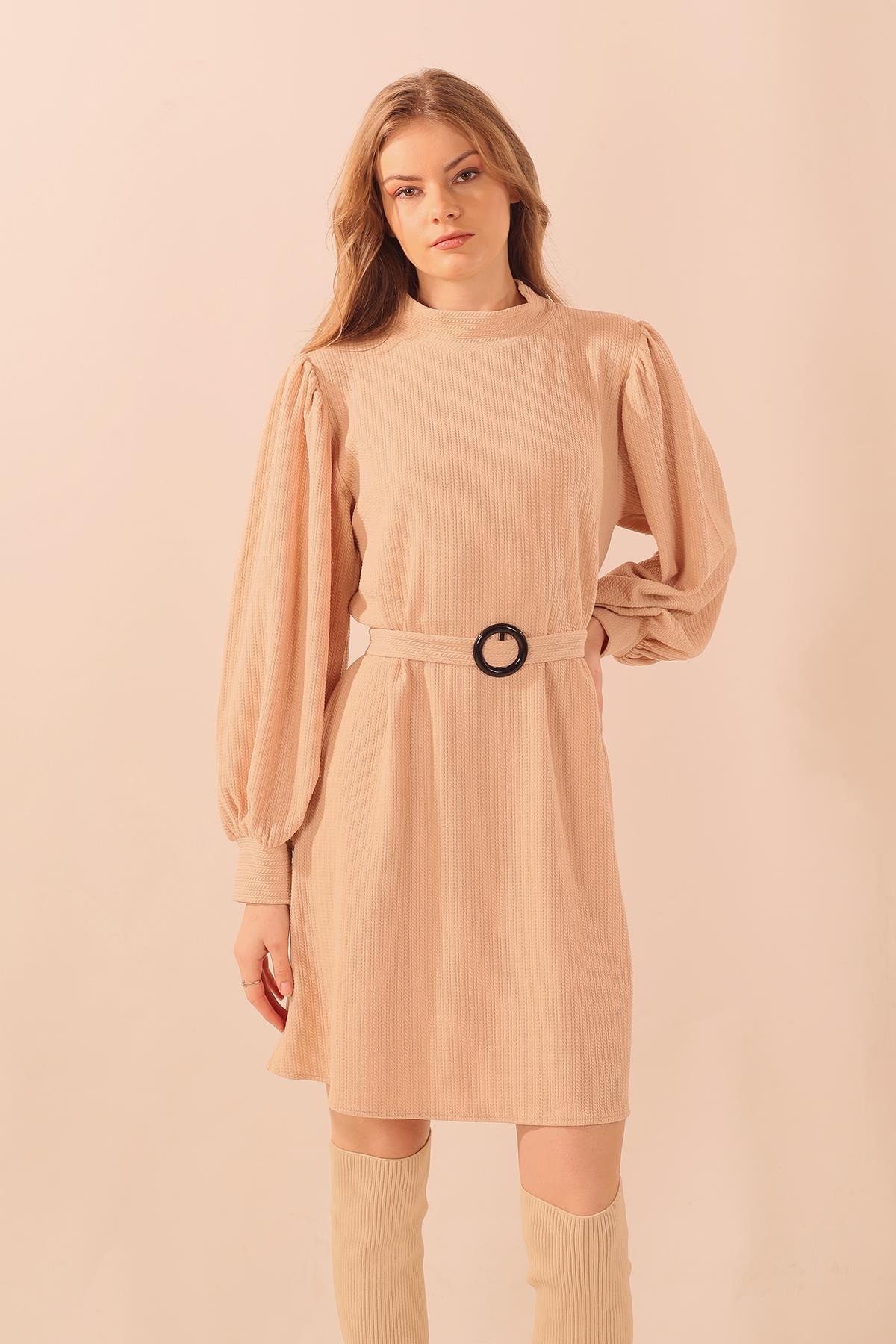 Taş Kol Büzgü Detay Kemerli Tunik 5468
