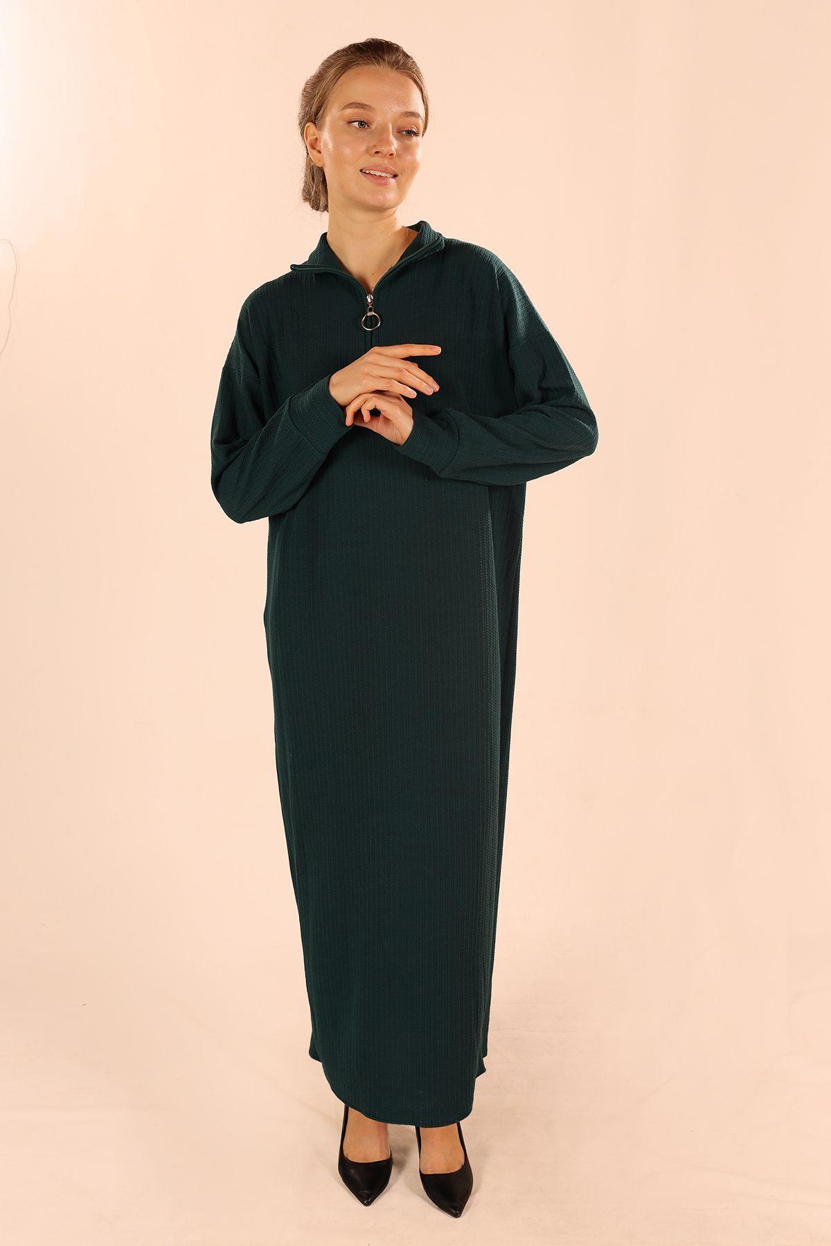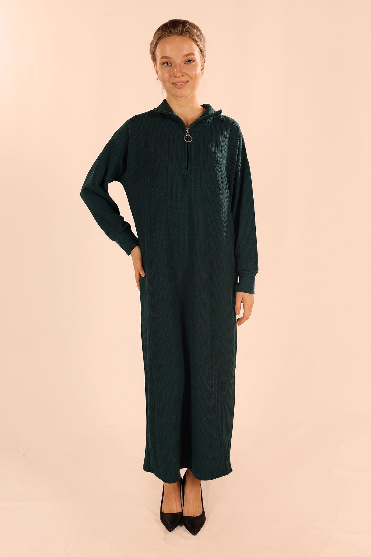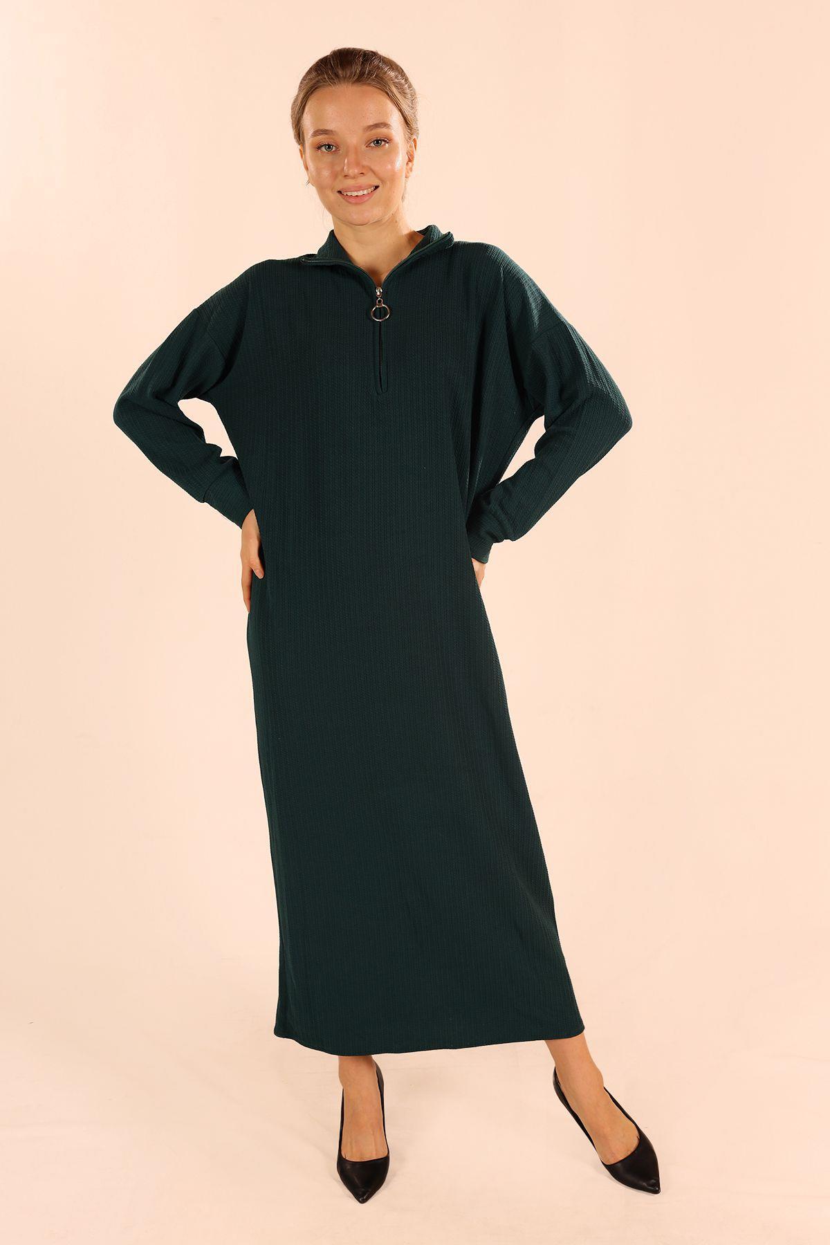 Zümrüt Dik Yaka Fermuarlı Elbise 5470