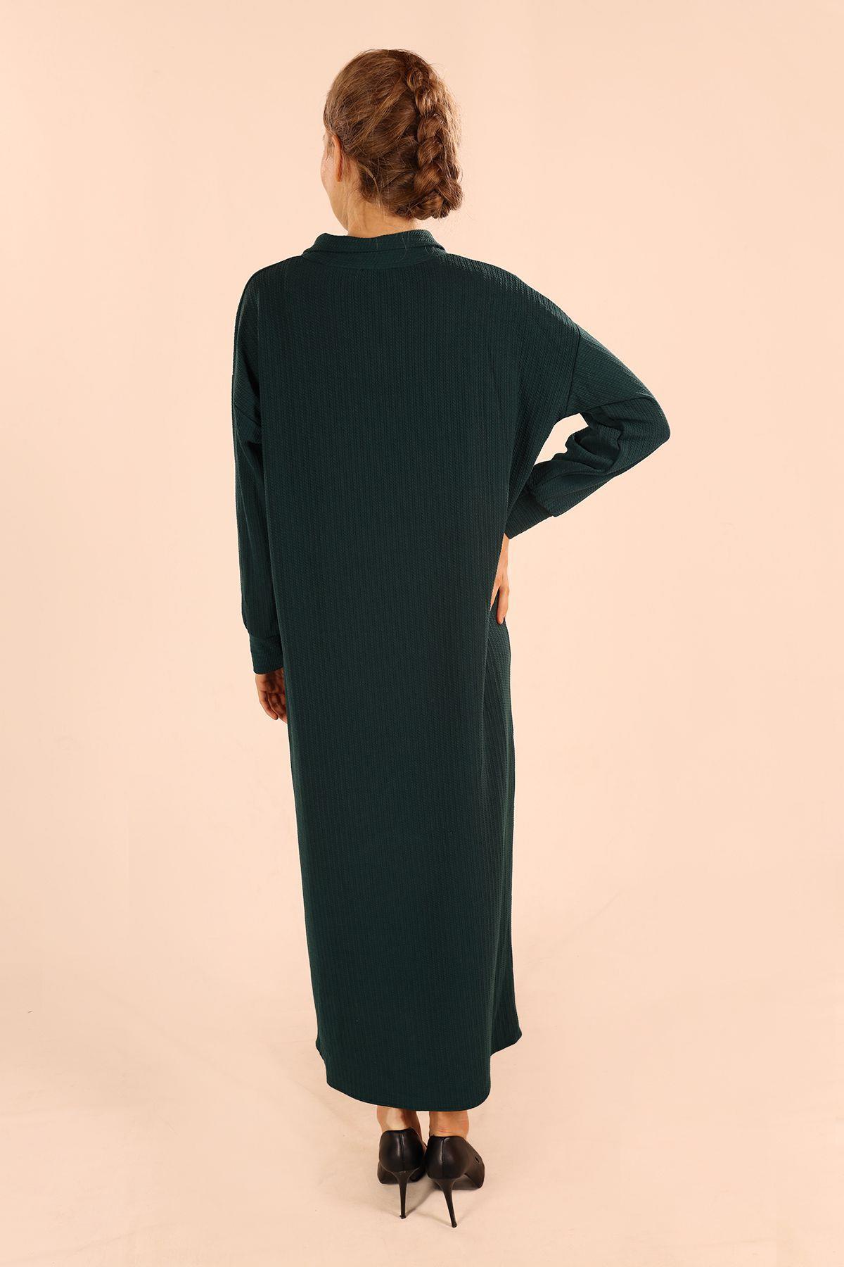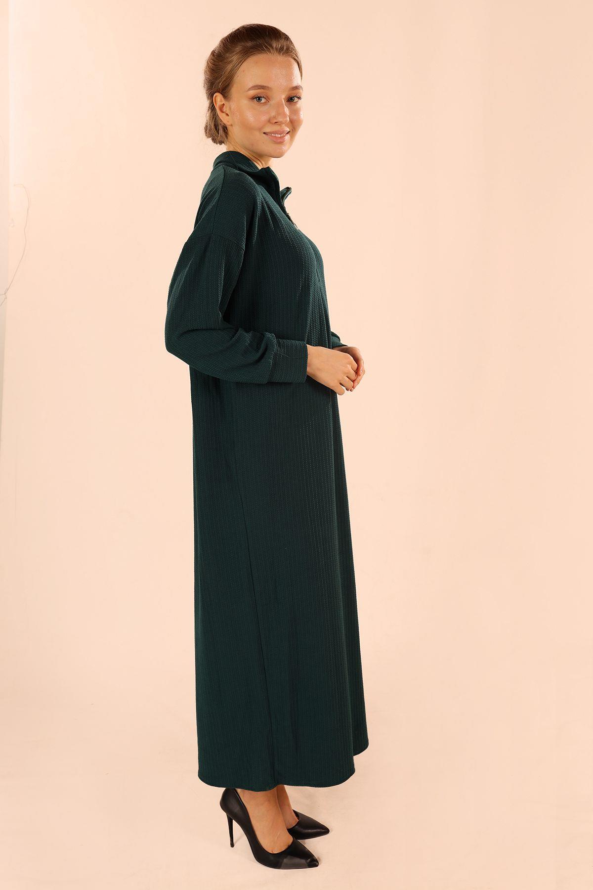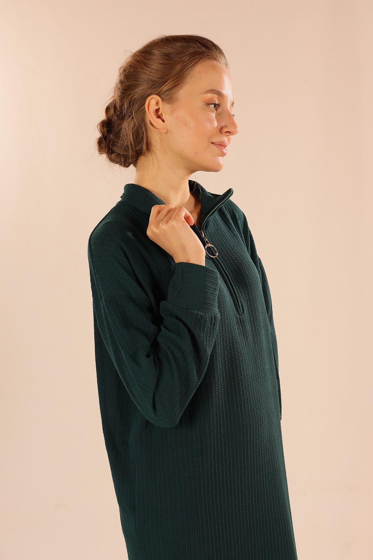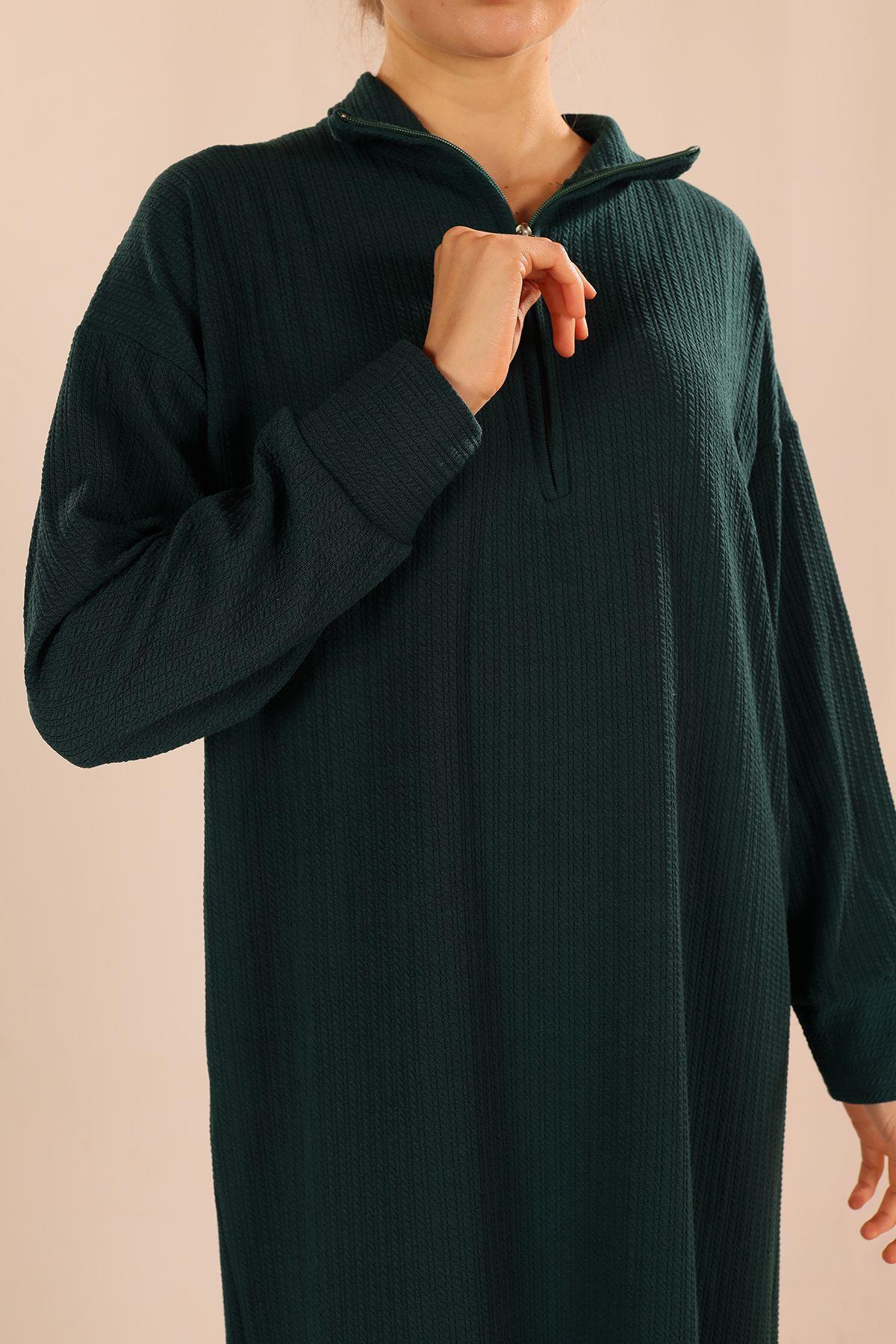 Zümrüt Dik Yaka Fermuarlı Elbise 5470