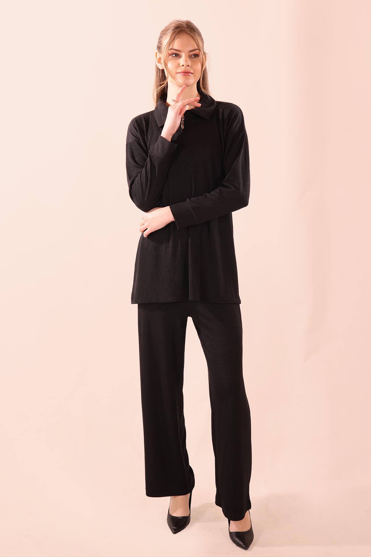 Siyah Fermuarlı Tunik Pantolon Takım 5471