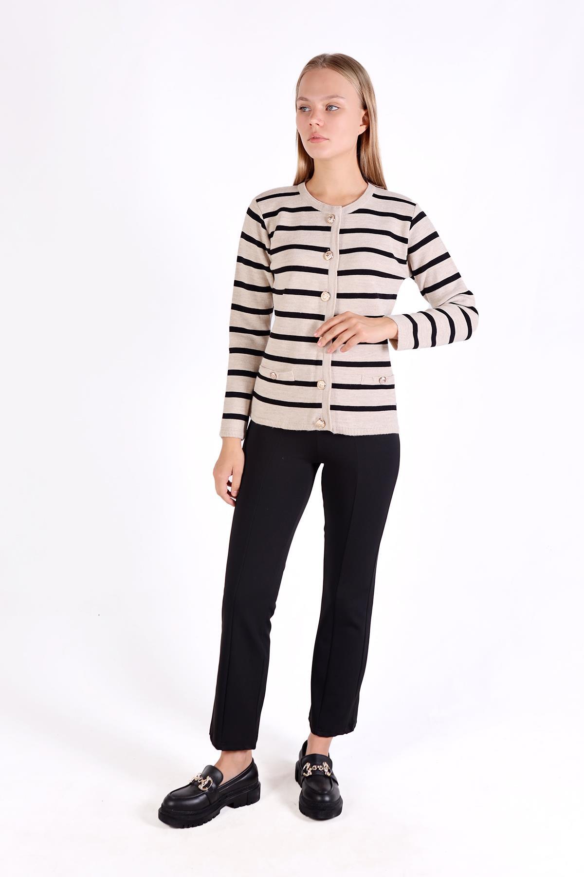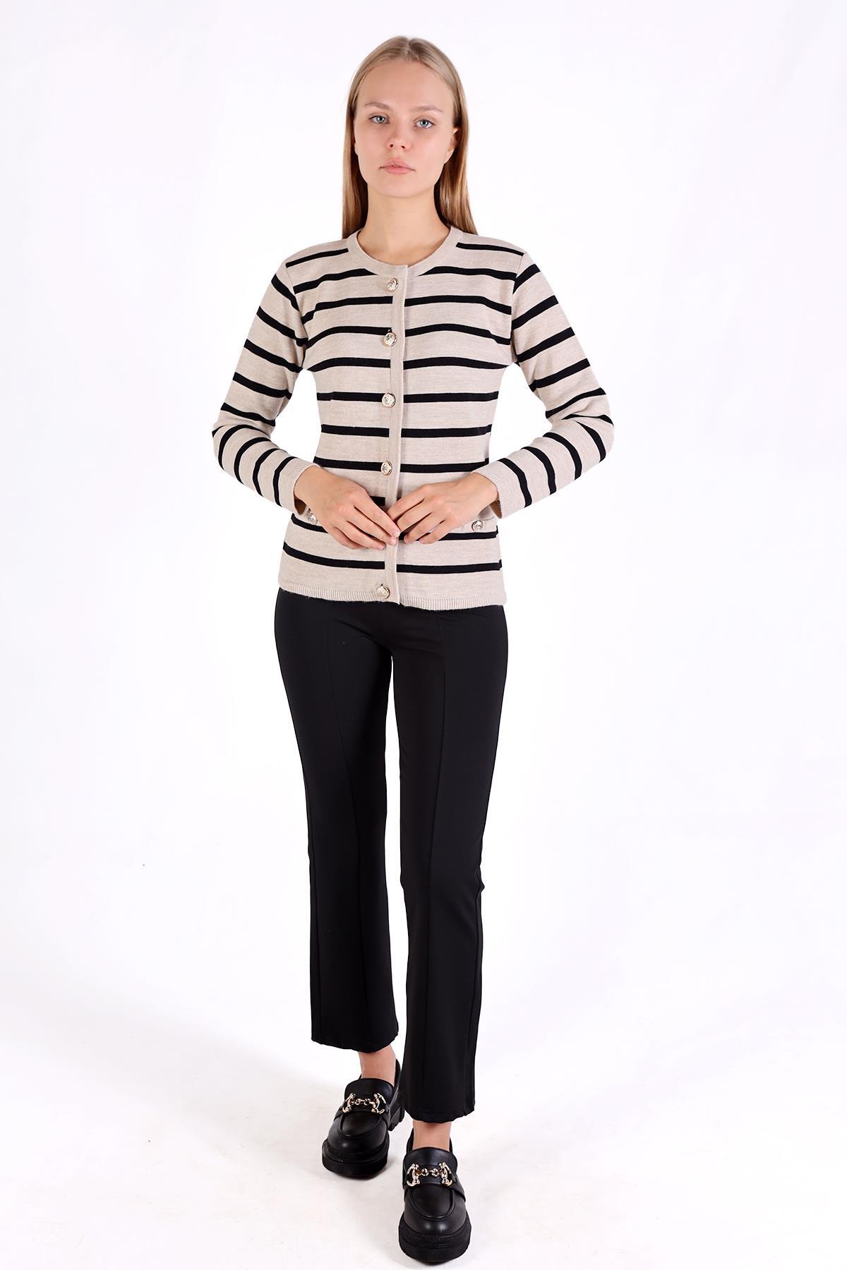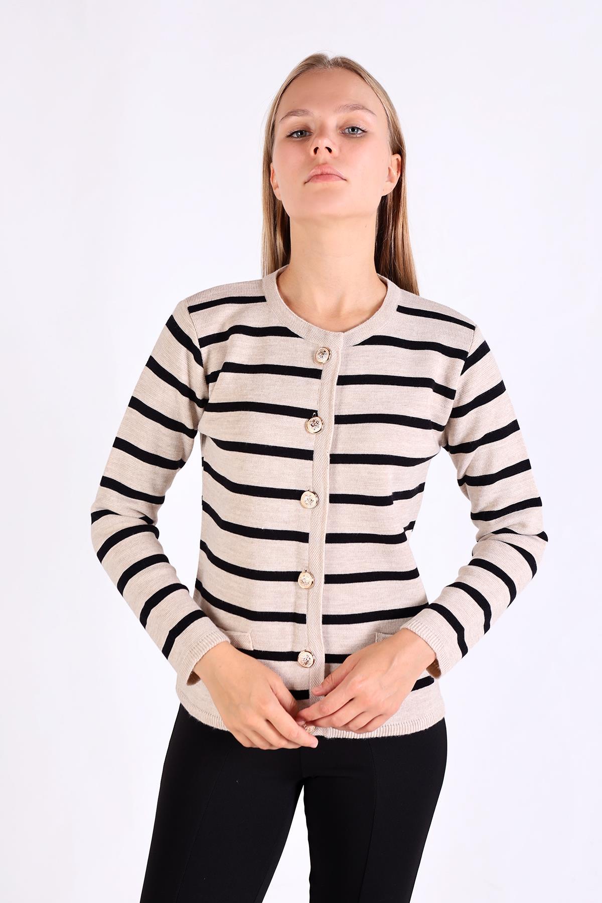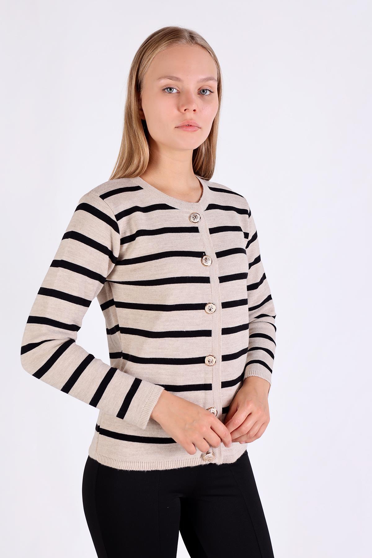Bej Çizgili Kısa Düğme Detay Hırka 557
