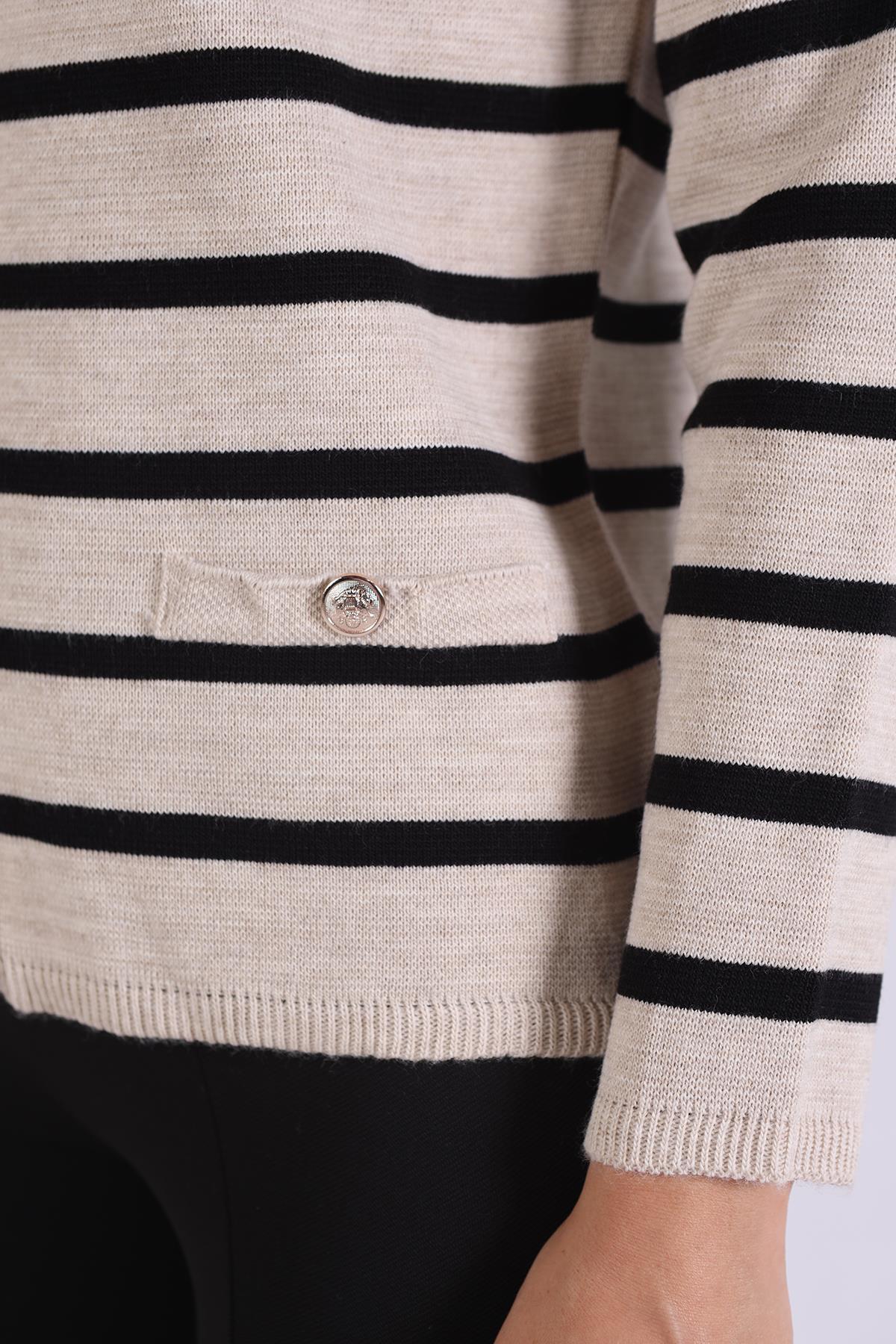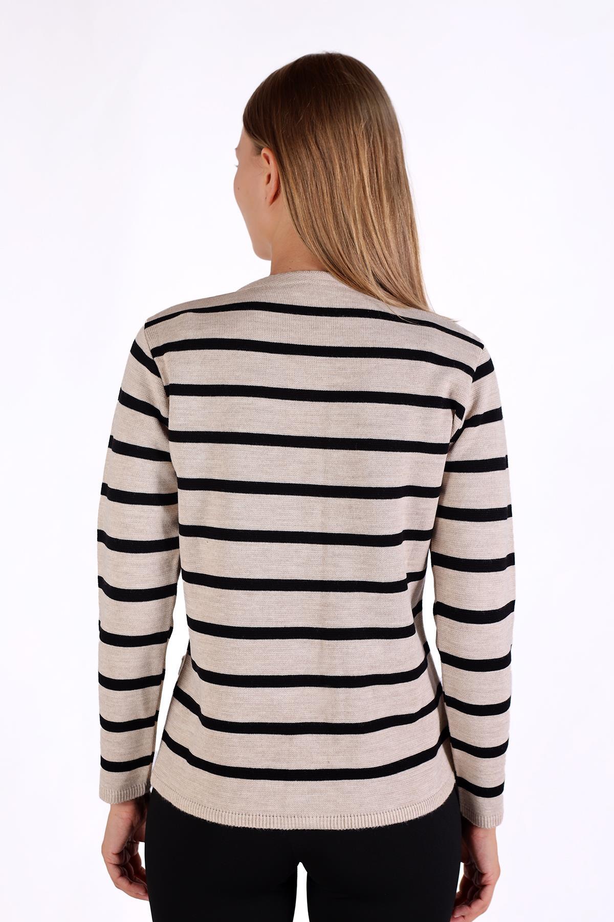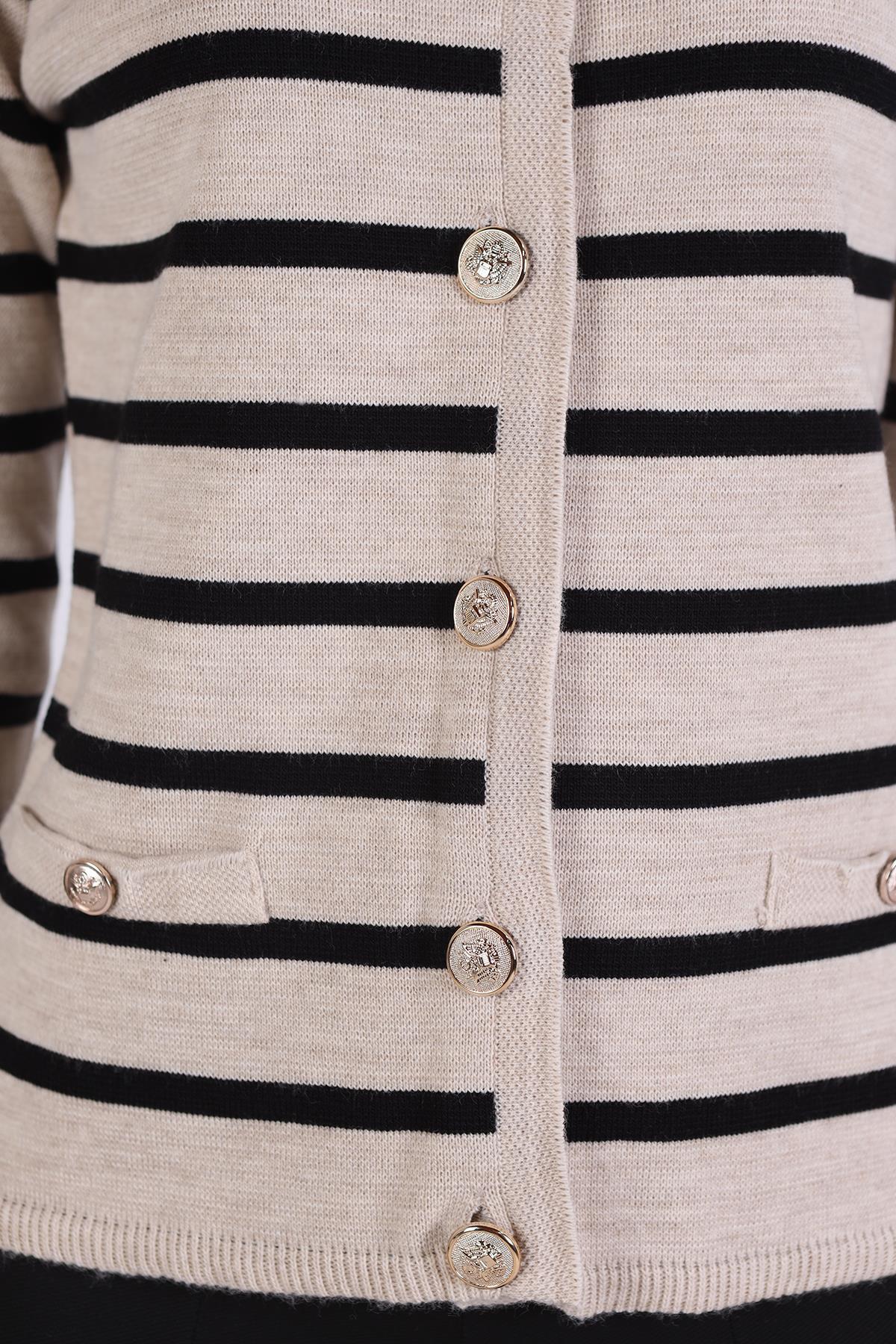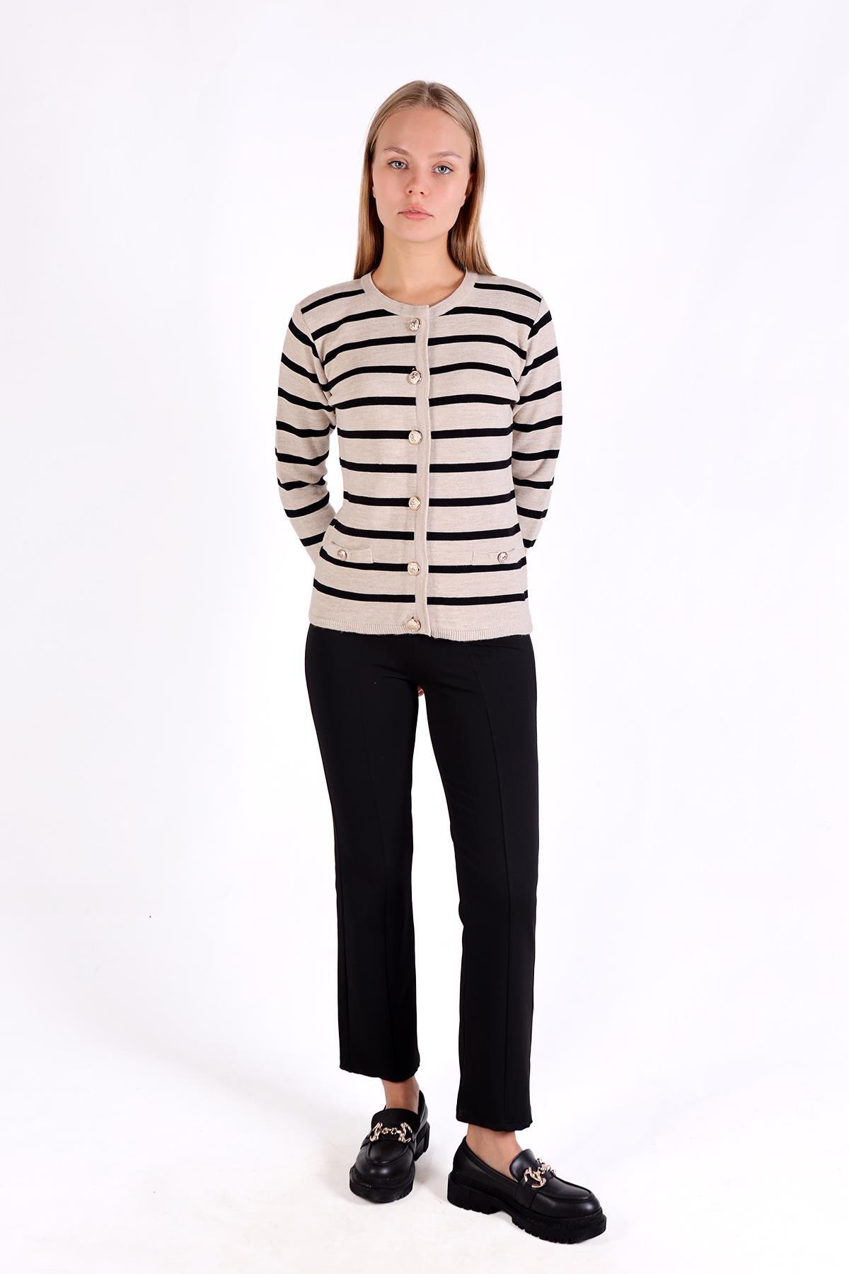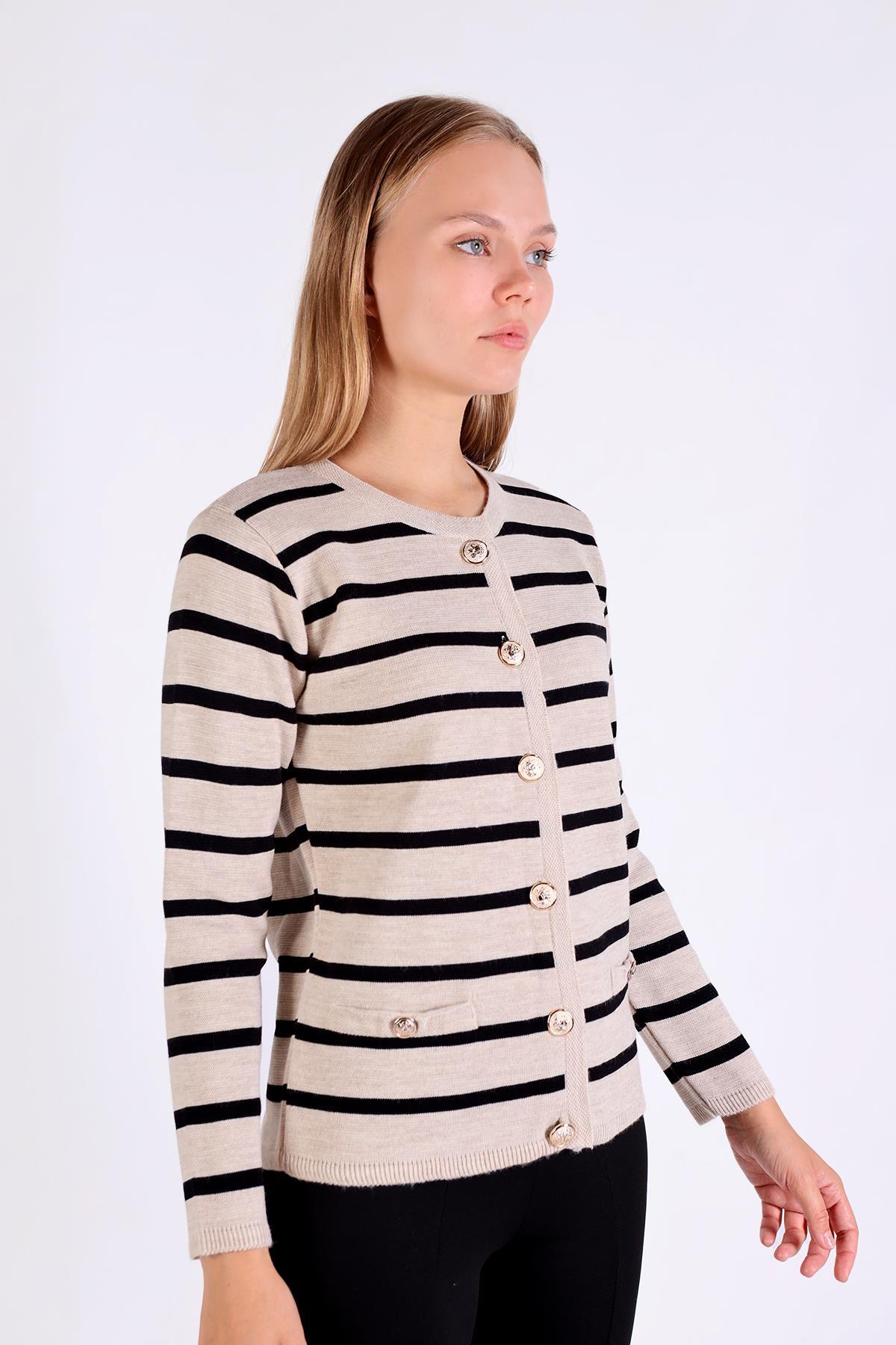 Bej Çizgili Kısa Düğme Detay Hırka 557