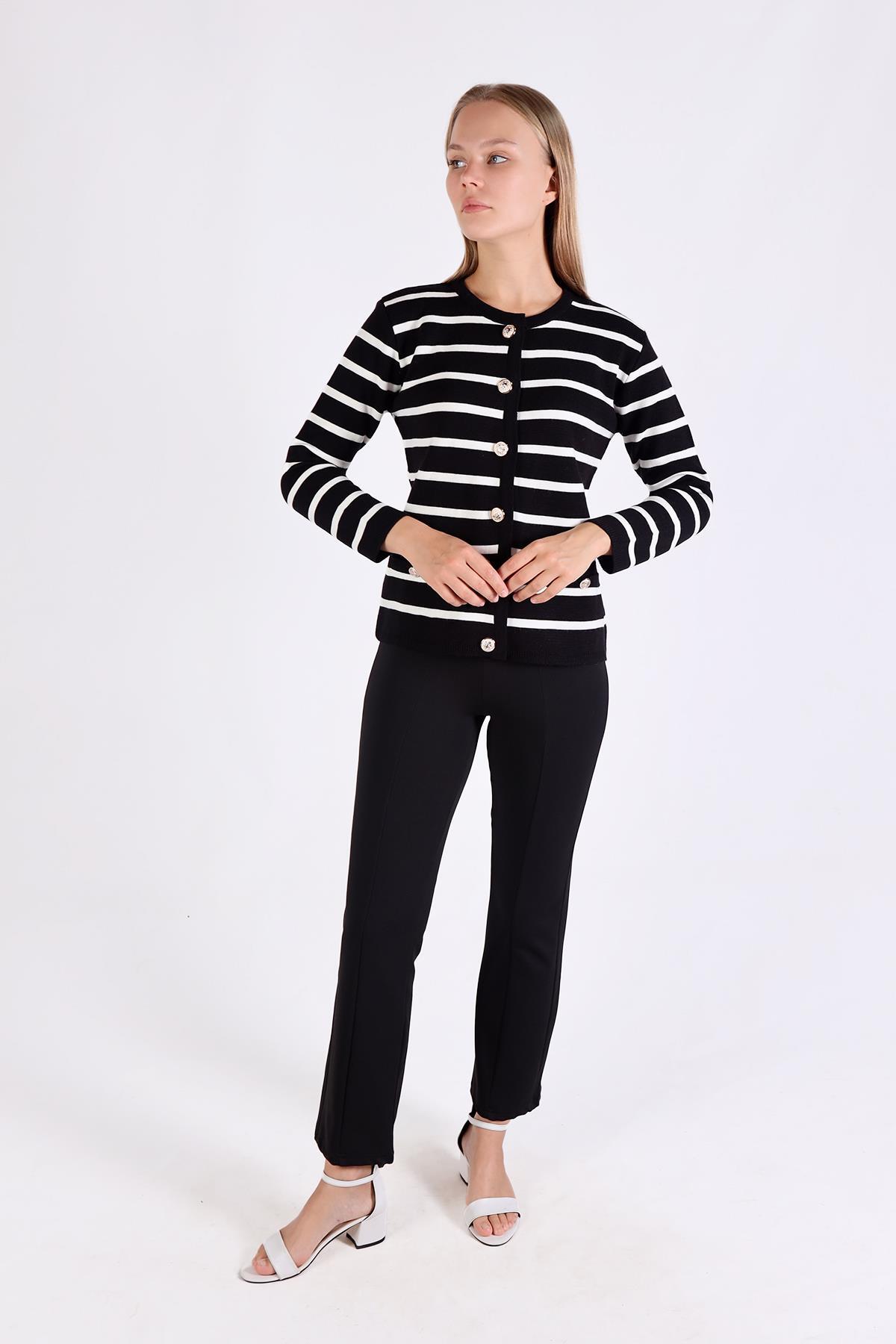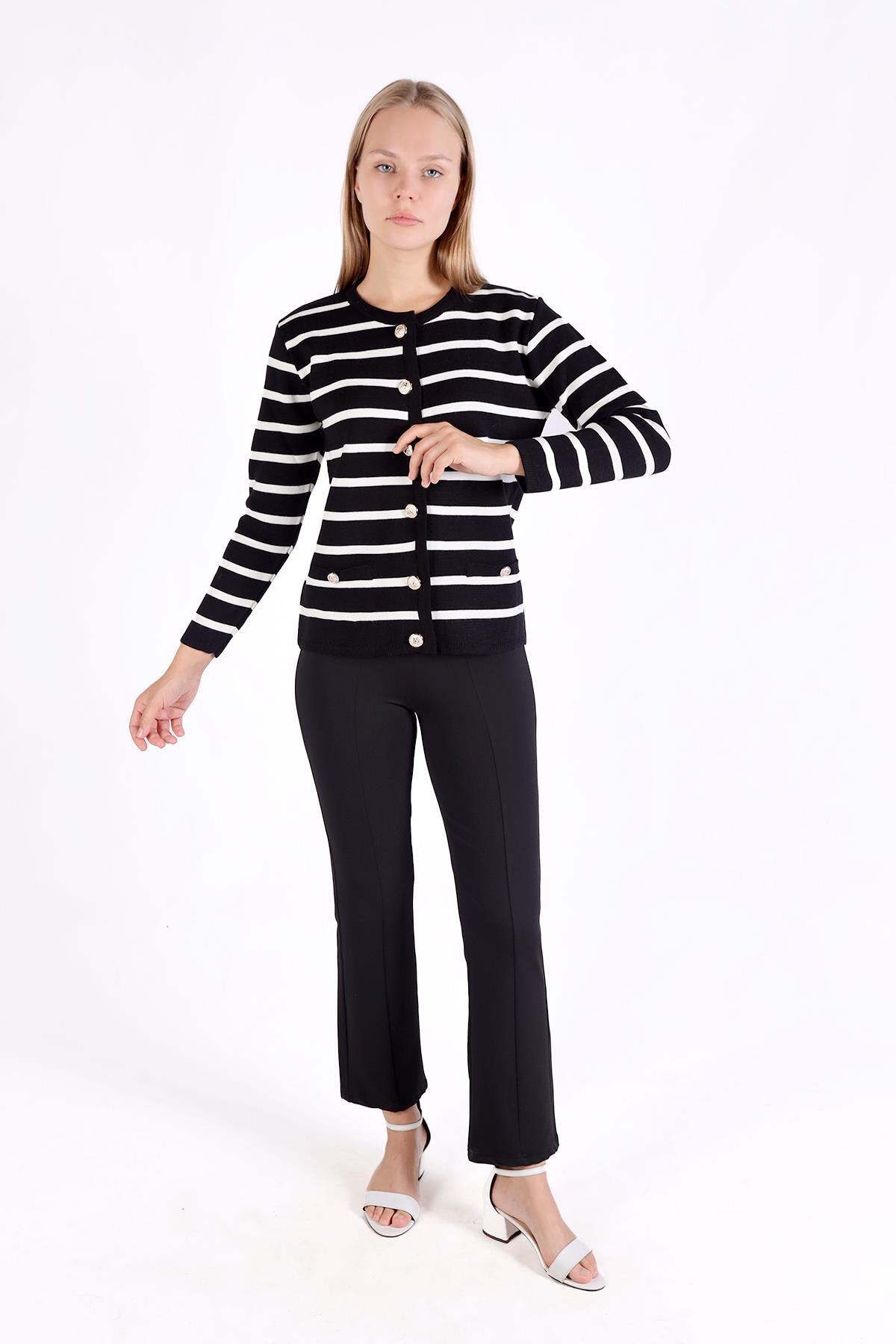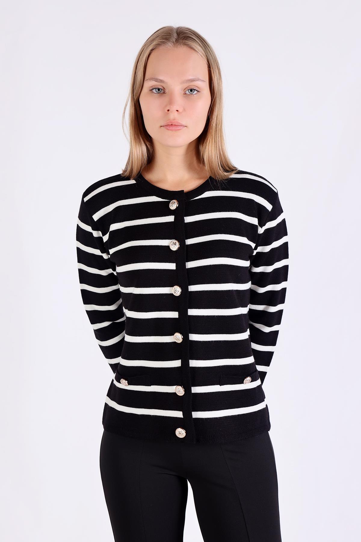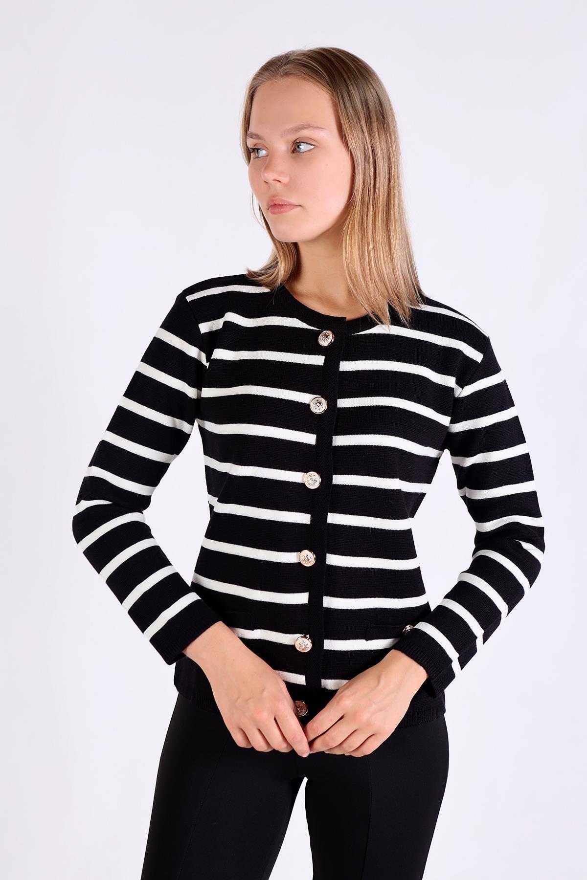 Siyah Çizgili Kısa Düğme Detay Hırka 557
