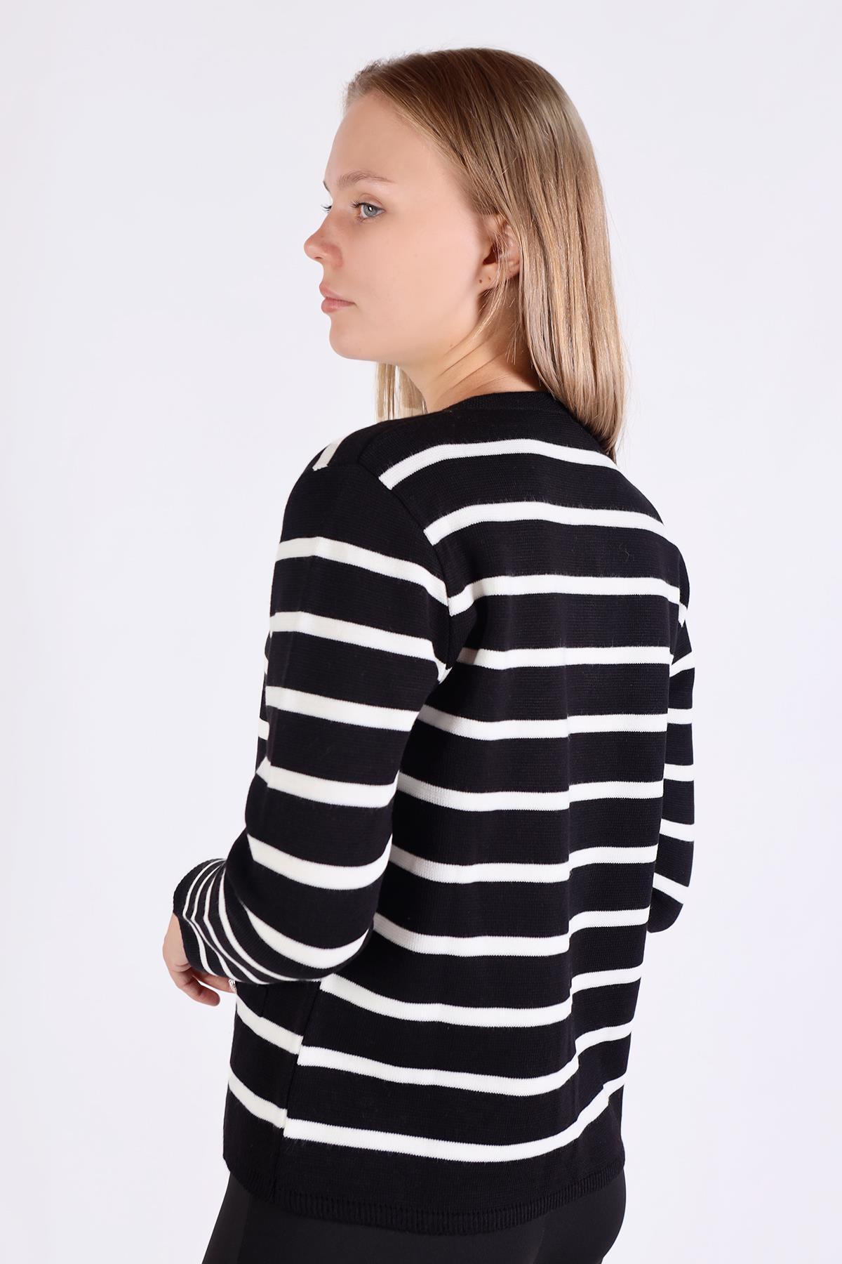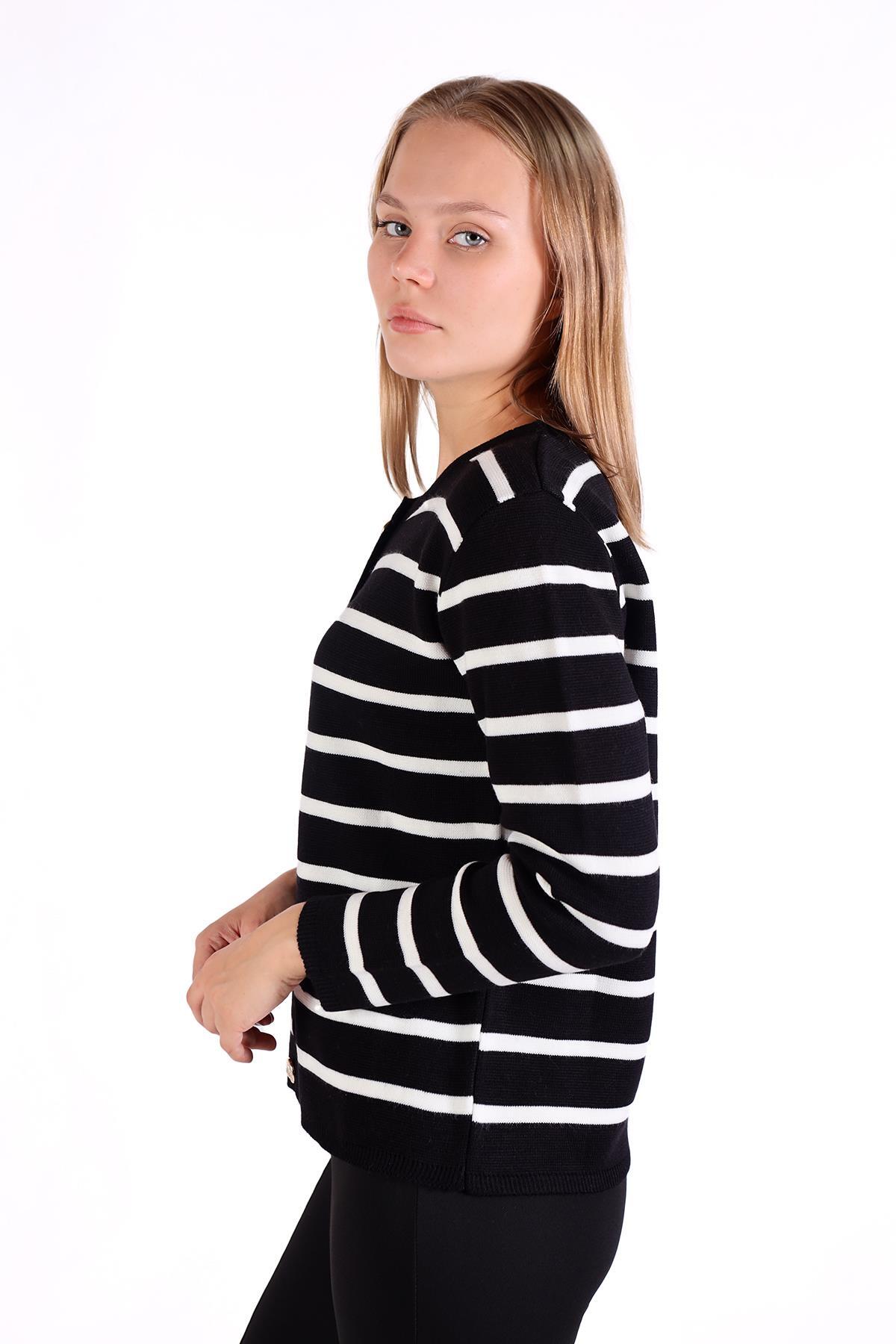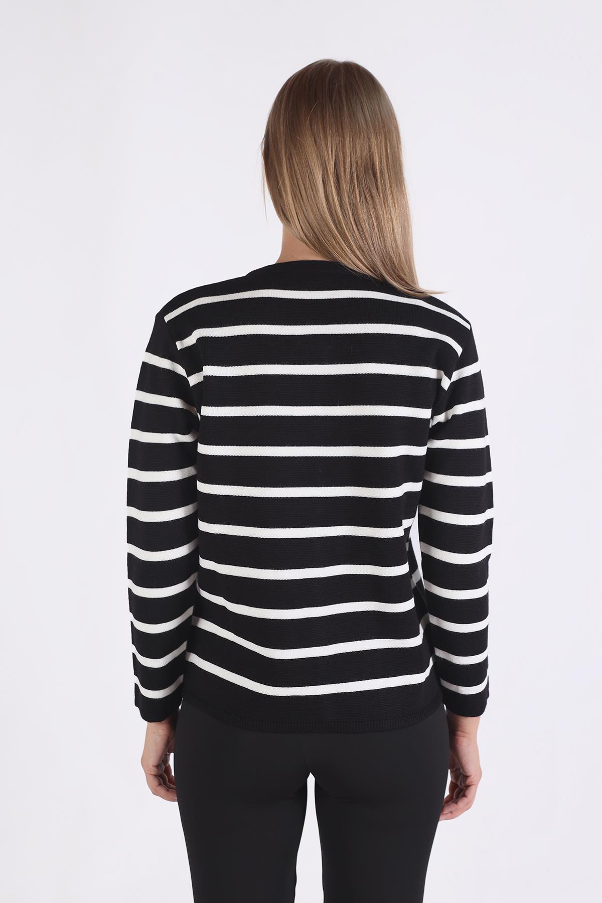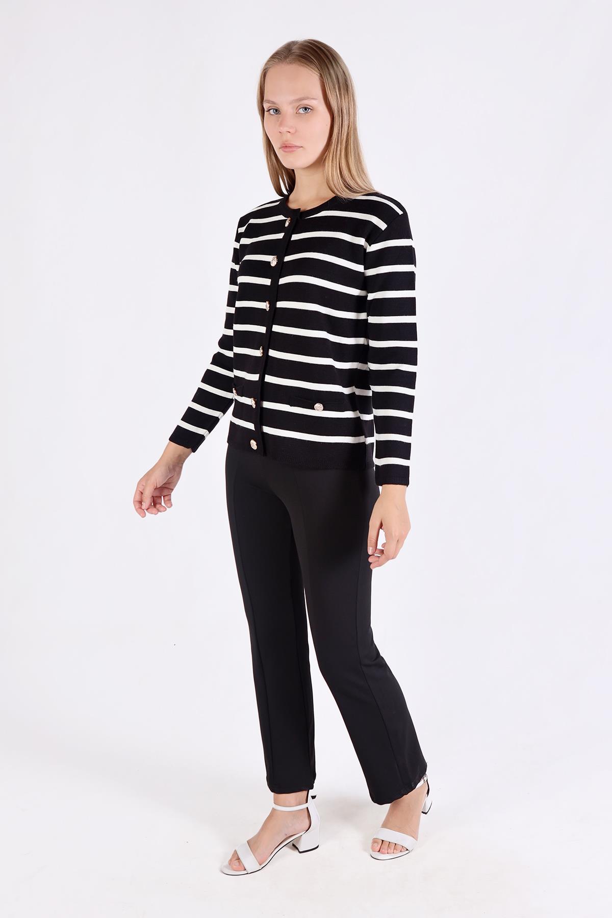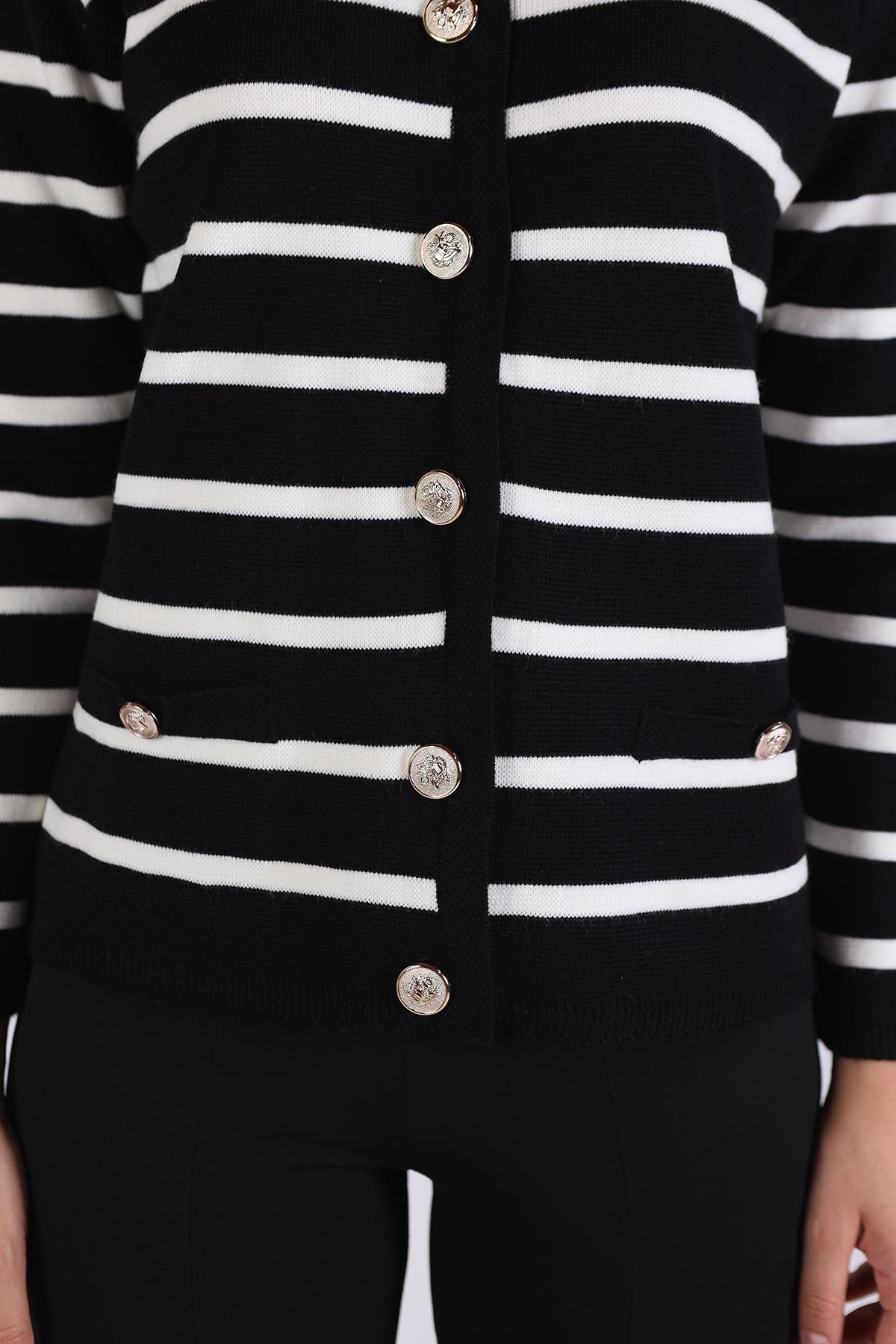 Siyah Çizgili Kısa Düğme Detay Hırka 557