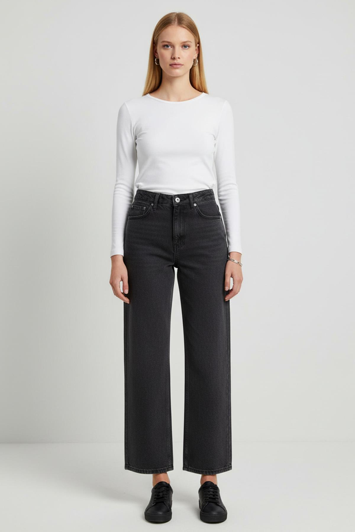 Siyah Geniş Paça Jean 573
