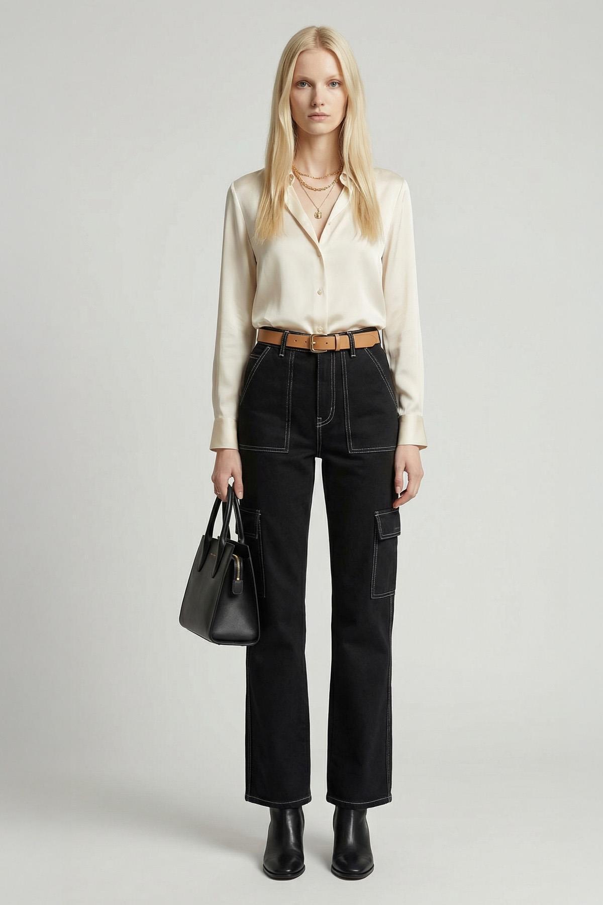 Siyah Kargo Cep Pantolon 580-1