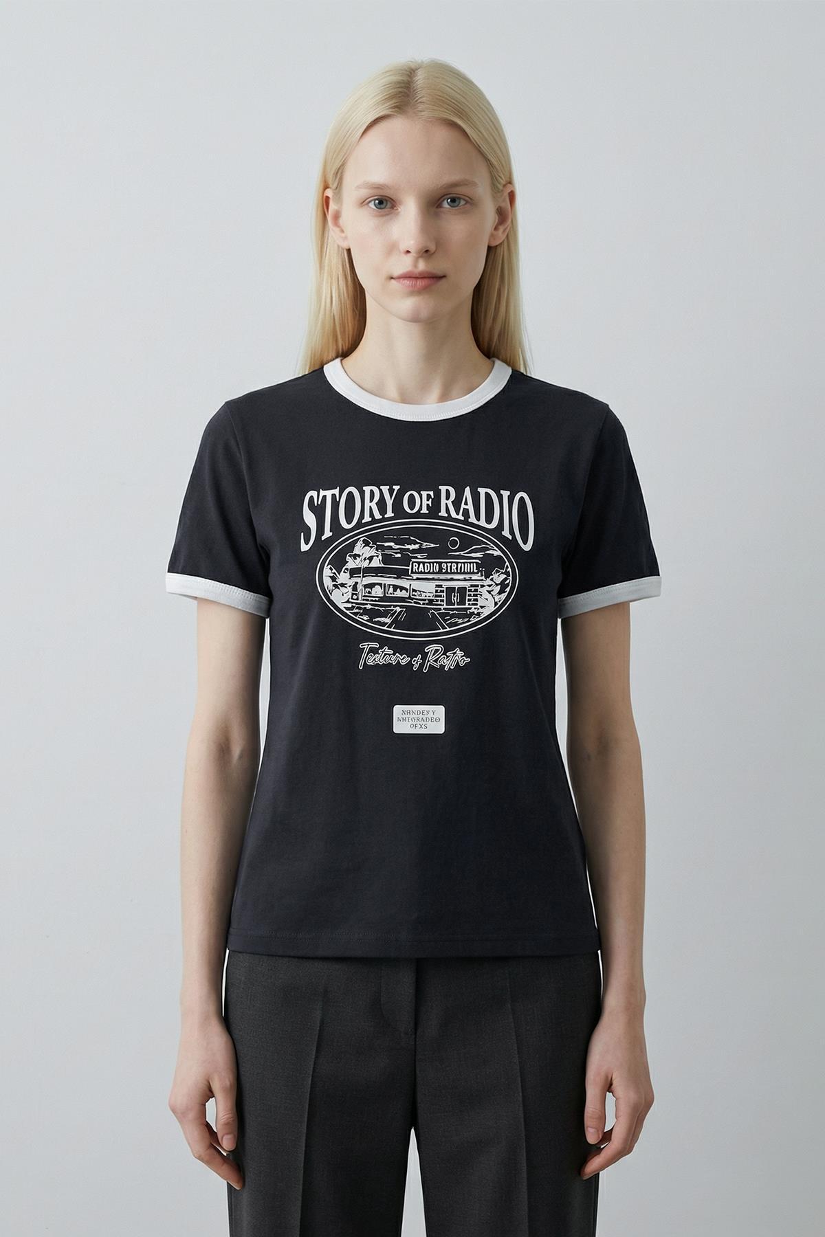 Siyah Ribana Yaka ve Kol Detaylı Yazı Baskılı Tişört 5875