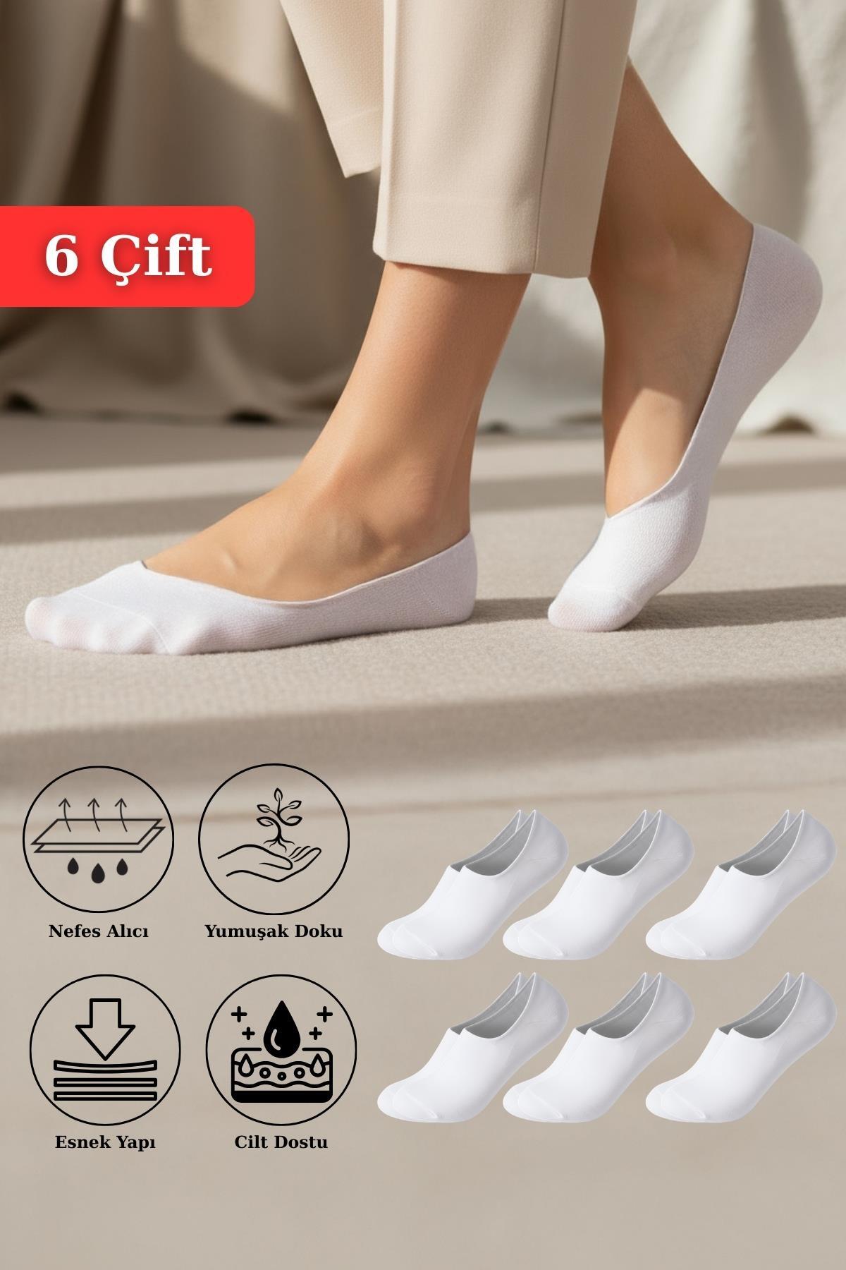 6 Çift Kadın Beyaz Esnek Pamuklu Örme Babet Çorap 1020