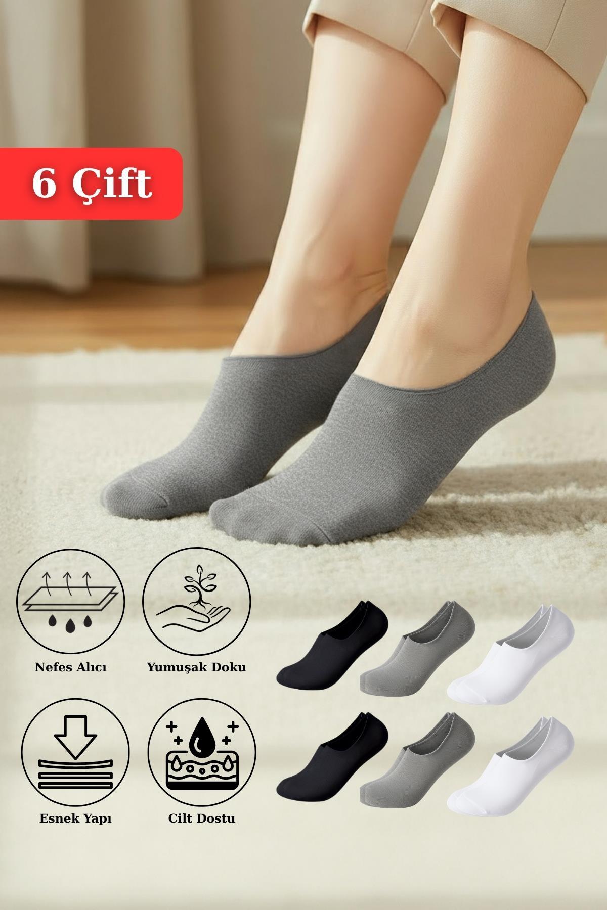 6 Çift Kadın Renkli Esnek Pamuklu Örme Babet Çorap 1020