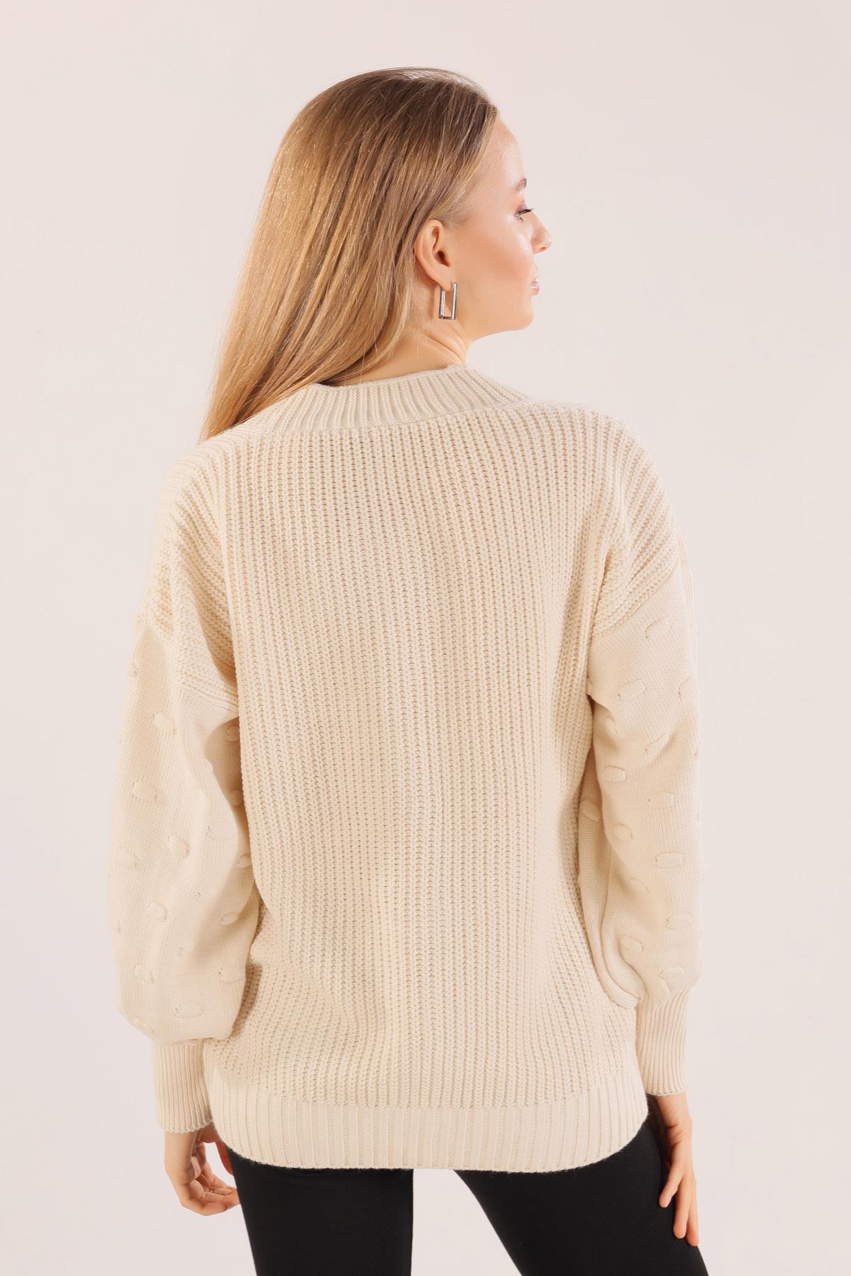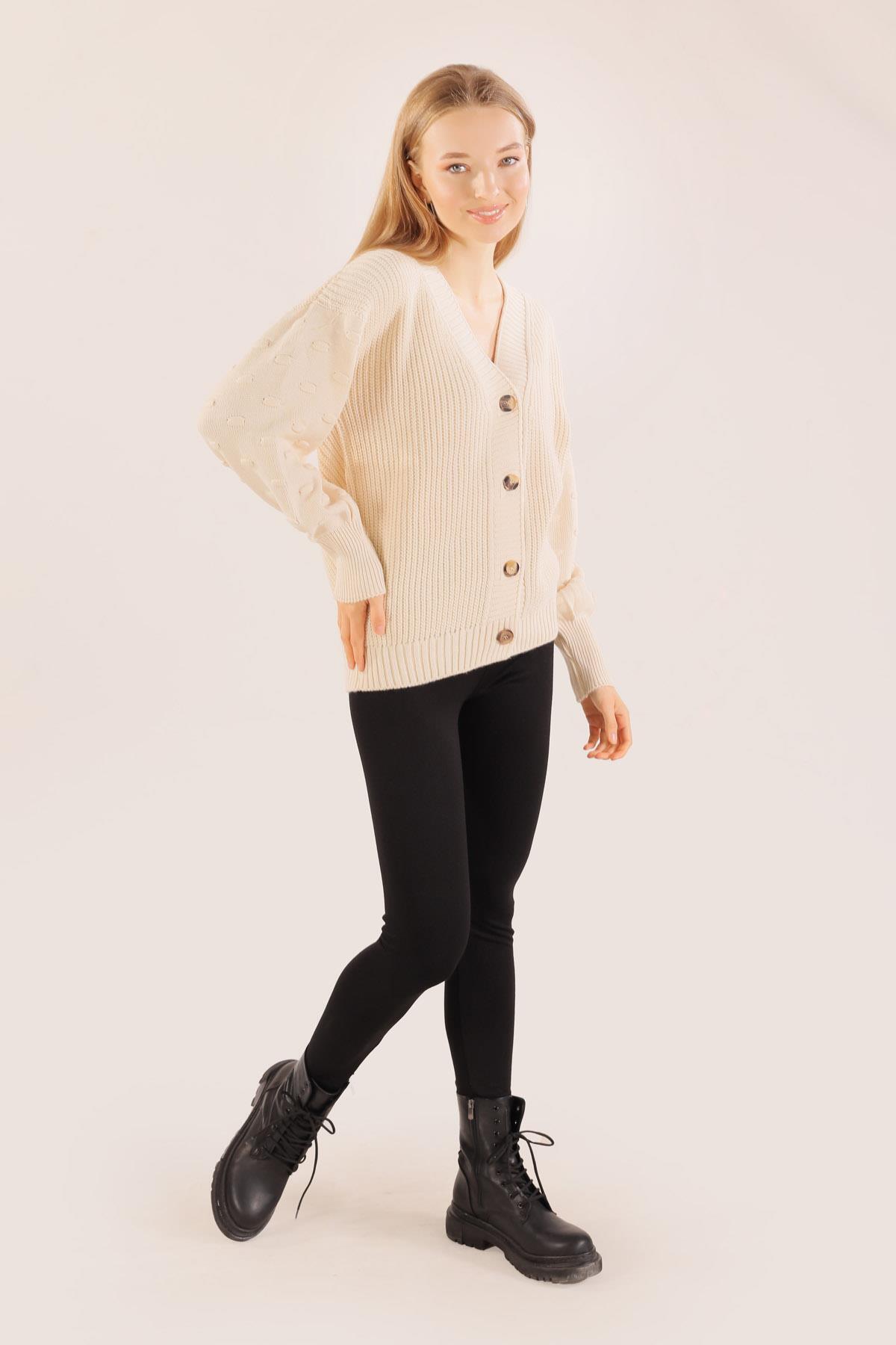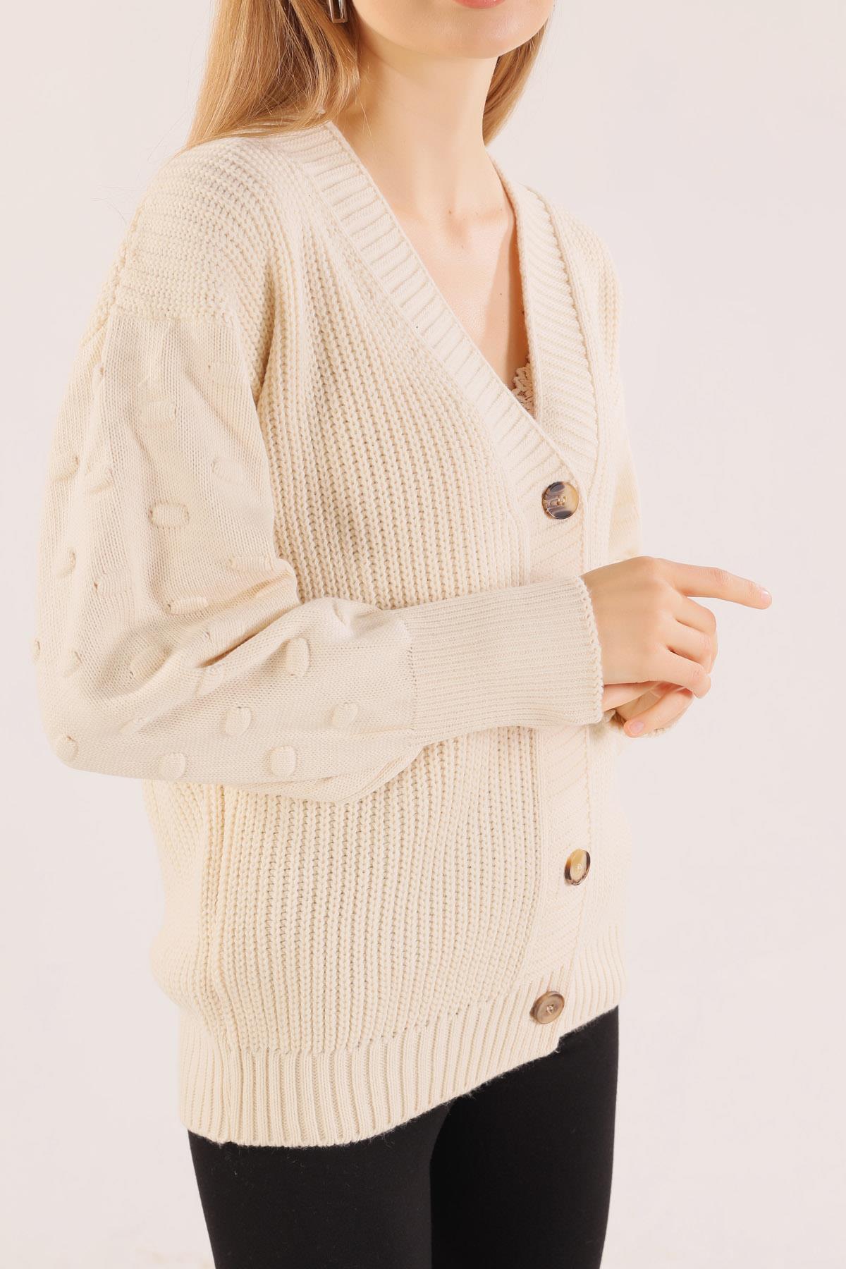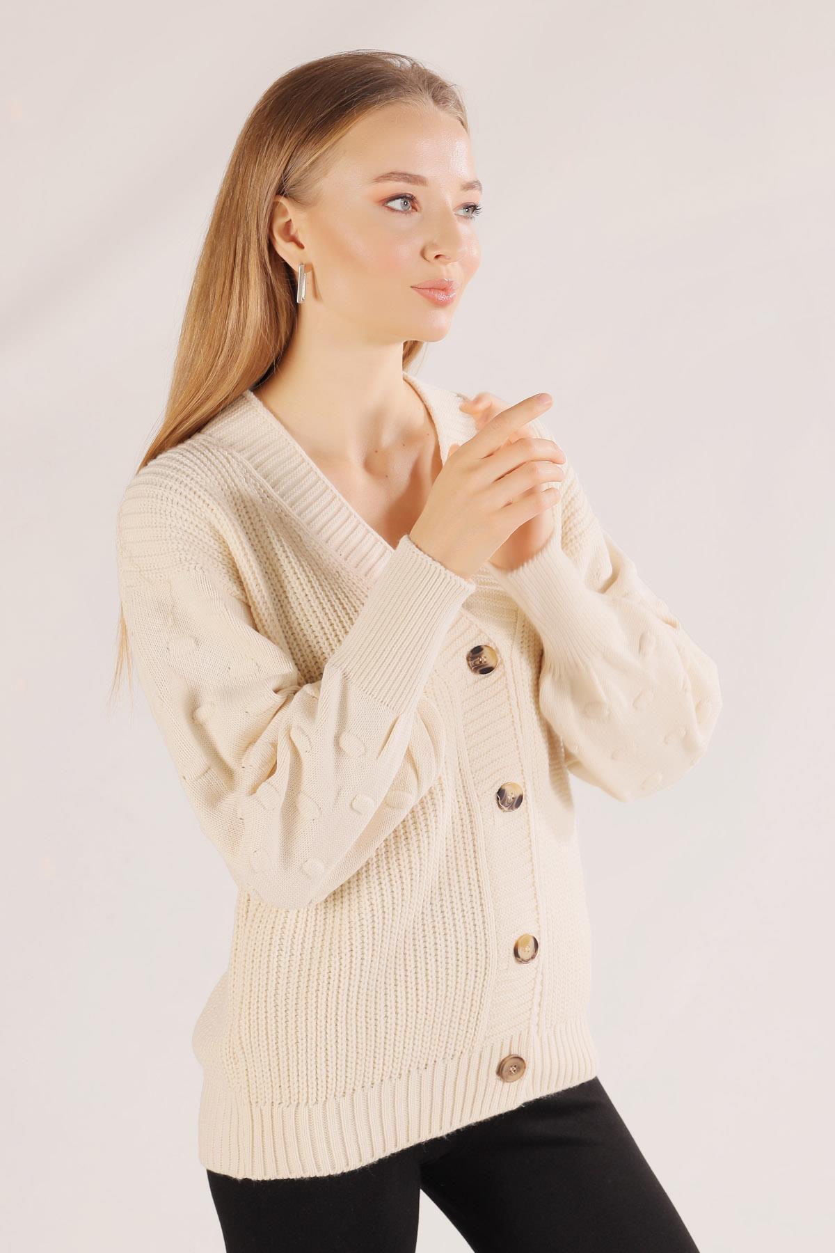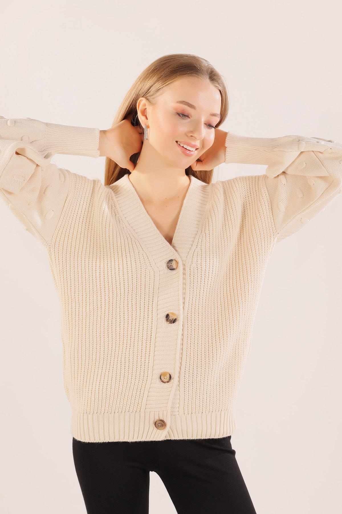 Ekru Balon Kol Detay Hırka 6007