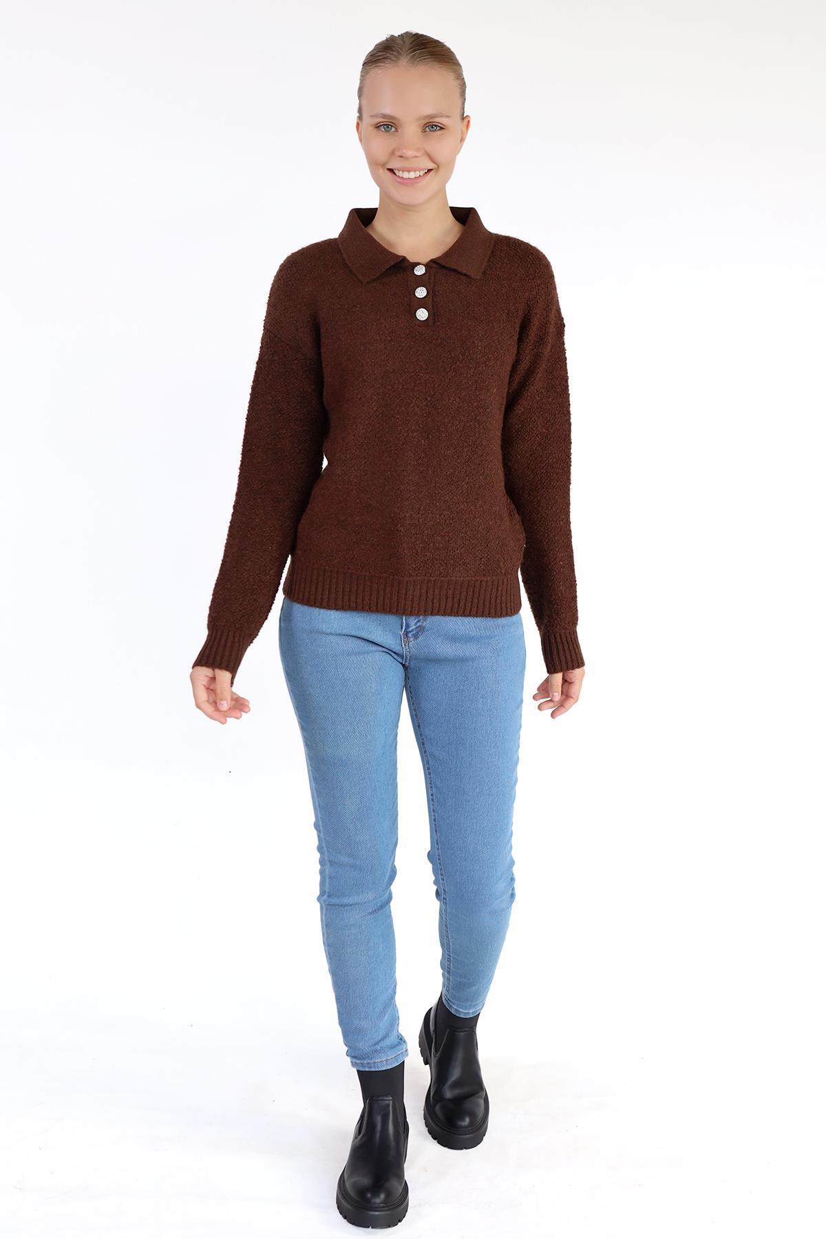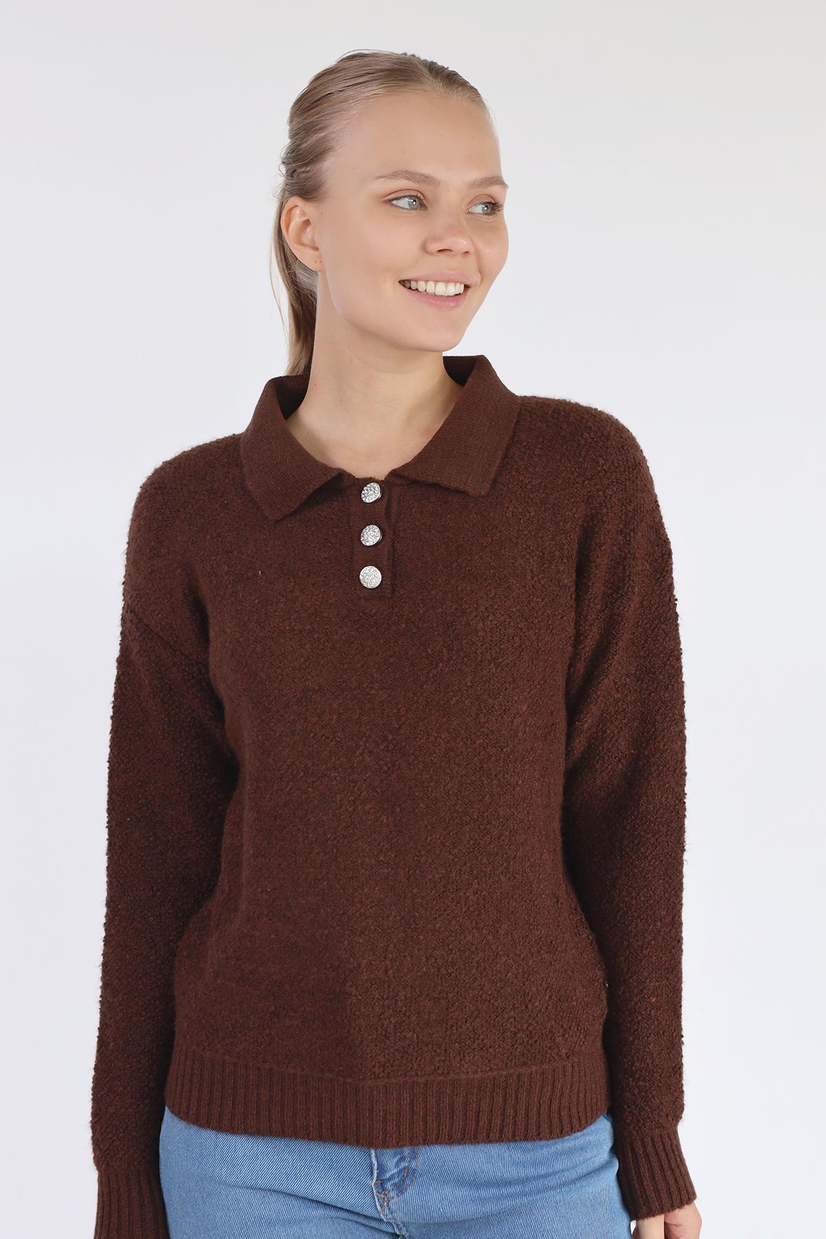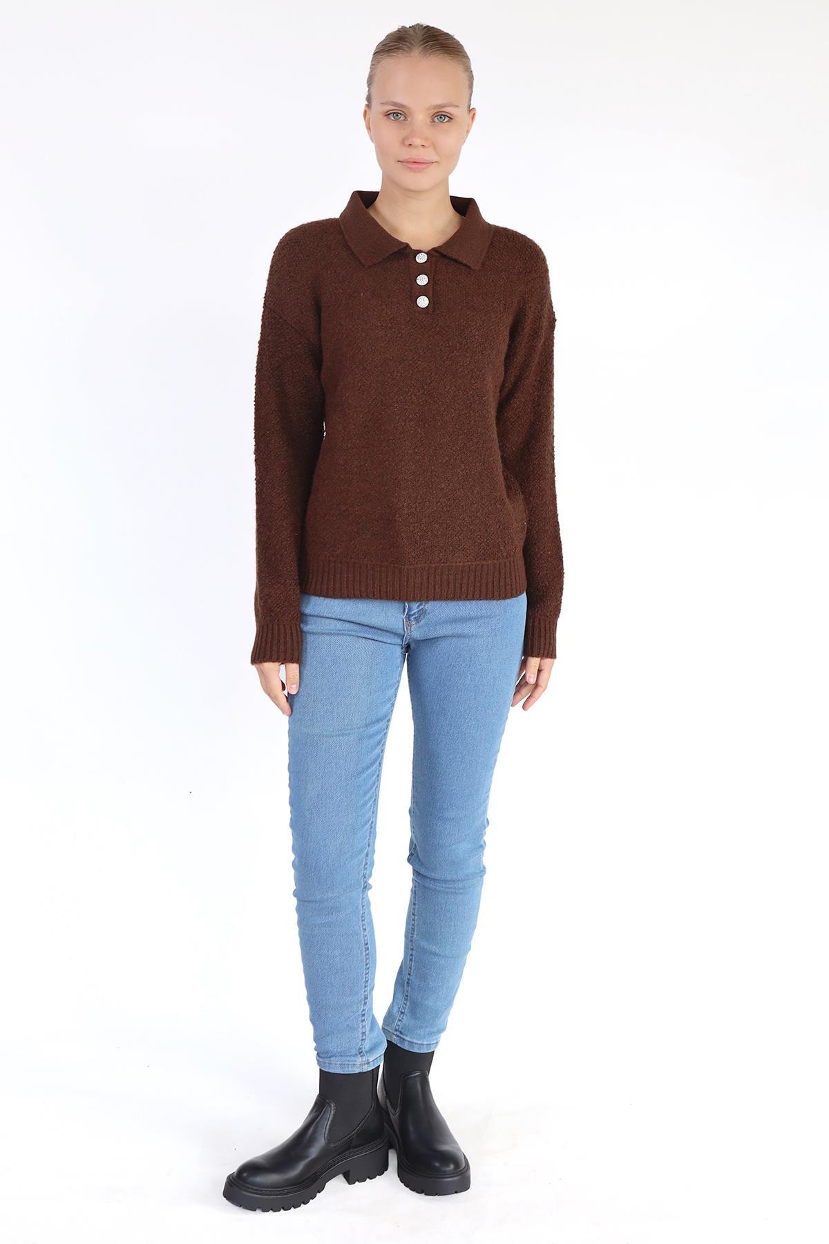 Kahve Gömlek Yaka Kazak 3082A - RAYS Kahve Gömlek Yaka Kazak 3082A - RAYS (1)